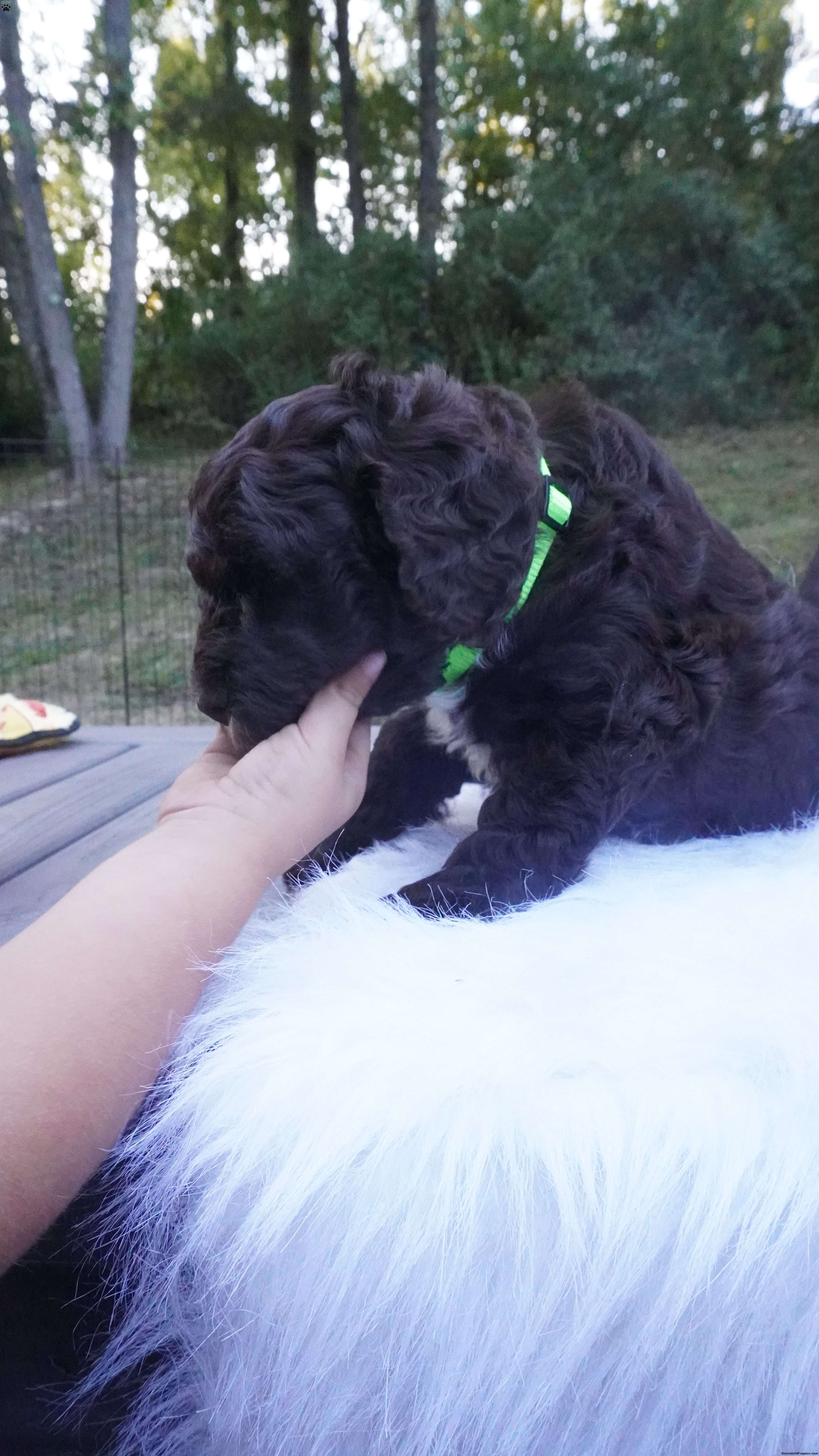 hi i am a handsome little choc Aussie doodle , i am a bit more bashful then some of his siblings, i love all the snuggles and attention i can get. i am interacted with daily by kids and adults.