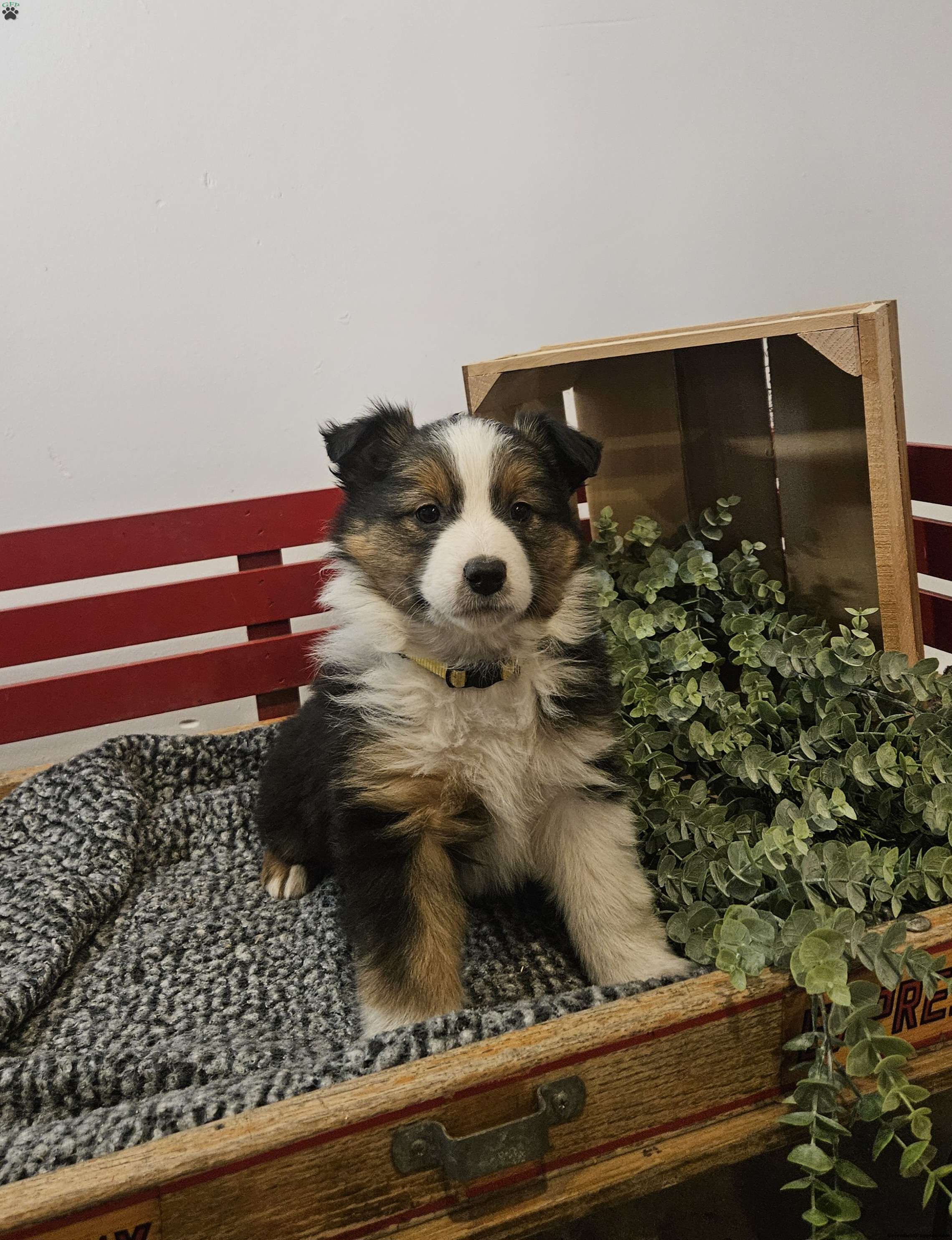 This Australian shepherd/border collie mix puppy is very friendly, playful and sweet! She likes to greet people and likes snuggles. Vet checked and up to date on shots and dewormer and also comes with a health guarantee provided by the breeder.