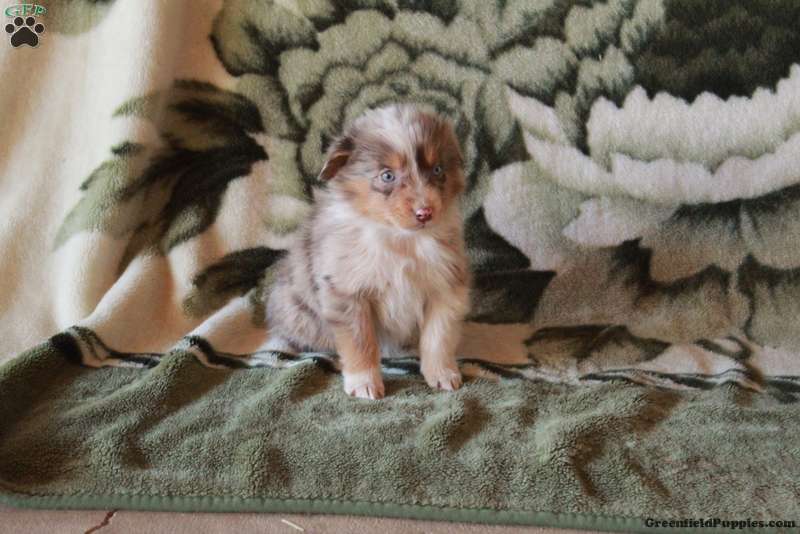 Kelly is a charming Australian Shepherd puppy who is gentle and sweet! This cutie is socialized and ready to meet you! Kelly comes home with a health guarantee provided by the breeder, plus has been seen by a vet and is up to date on shots and de-wormer. This sweetheart will be a lovable sidekick!