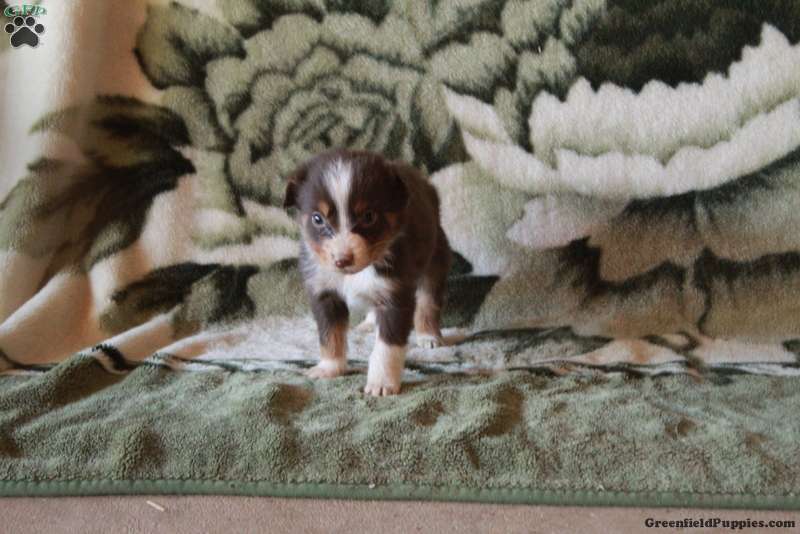 Kipper is a charming Australian Shepherd puppy who is gentle and sweet! This cutie is socialized and ready to meet you! Kipper comes home with a health guarantee provided by the breeder, plus has been seen by a vet and is up to date on shots and de-wormer. This sweetheart will be a lovable sidekick!