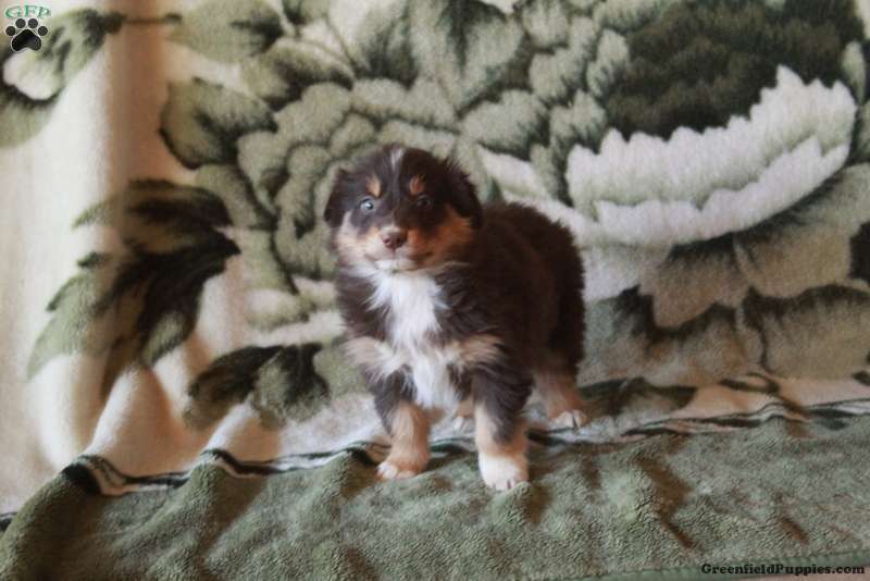 Koko is a charming Australian Shepherd puppy who is gentle and sweet! This cutie is socialized and ready to meet you! Koko comes home with a health guarantee provided by the breeder, plus has been seen by a vet and is up to date on shots and de-wormer. This sweetheart will be a lovable sidekick!