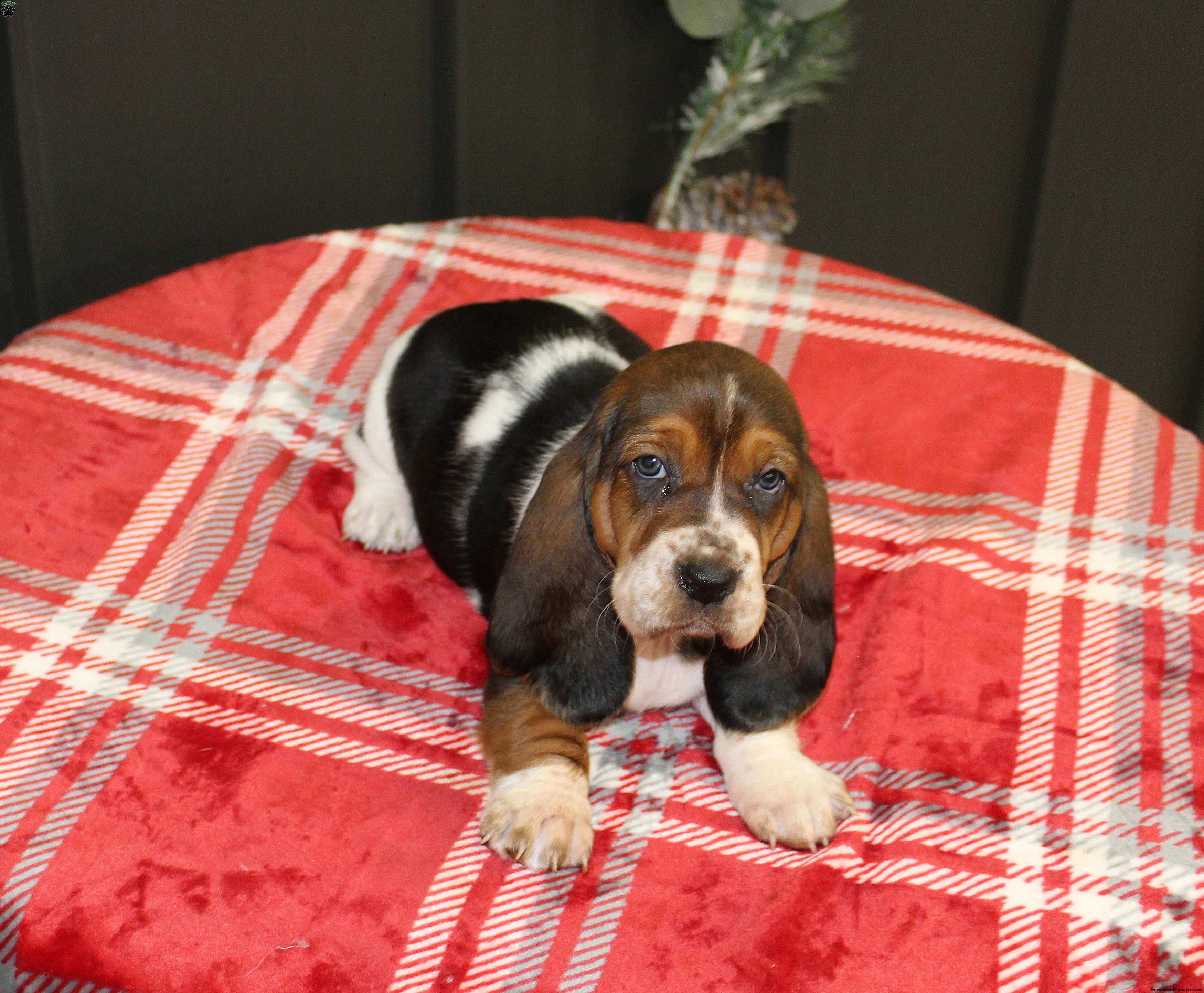Hi my name is Sandy. I am beautiful basset hound puppy with long ears, big paws and lots of wrinkles. I love to explore the back yard and take long naps in the sun. I also enjoy socializing with people and other puppies. I come with a 30 day health guarantee. I am up to date on vaccines and deworming.I have been family raised and well socialized. I come with a puppy starter pack (pictured above) which includes a heartbeat puppy that smells like the litter mates for less anxiety while transitioning to my new home, a gallon bag of black gold puppy food, treats, collar, leash, blanket, bottle of our favorite puppy shampoo If you would like to make me your new furry friend or would like more pictures, videos and information about me, call Anna today!