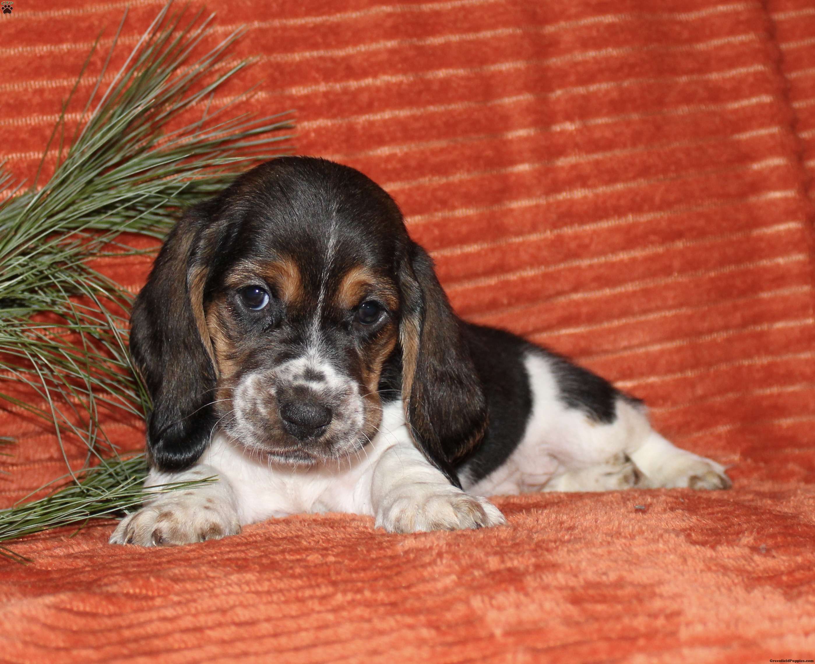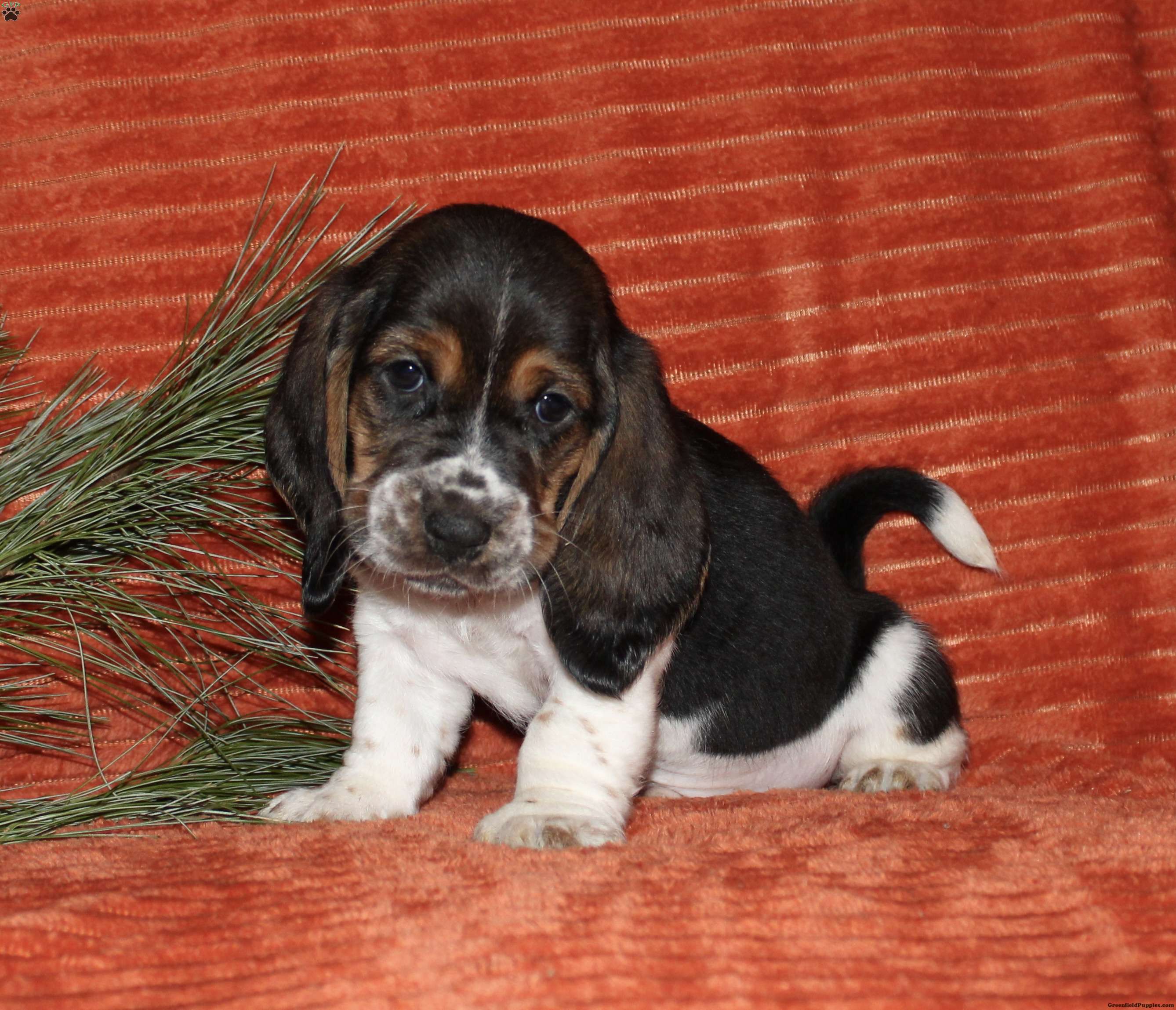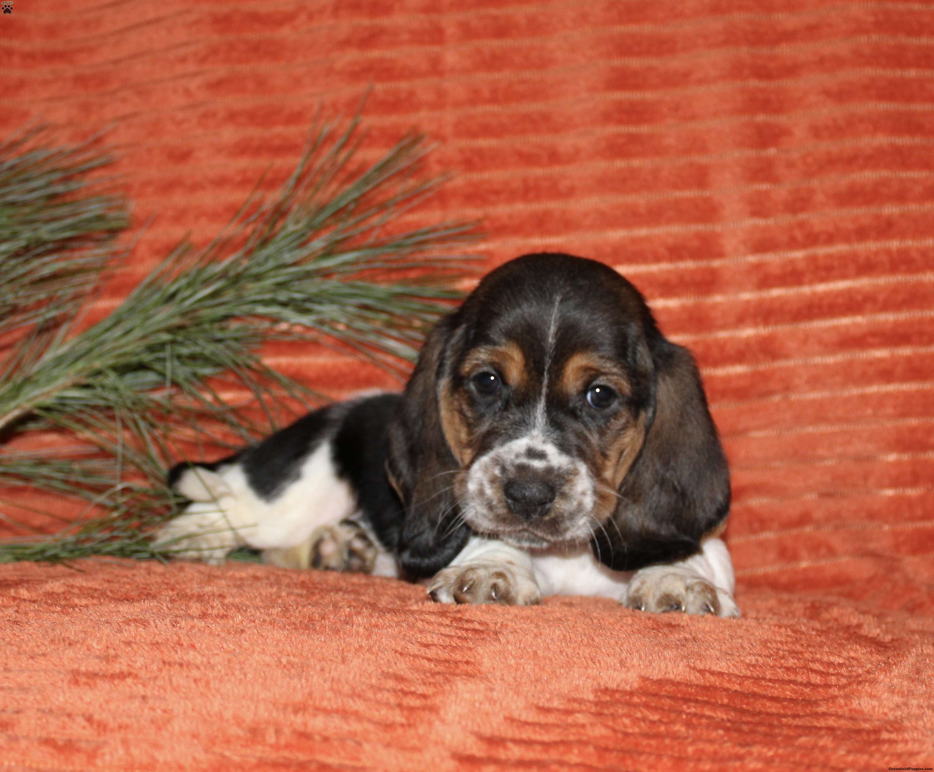 Say hello to this adorable Basset Hound puppy! The mother, Chloe, and the father are also both Basset Hounds! Each puppy comes up to date on shots and dewormer, and is also vet checked. They also each come with a 30-day health guarantee and are eligible for AKC registration. To learn more about our puppies, contact us today!