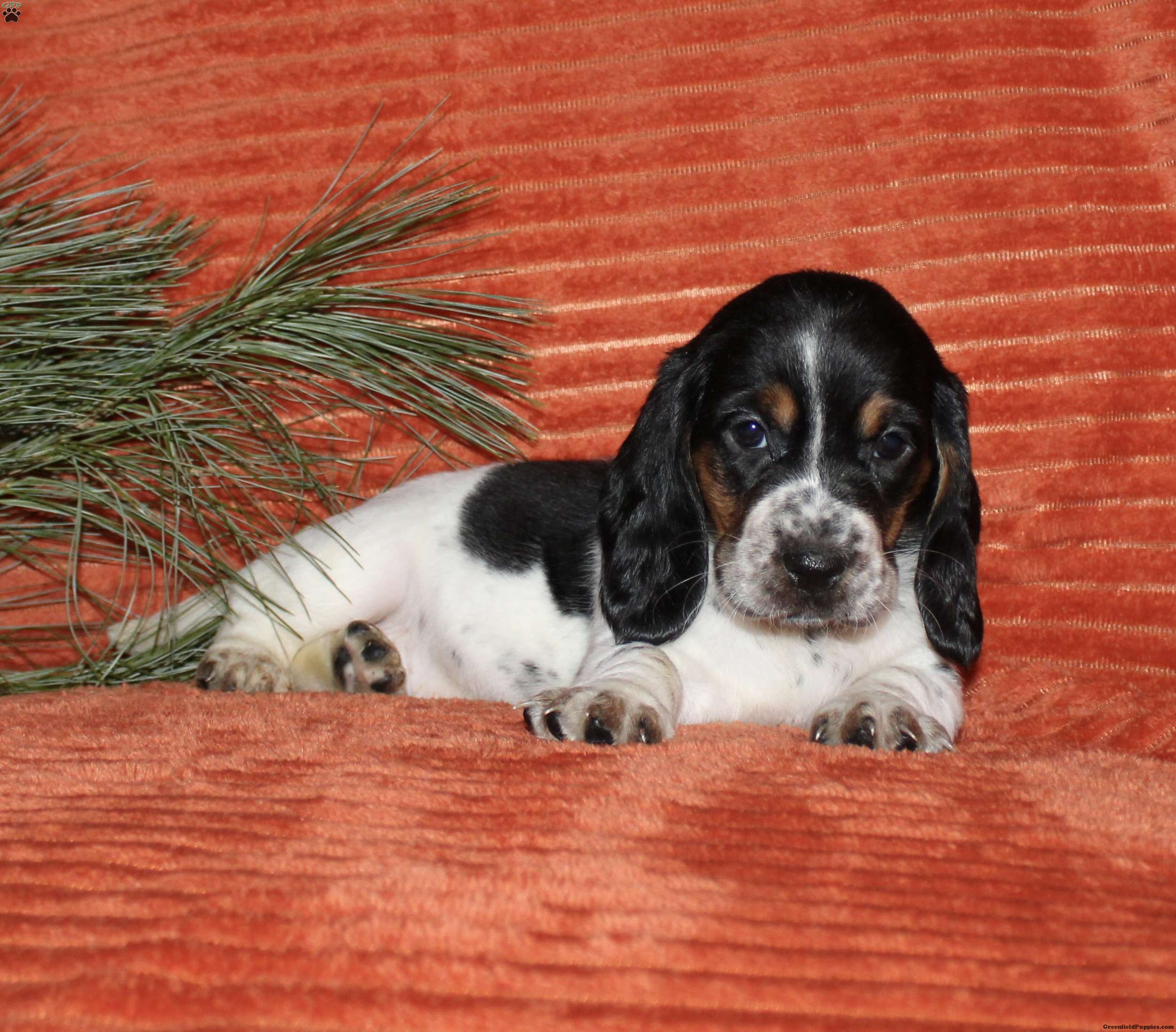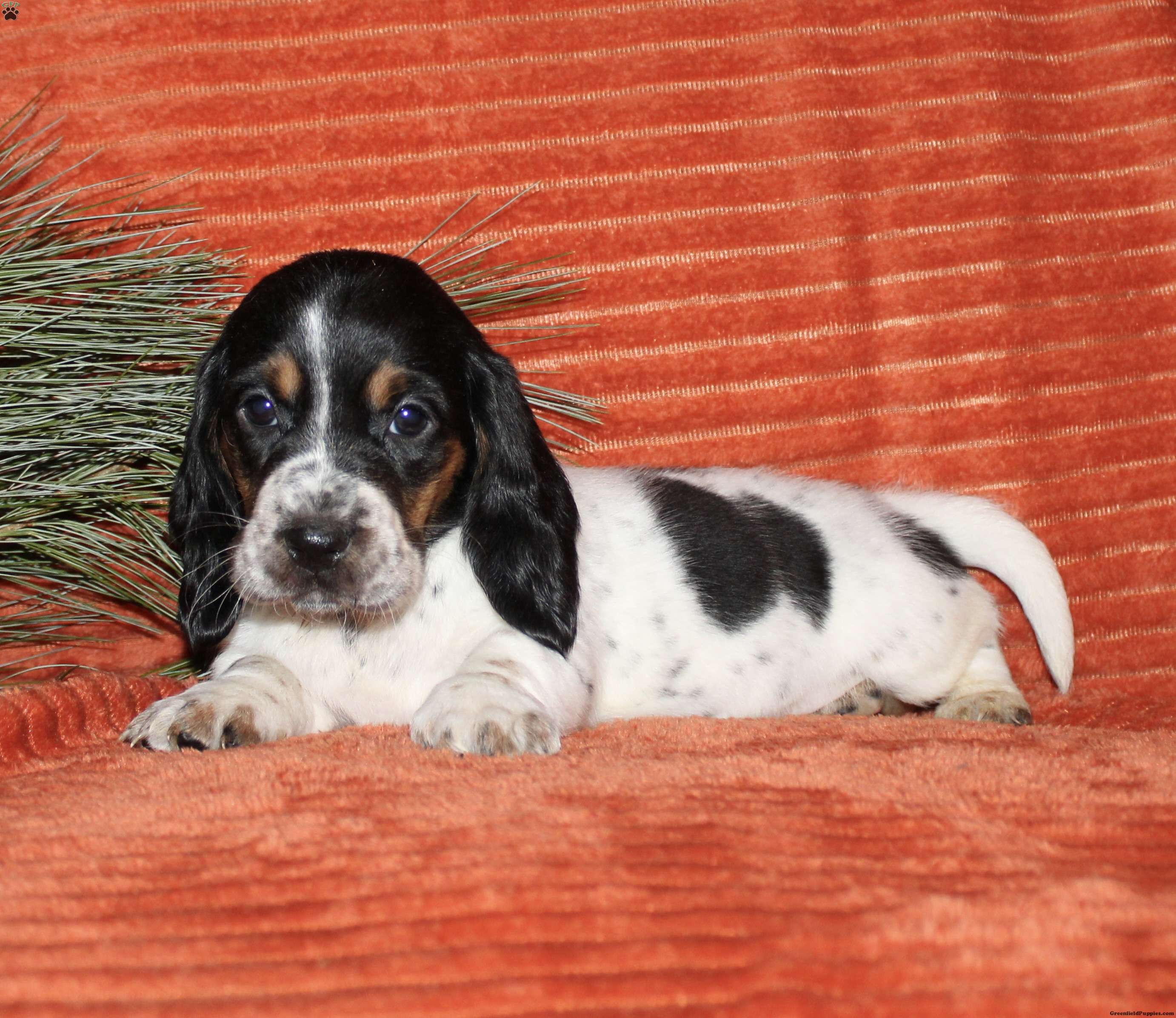 Say hello to this adorable Basset Hound puppy! The mother, Chloe, and the father are also both Basset Hounds! Each puppy comes up to date on shots and dewormer, and is also vet checked. They also each come with a 30-day health guarantee and are eligible for AKC registration. To learn more about our puppies, contact us today!