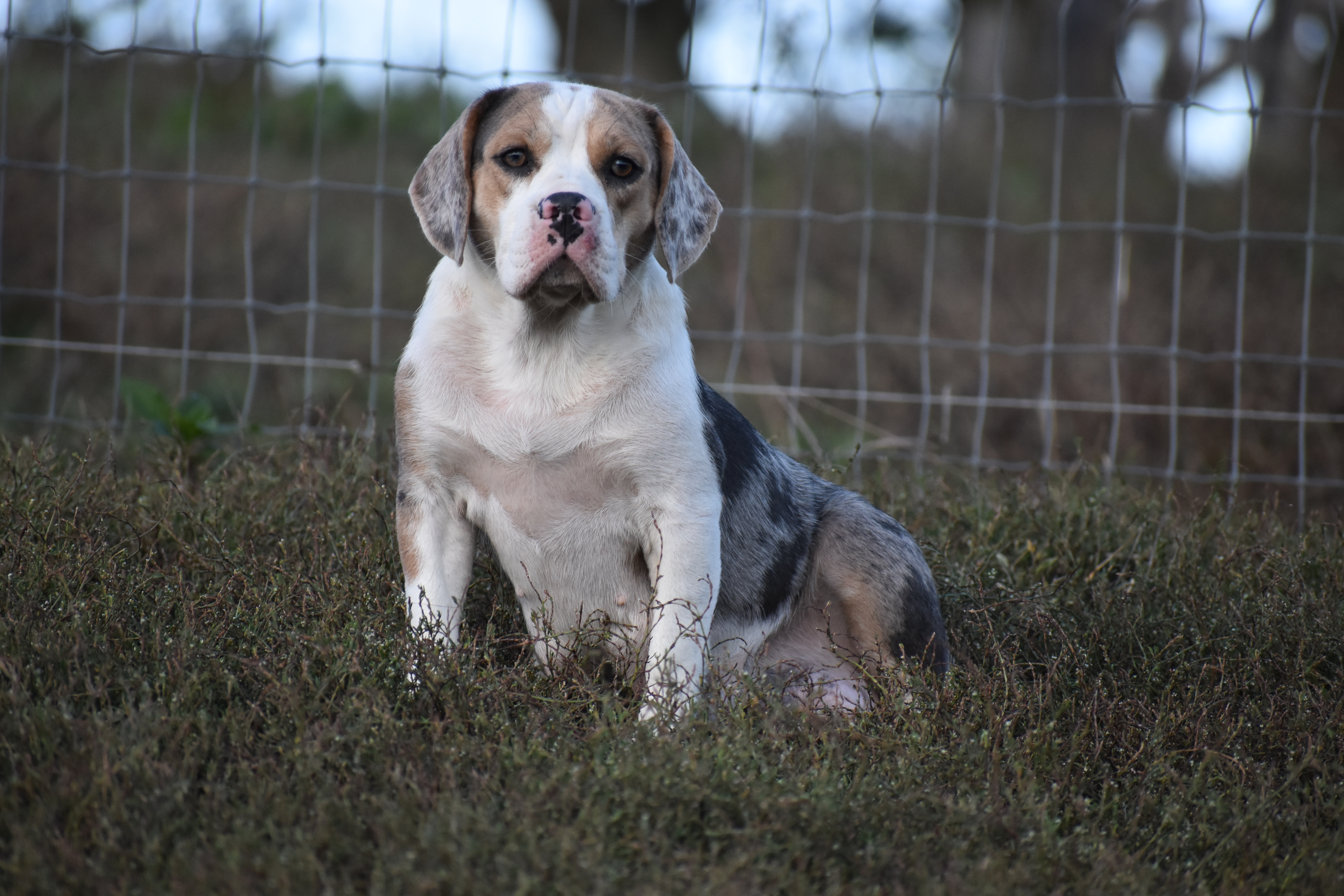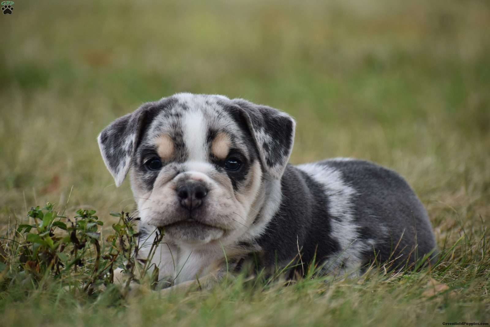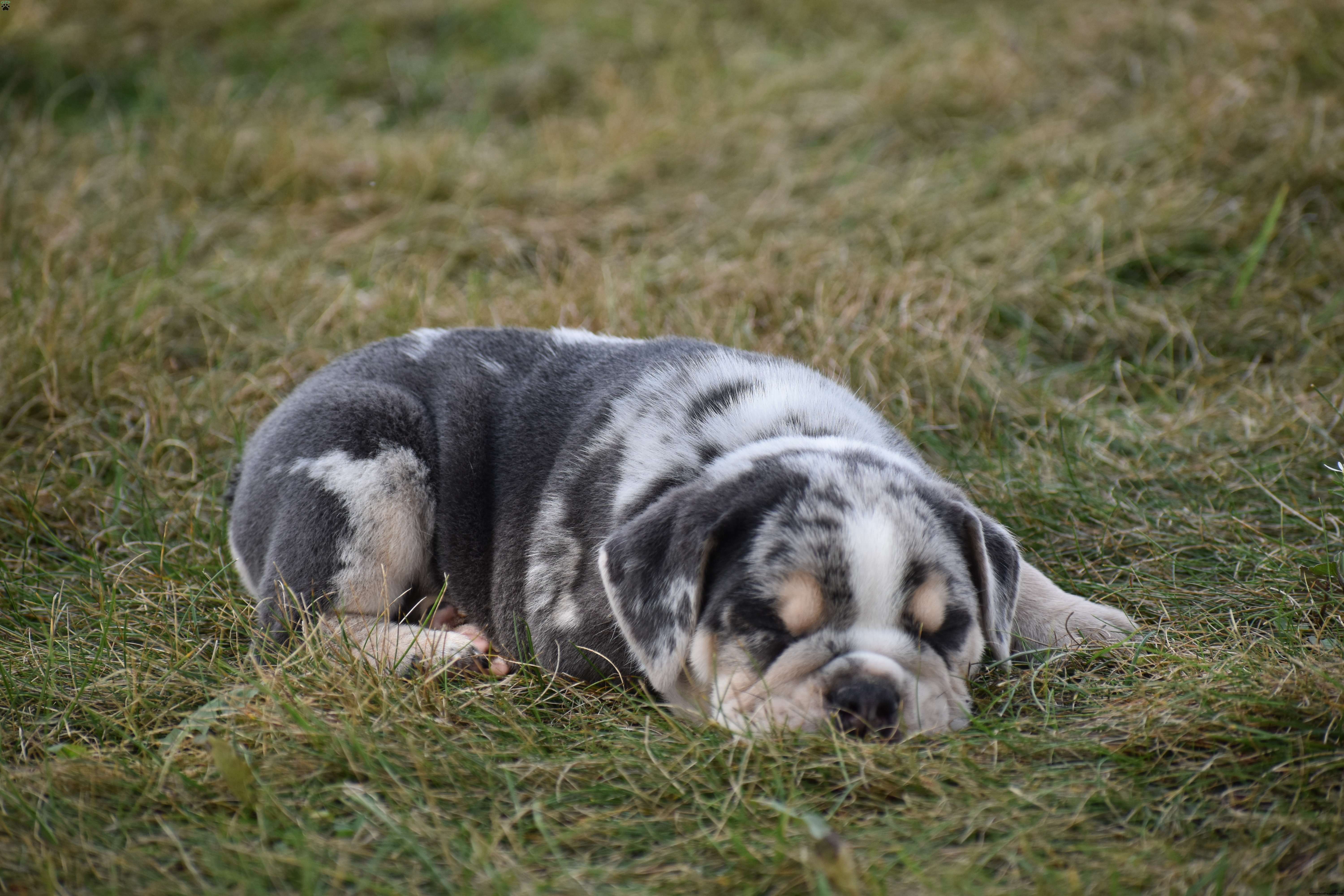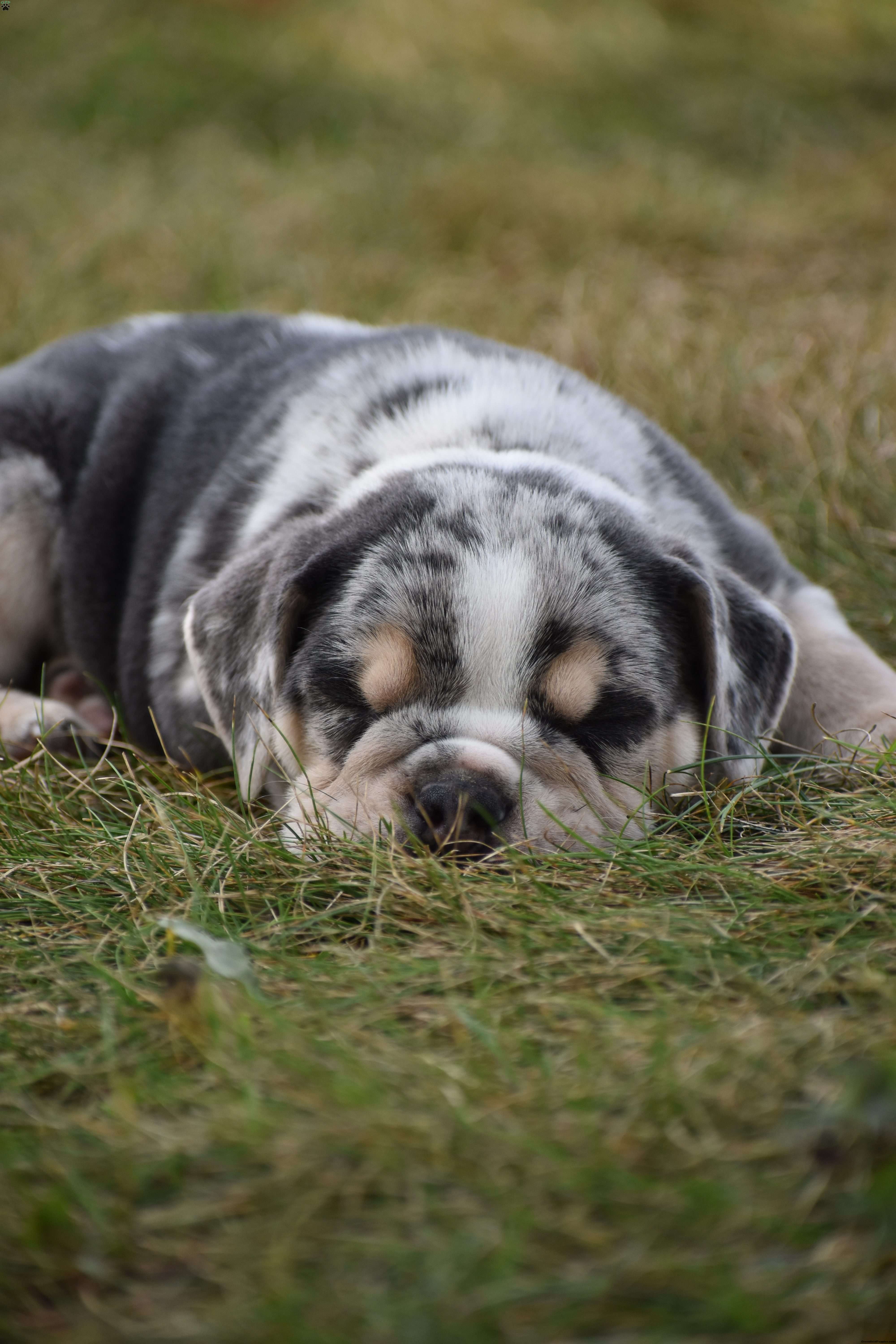 The mom, Latte is a beautiful blue merle colored first generation Beabull. half Beagle, half English Bulldog. She is a friendly dog and has been a great mom!