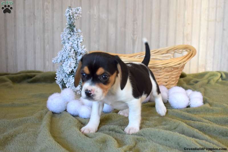 Brookie is a cuddly and cute Beagle puppy who loves to have fun! This adorable little one can be registered with the AKC and comes home with a 30 day health guarantee and an extended genetic health guarantee, both provided by the breeder. Brookie has been seen by a vet and is up to date on shots and de-wormer. This sweetie is socialized, family raised with children, and ready to meet you!