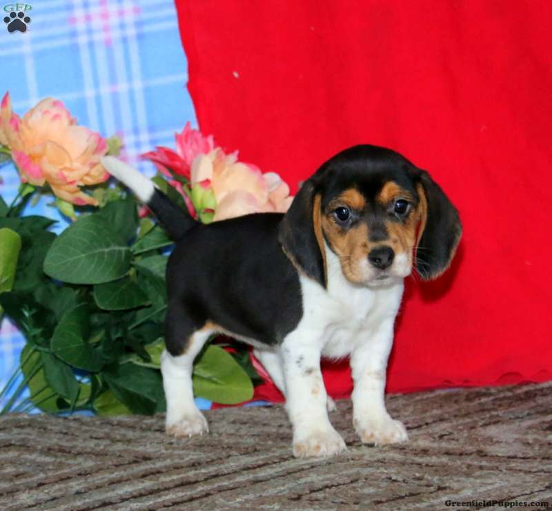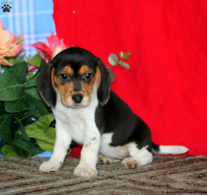 This happy Beagle puppy has such a sweet disposition! Kayla likes to explore and is socialized and ready to meet you! Vet checked and up to date on shots and de-wormer, this adorable pup comes home with a 30 day health guarantee and an extended genetic health guarantee, both provided by the breeder. Kayla can be registered with the AKC will be a playful companion!
