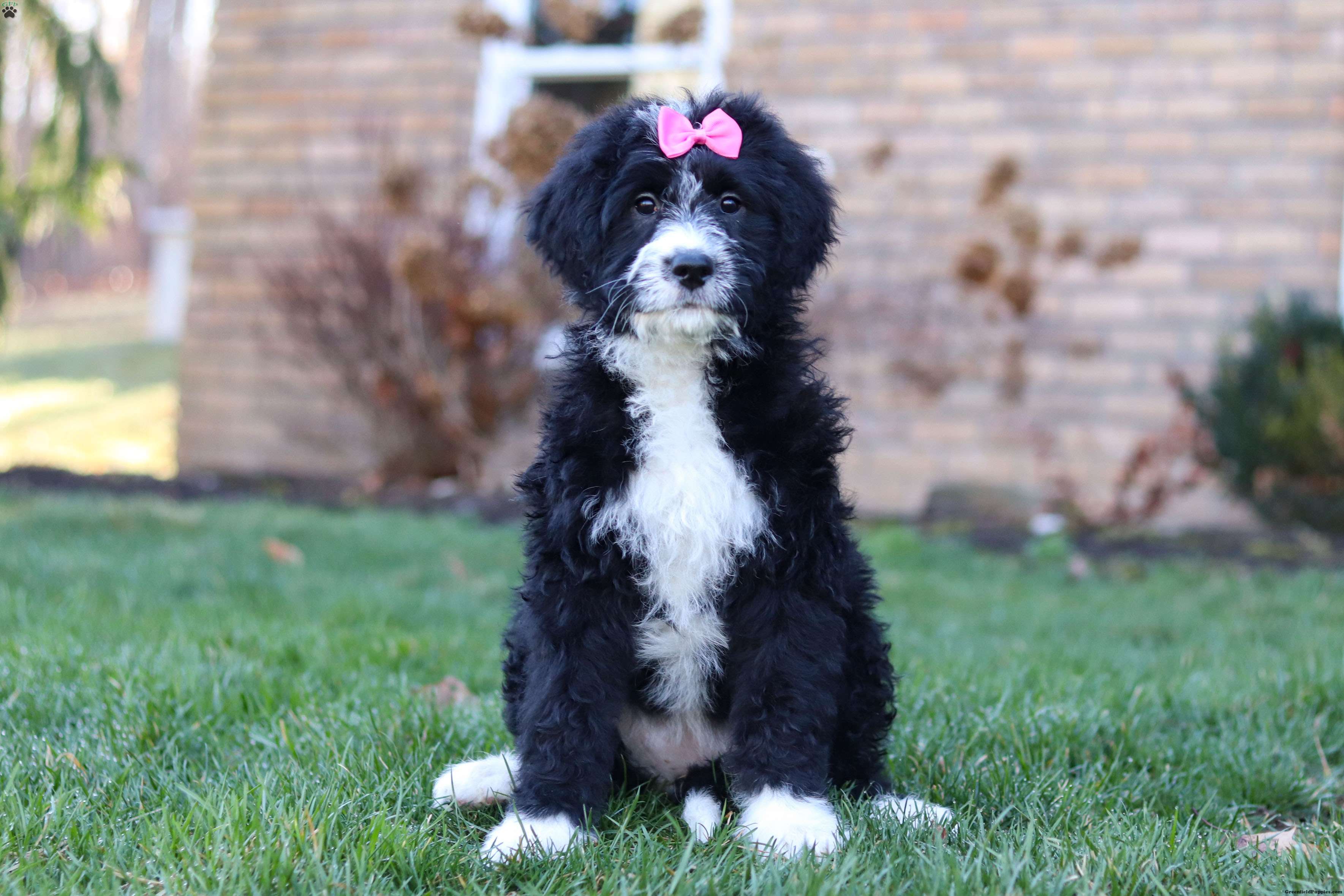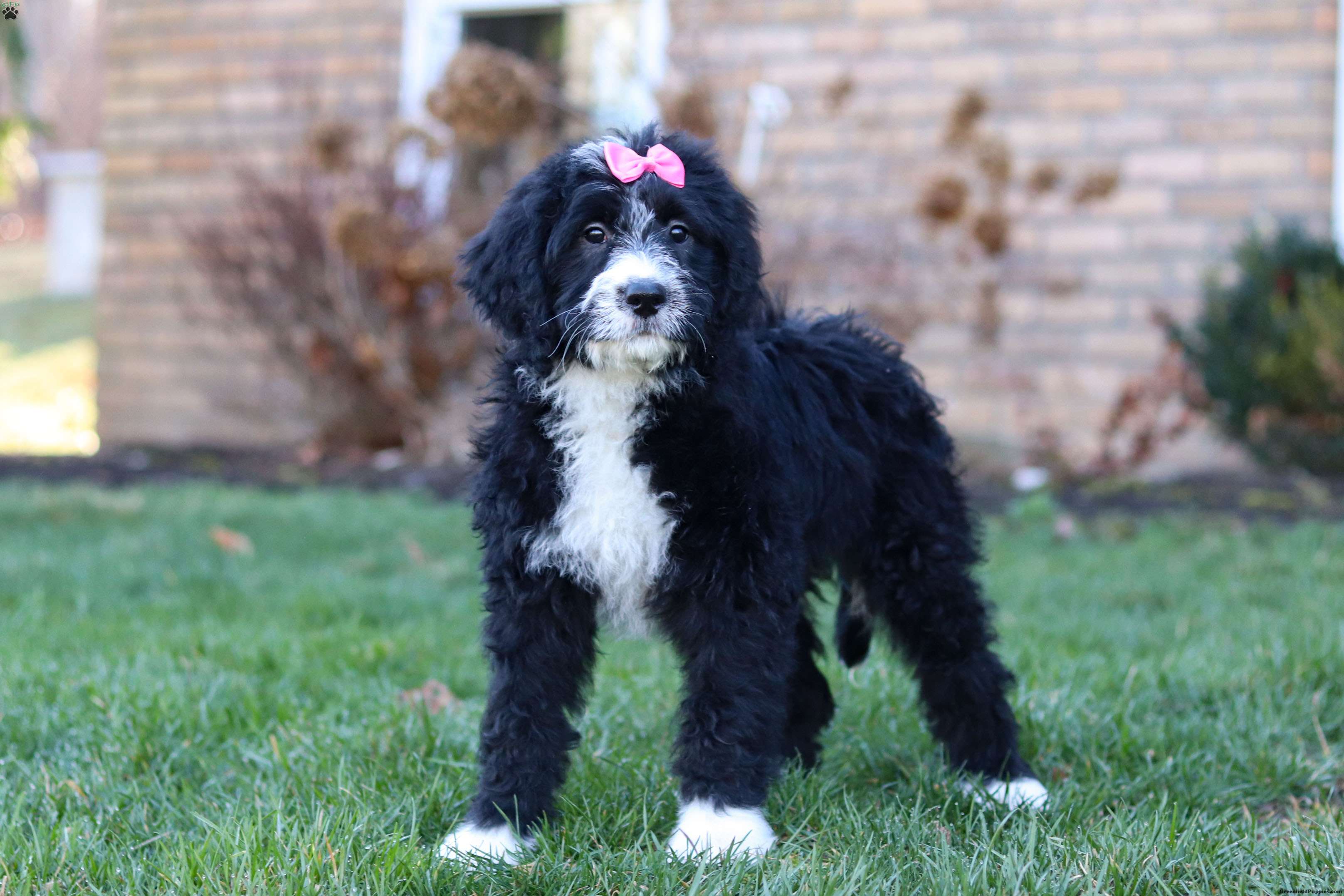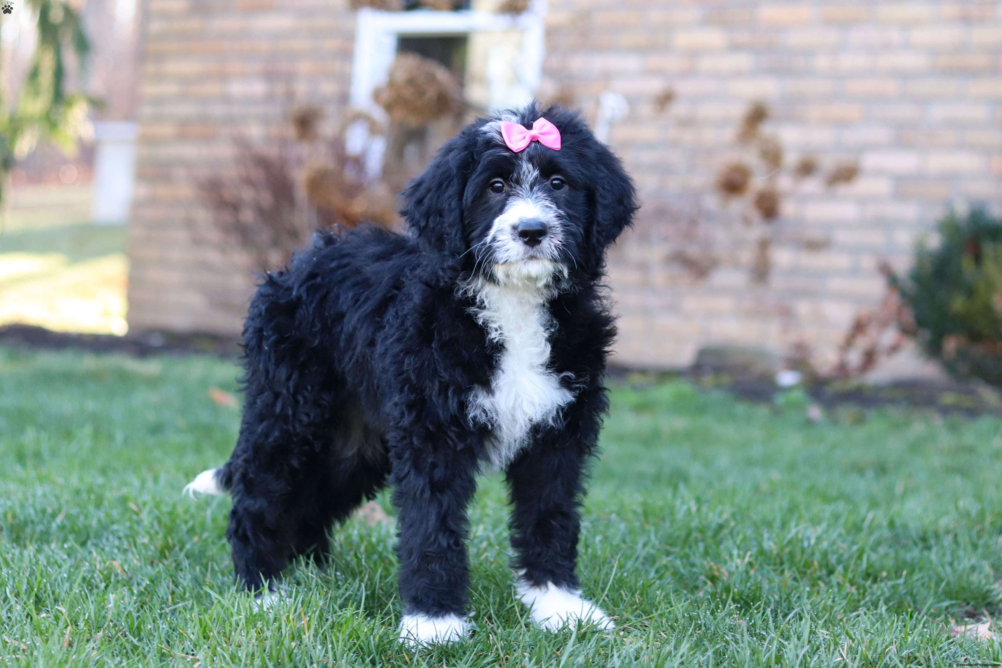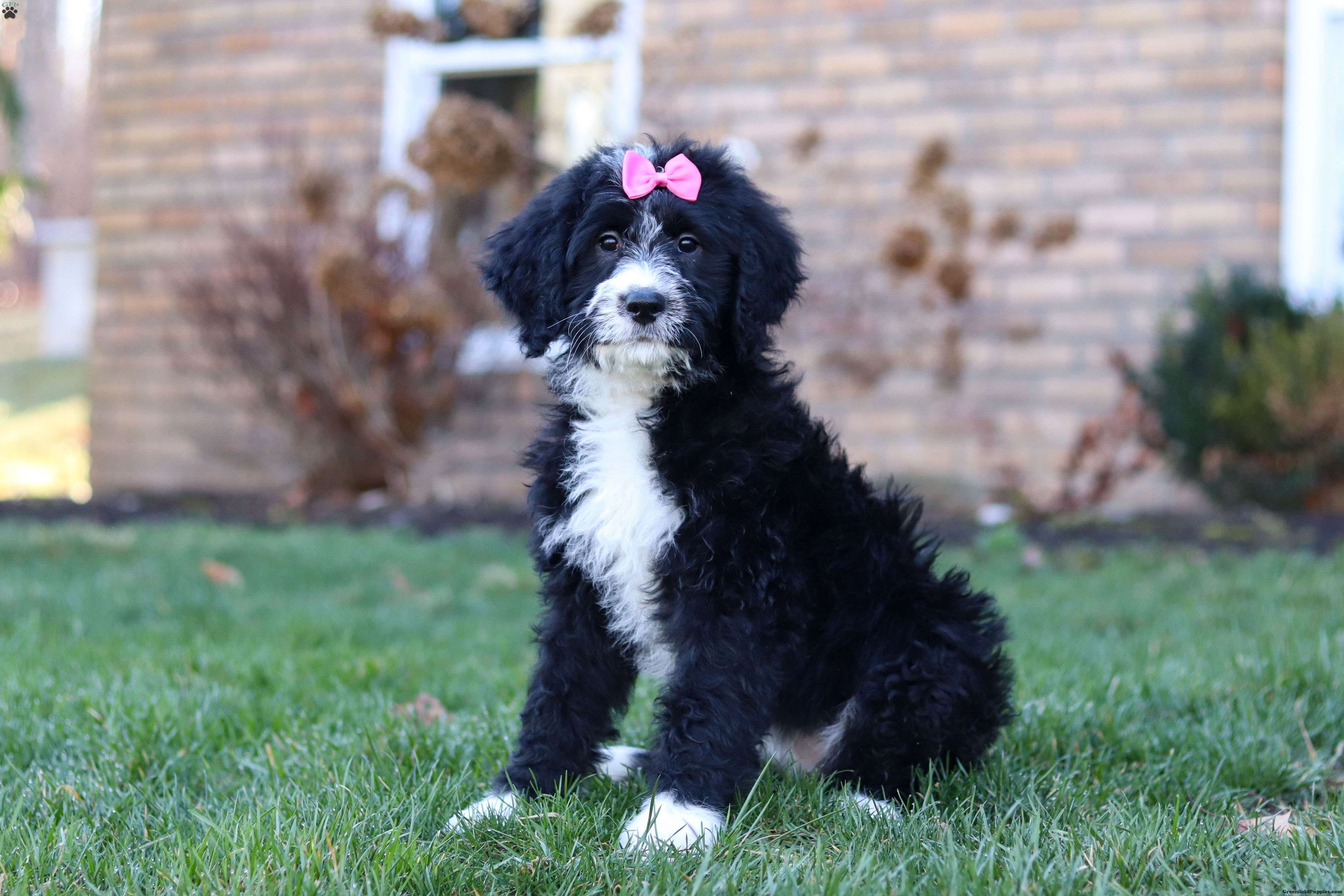 The father is a handsome and friendly Poodle named Bingo (37 lbs). He loves romping in the yard and he’s always down for a game of fetch or a brisk walk. Her mother, Skye is a darling Bernese Mountain Dog girl (76 lbs), known for her gentle nature and loyalty she is the best momma to her babies.