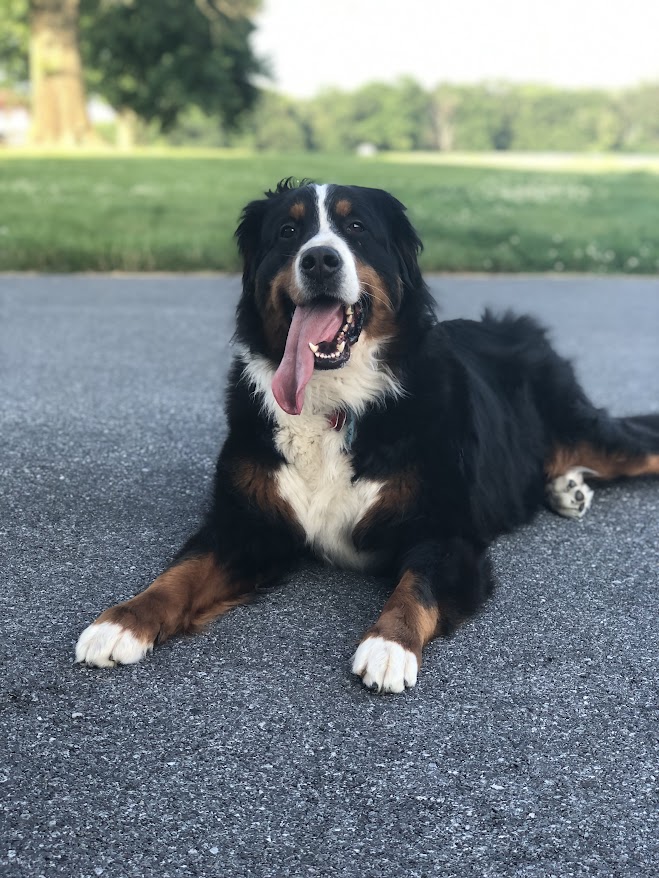 Her mom, Roxy, is an 80lb bernese mountain dog. Her dad, Brody, is a standard poodle, weighing approximately 80 lbs. With these two affectionate dog breeds as parents, bernedoodles are known for their affectionate, loving personalities. They are very intelligent and easy to train!