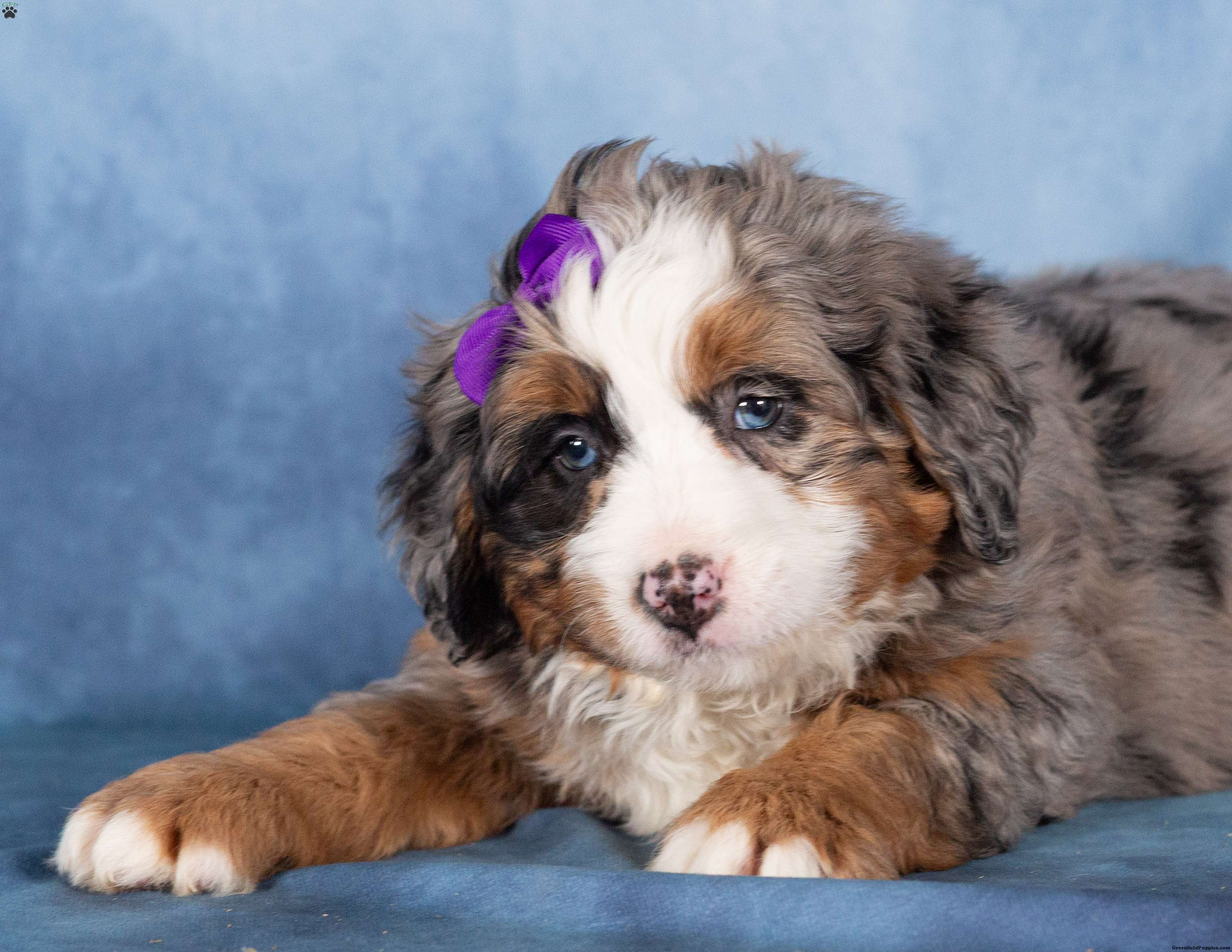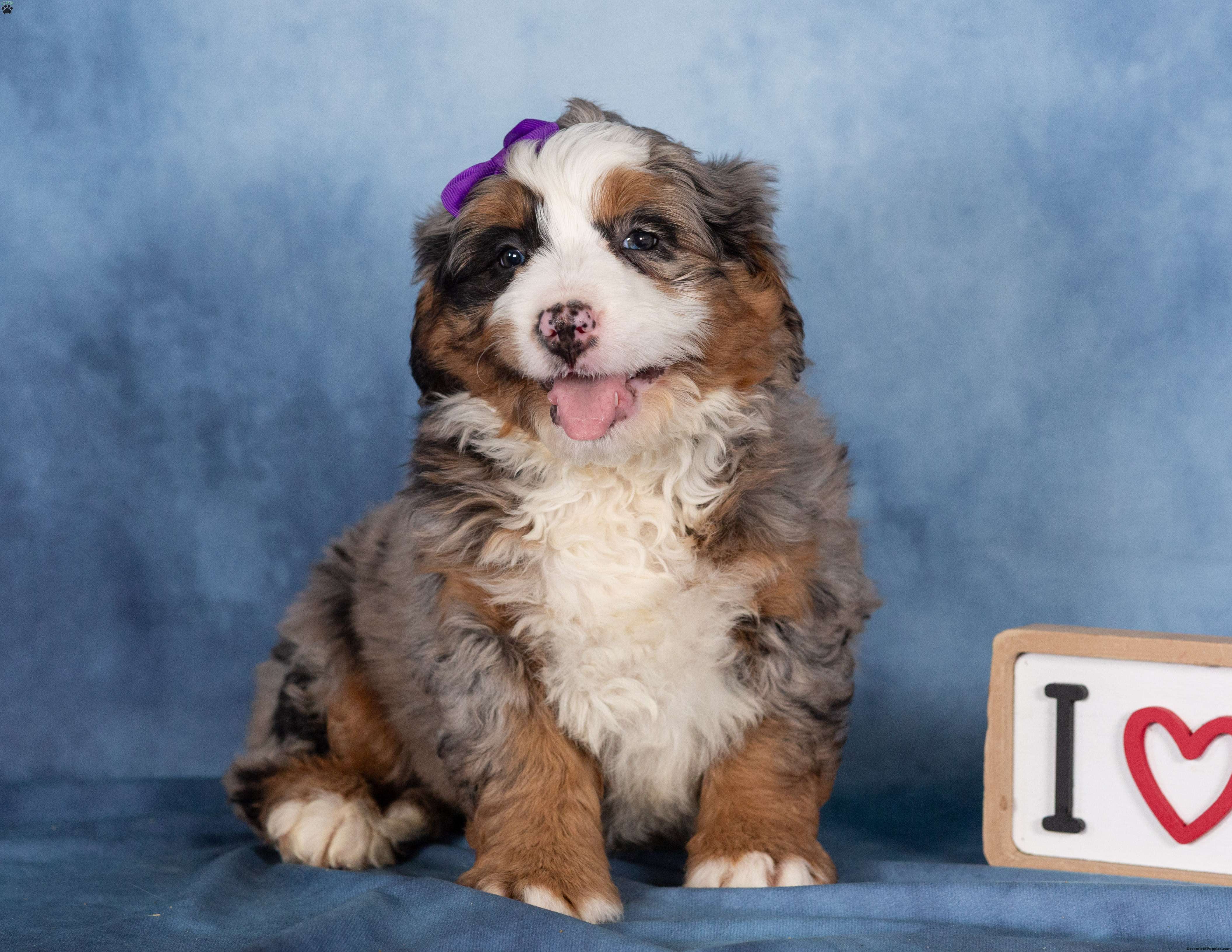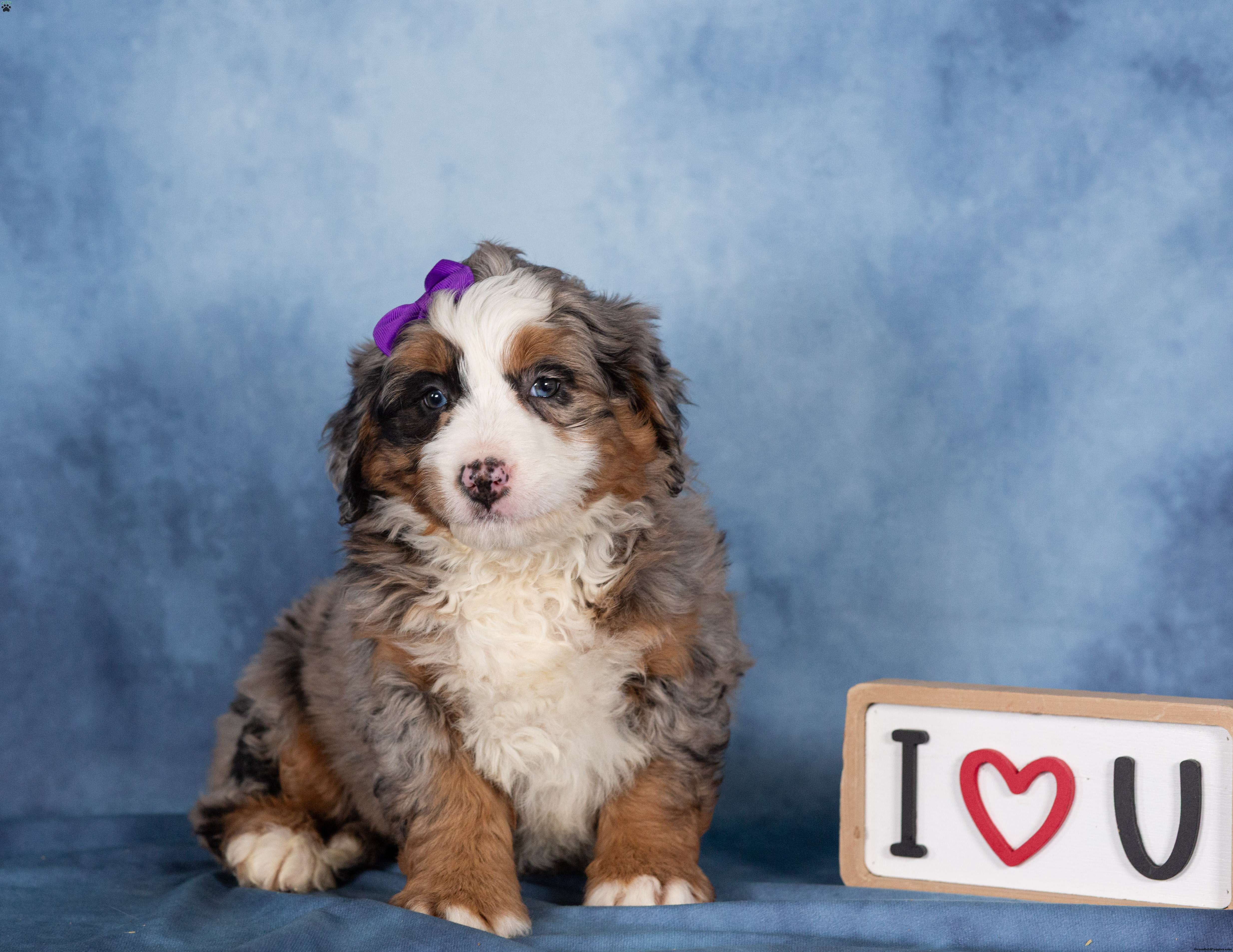 With her stunning merle coat and joyful spirit, Taffy is a Bernedoodle who will grow into a loyal companion and cherished family member. She’s ready to bring happiness, laughter, and unconditional love into her forever home.