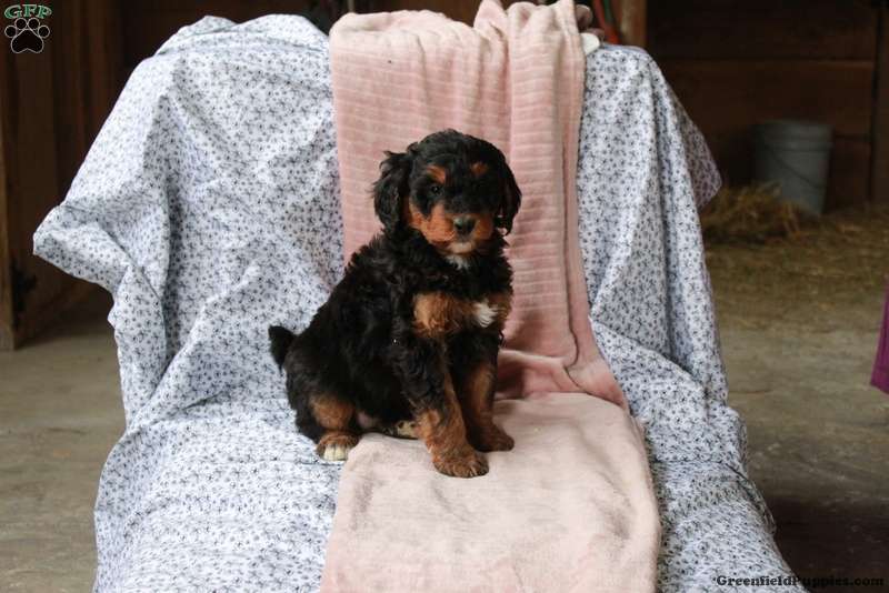Tara is a playful Bernedoodle puppy with a silly and lovable personality. This fun girl is socialized and spending time with children. She is getting ready to be adored by you! Tara comes home with a health guarantee provided by the breeders, plus has been seen by a vet and is up to date on shots and de-wormer.