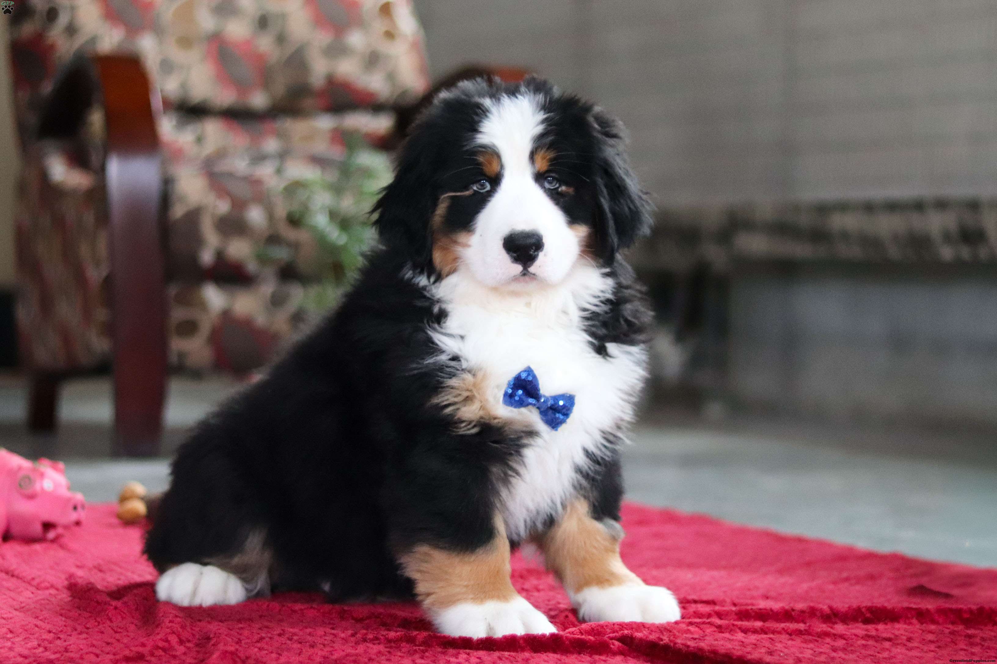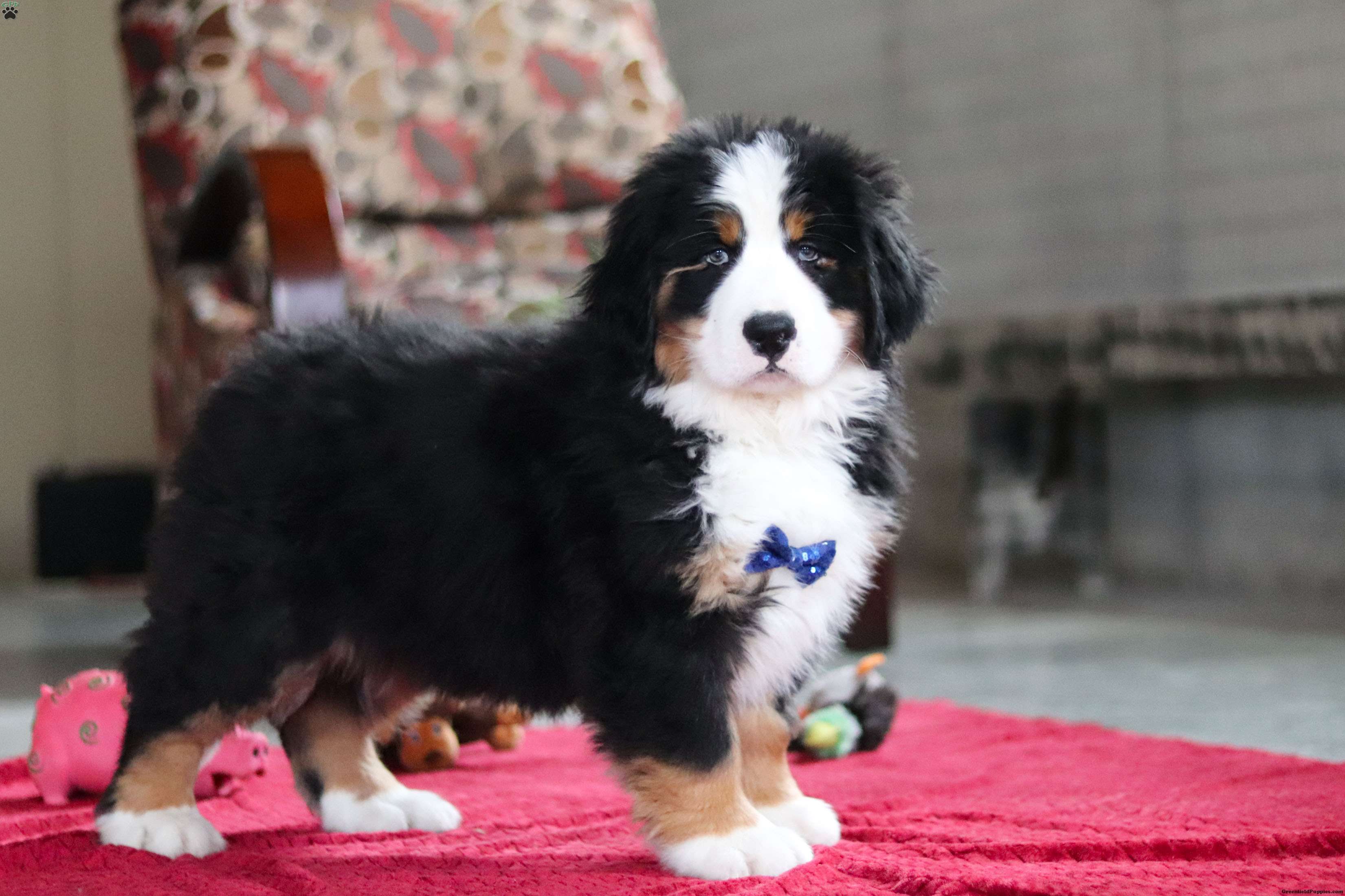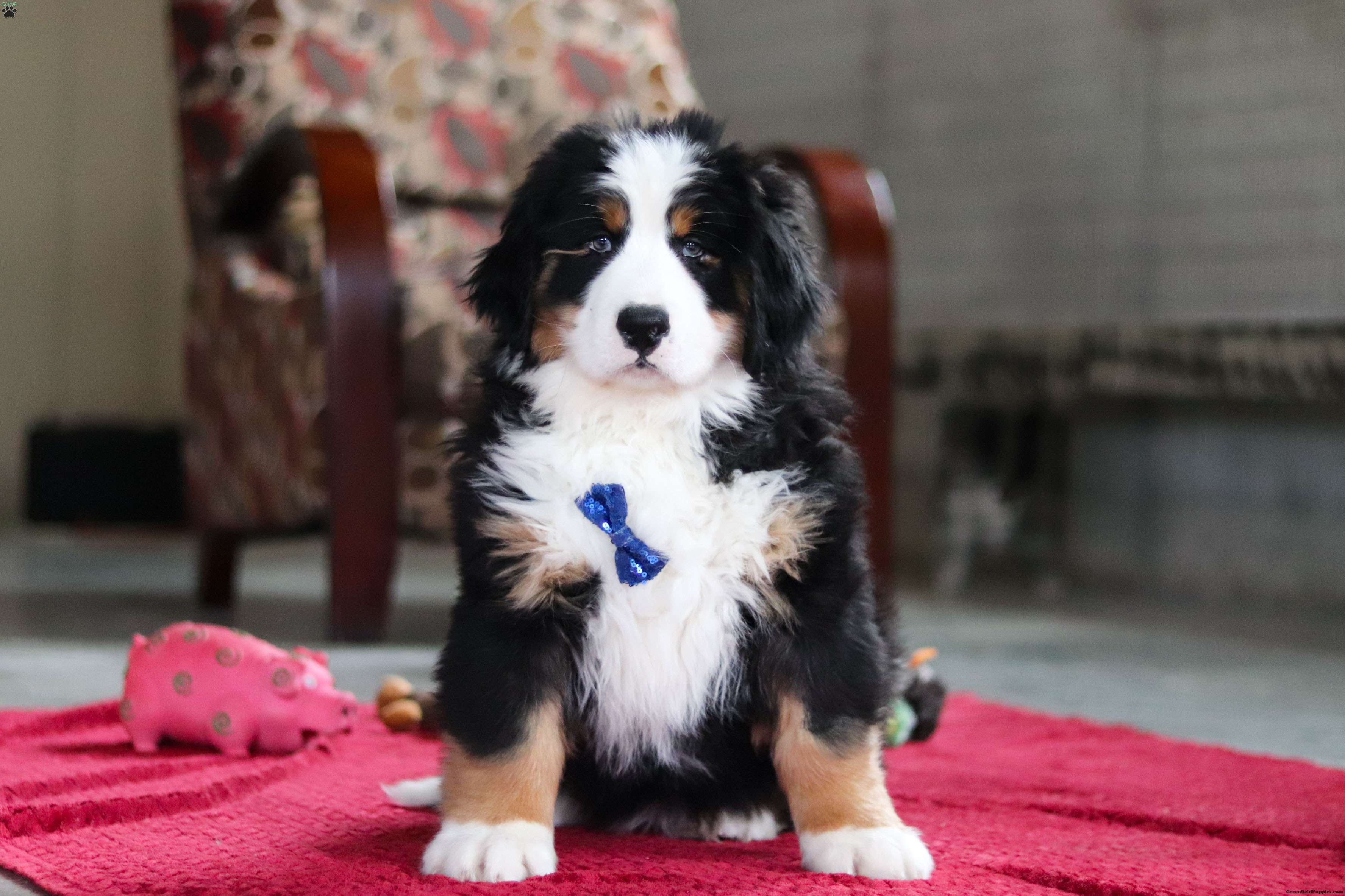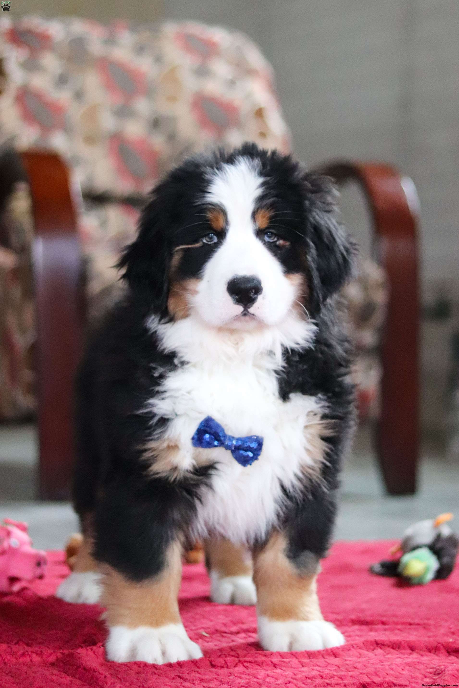 Meet Bobby, the majestic AKC Bernese Mountain Dog! He boasts the classic tri-colored coat of the Bernese Mountain Dog, featuring black, white, and warm rust tones that create a striking and elegant look. His large, soulful eyes and sturdy build give him a majestic presence that’s hard to resist. He has a playful spirit and loves outdoor activities. Whether it’s a hike in the mountains, a romp in the yard, or a snowy adventure, He is always up for fun and loves spending time in nature!