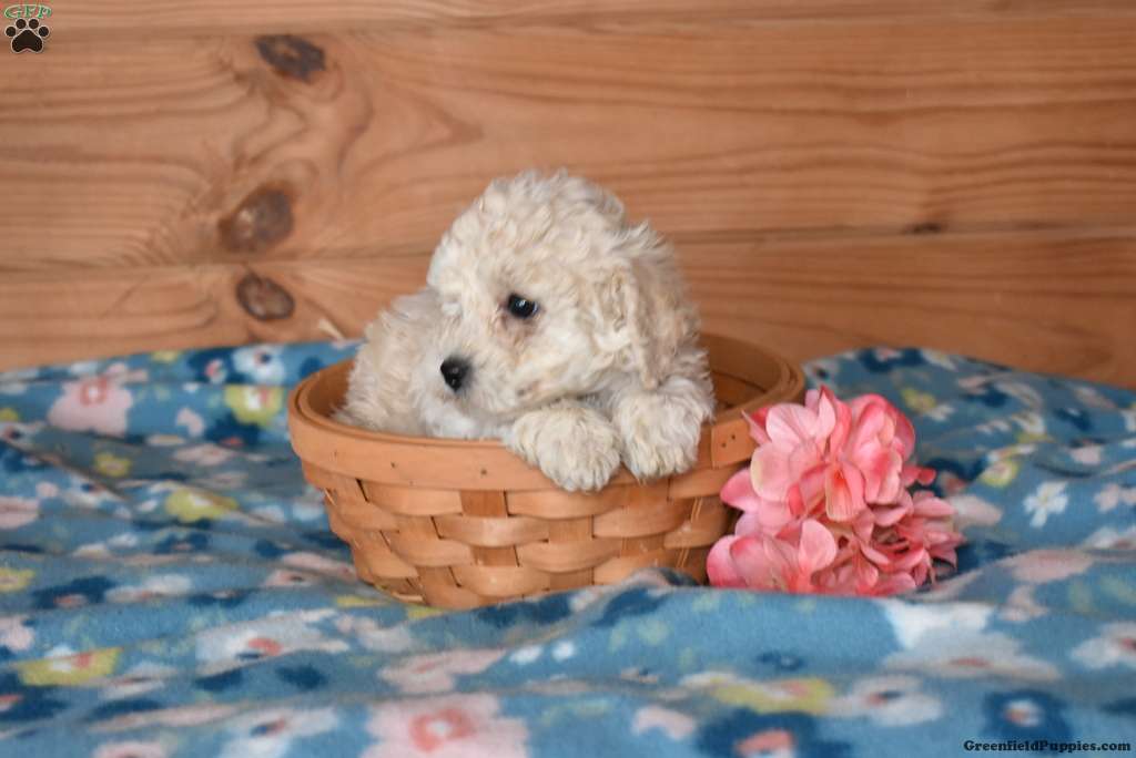 This charming Bich-Poo puppy loves to play and will be the sweetest sidekick! Eggo is socialized, family raised with children, and ready to meet you. He’ll come home with a health guarantee provided by the breeder, plus has been seen by a vet and is up to date on shots and de-wormer. Get ready for snuggles and fun with precious Eggo in your world!