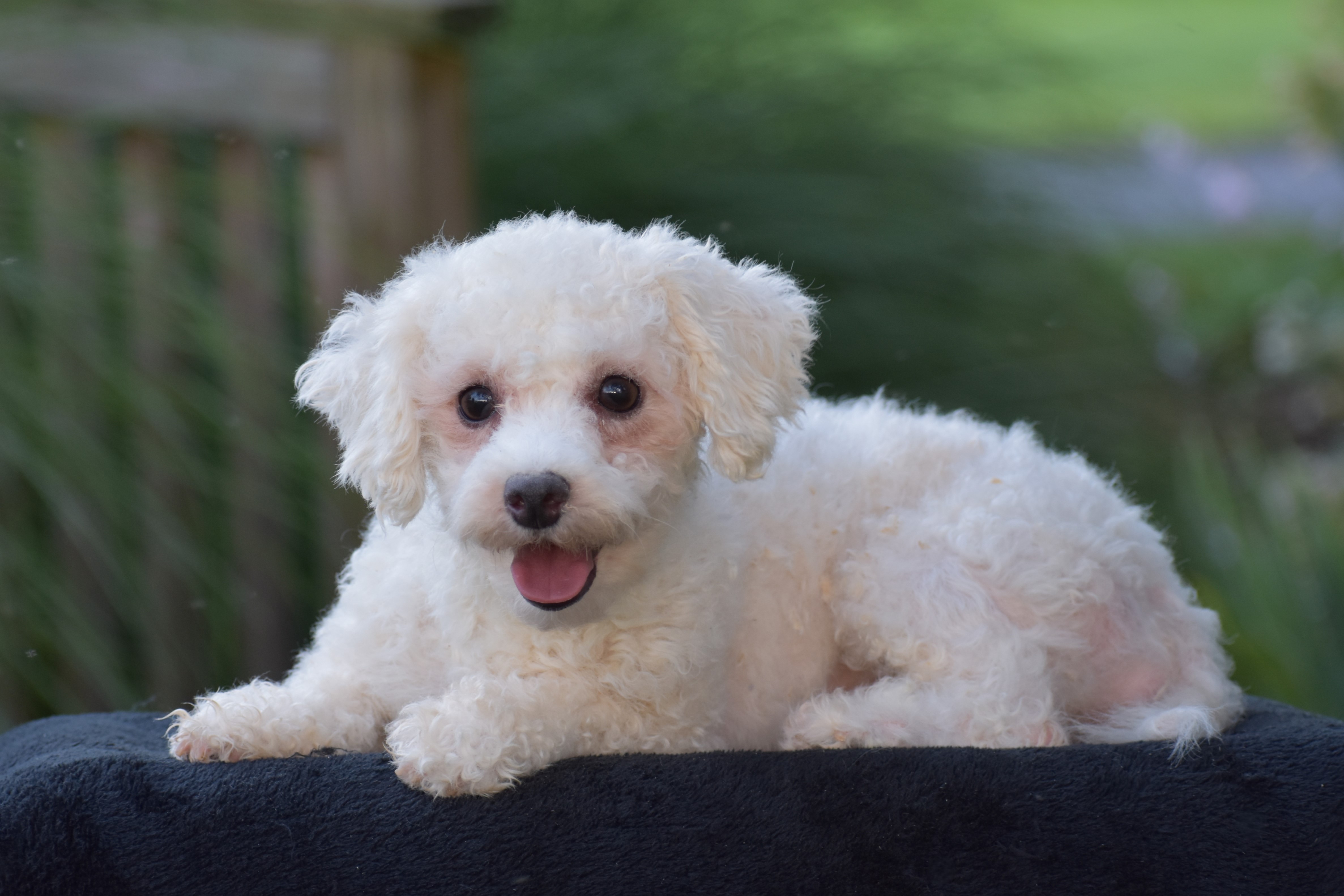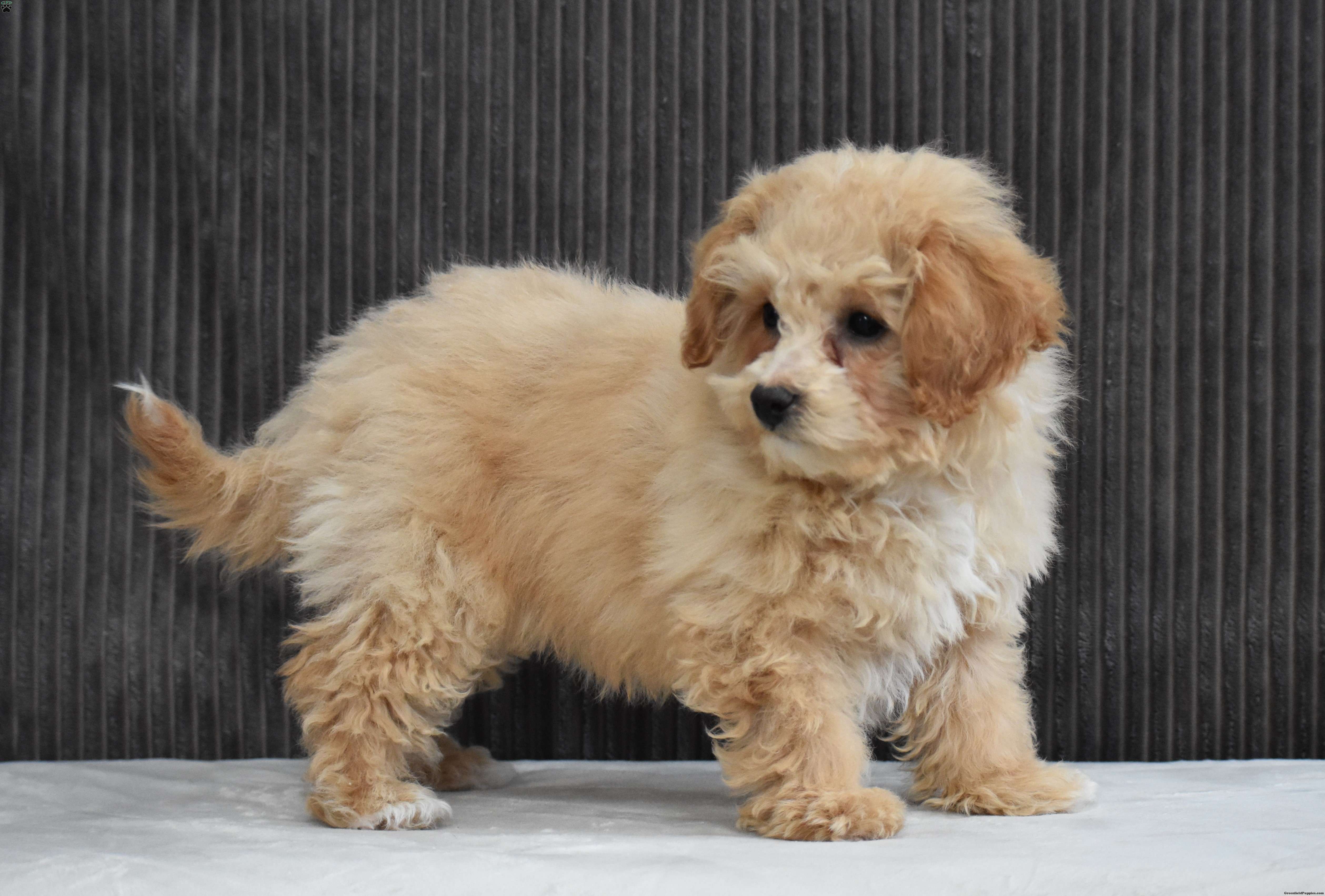 We are pleased to introduce you to Gina! Thomas and Trixy's Bich-poo puppies! They were born on October 26. Thomas, our 8 lb Miniature Red Poodle, is the proud Dad. And Trixy, our 10 pound Bichon is the sweet Mom. We expect these puppies to weigh 9 to 13 pounds full grown. These pups will be a perfect fit for a family pet or for a 1-person companion! They love attention and cuddles. And they love playing with their toys and children. They are up-to-date with their first vaccinations(including rabies) and de-wormers. They have been microchipped for permanent identification. Along with a health certificate from our licensed veterinarian, you will receive a small bag of the food that they are used to(Nutri Source), his blankie, and a folder with your records, and a 1-year health guarantee. To schedule an appointment, or leave a deposit to reserve your puppy, call or text Ruthie. We want to do all we can to make this an easy transition for you!