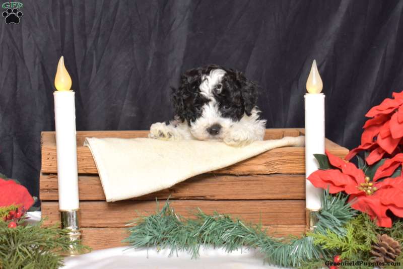 Meet your new BFF, Harley! This super cute Bich-poo puppy is vet checked & up to date on shots & wormer, plus comes with a health guarantee provided by the breeder! Harley is socialized & currently being family raised!