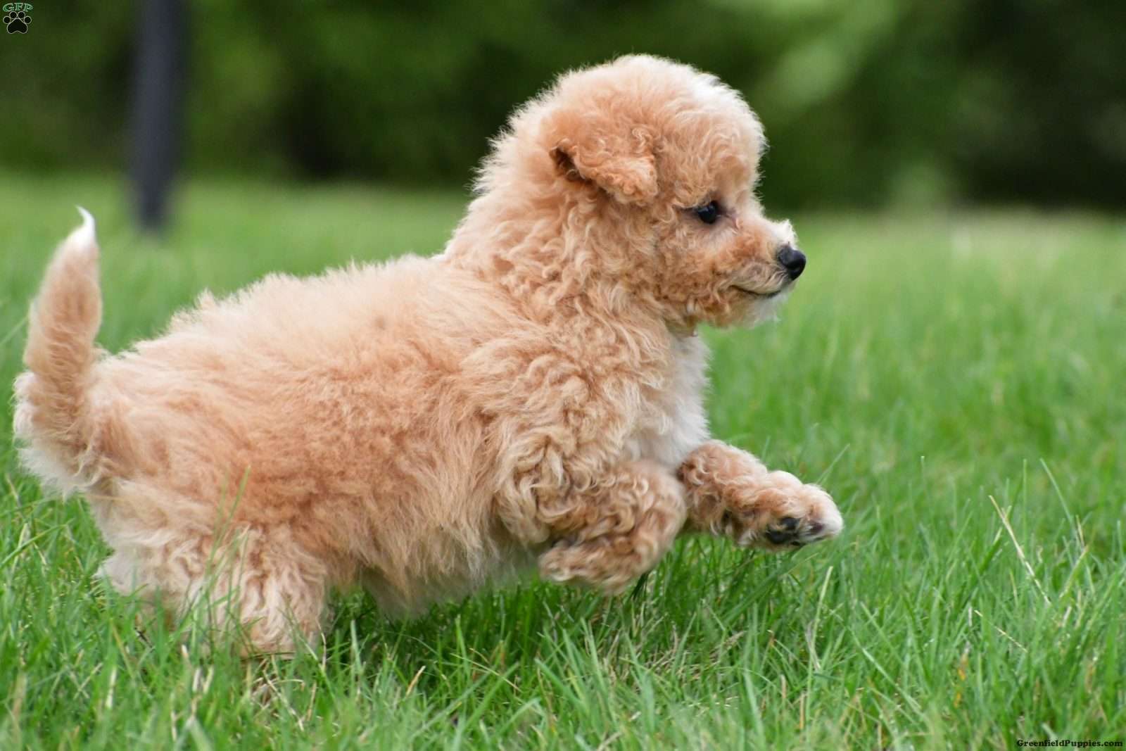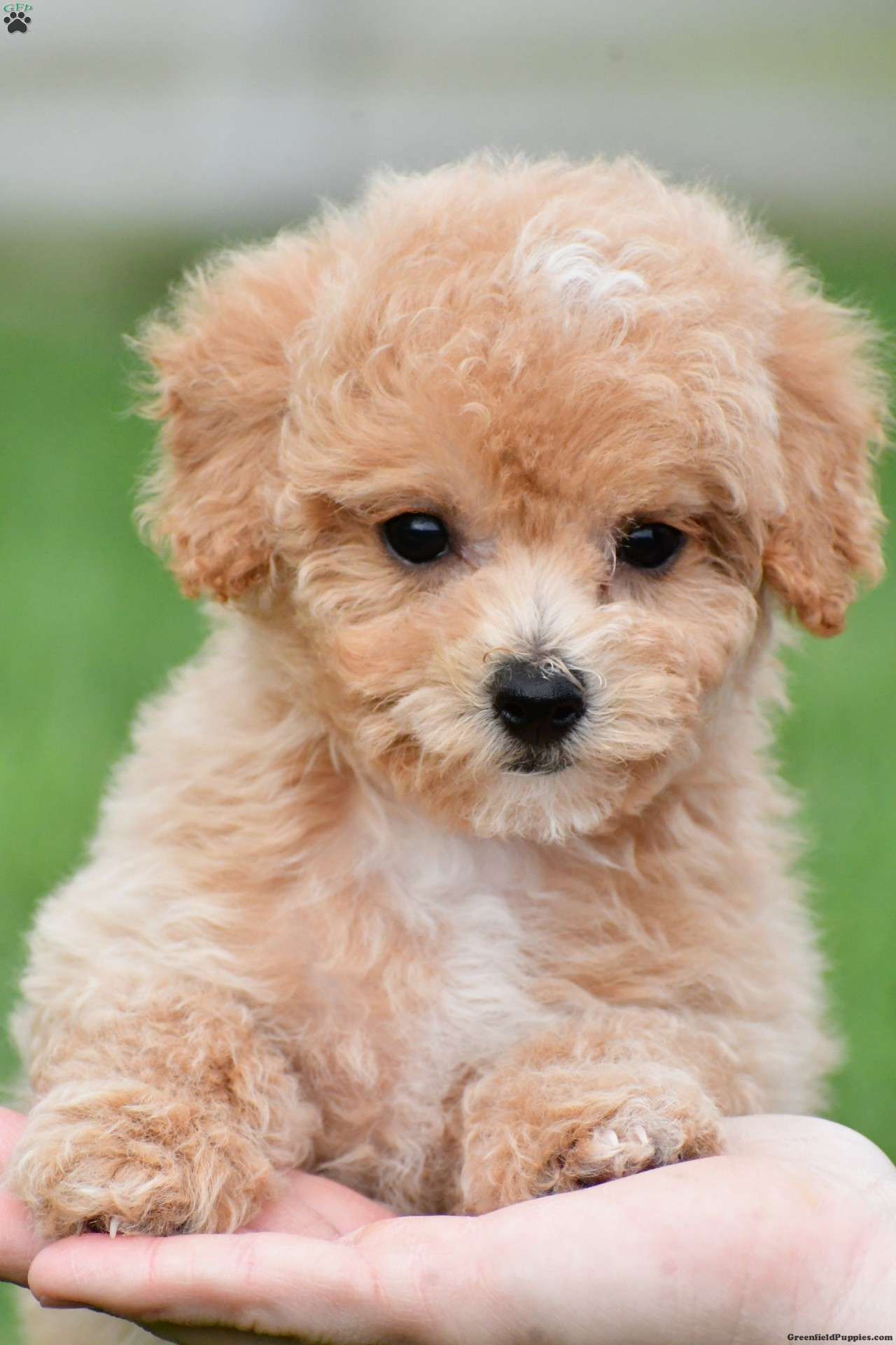 With a beautiful soft cream-colored coat, this Bichapoo is as stunning as they are cuddly. Their fluffy, low-shedding coat makes them a wonderful choice for those looking for a more allergy-friendly pet.