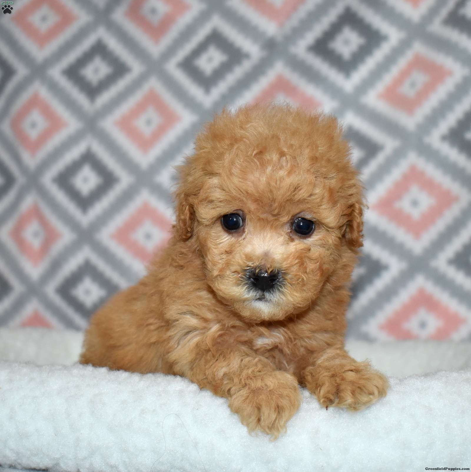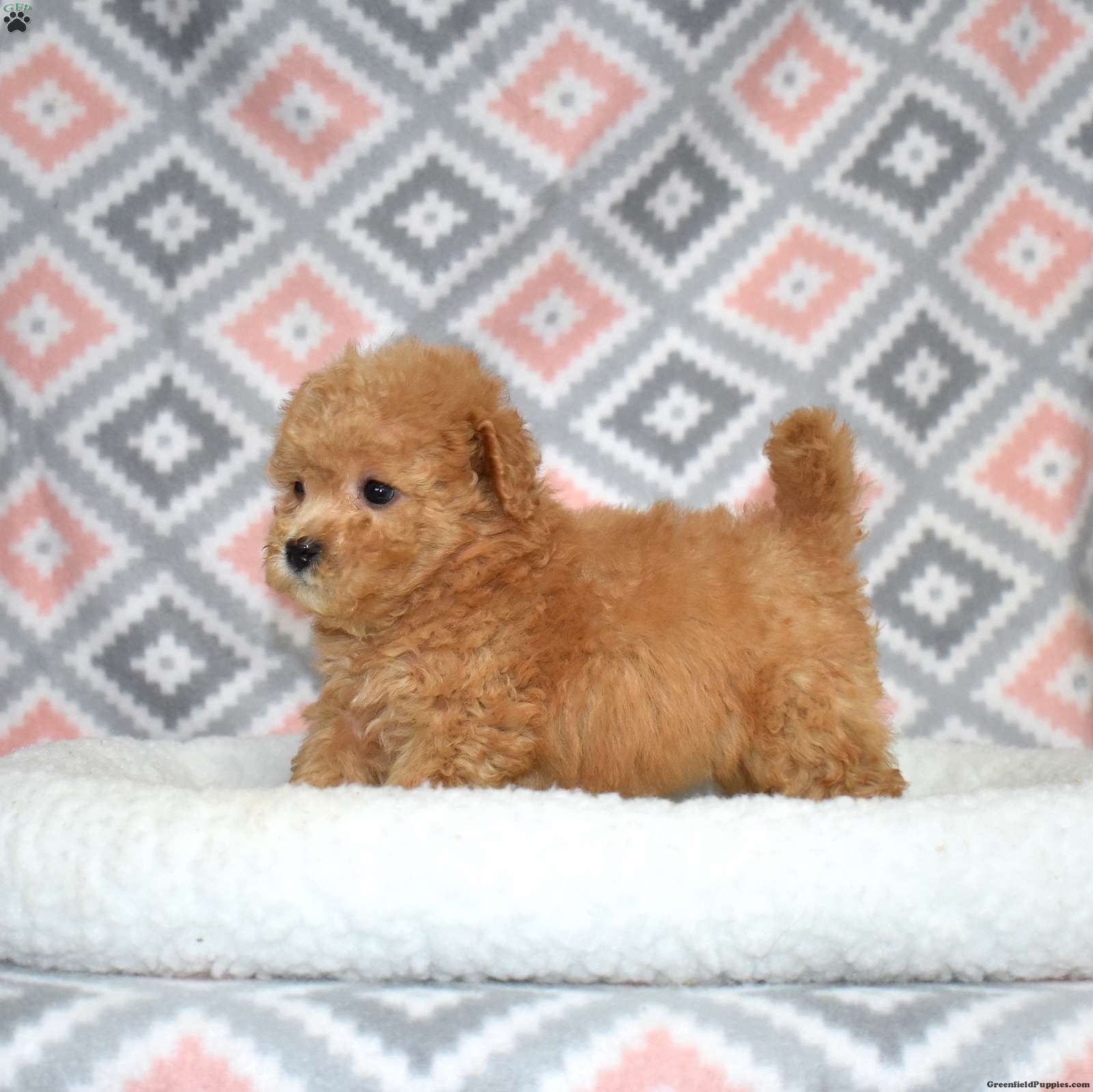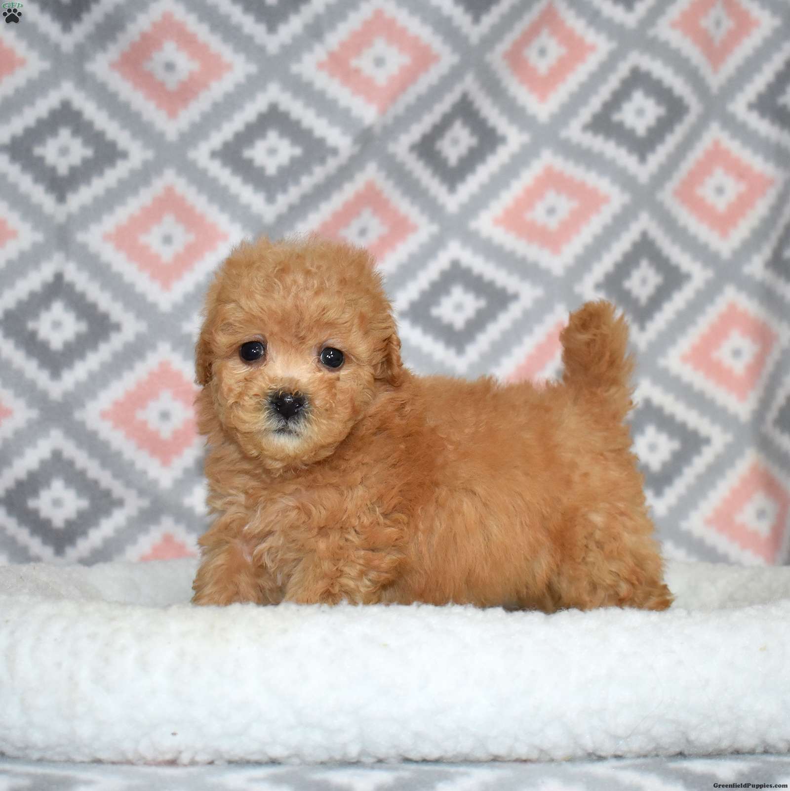 Peaches is a joyful Bich Poo puppy with a beautiful golden coat accented by adorable white markings. Her playful, silly personality makes her a constant source of smiles and laughter. Bich Poos are known for their happy, fun-loving nature, and Peaches truly embodies that spirit.