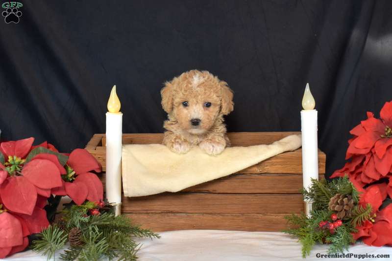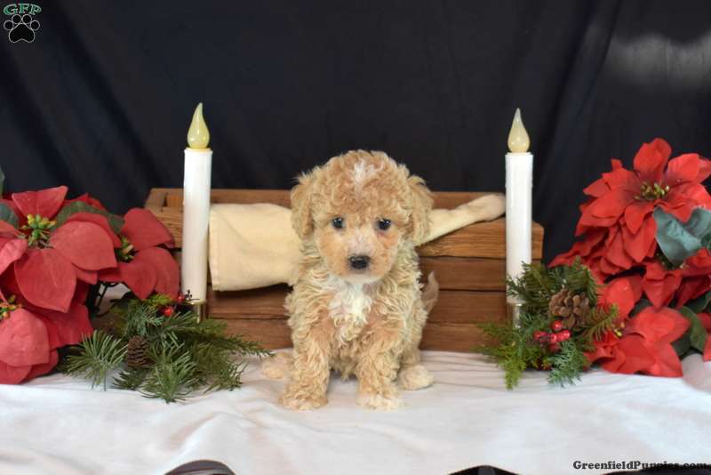 Peanut is a charming Bich-Poo puppy who loves to play! This cutie comes home with a 30 day health guarantee and an extended genetic health guarantee, both provided by the breeder. Peanut has been seen by a vet and is up to date on shots and de-wormer. This sweetie is socialized, family raised, and ready to meet you!