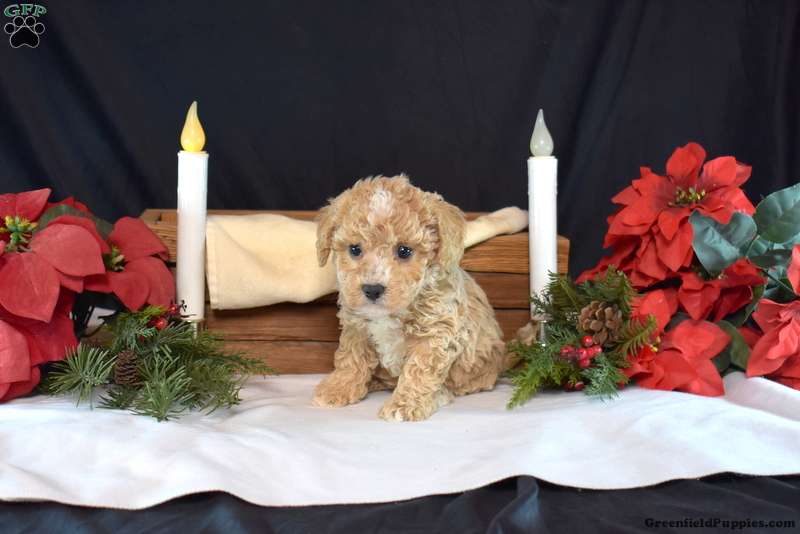 Percy is a charming Bich-Poo puppy who loves to play! This cutie comes home with a 30 day health guarantee and an extended genetic health guarantee, both provided by the breeder. Percy has been seen by a vet and is up to date on shots and de-wormer. This sweetie is socialized, family raised, and ready to meet you!