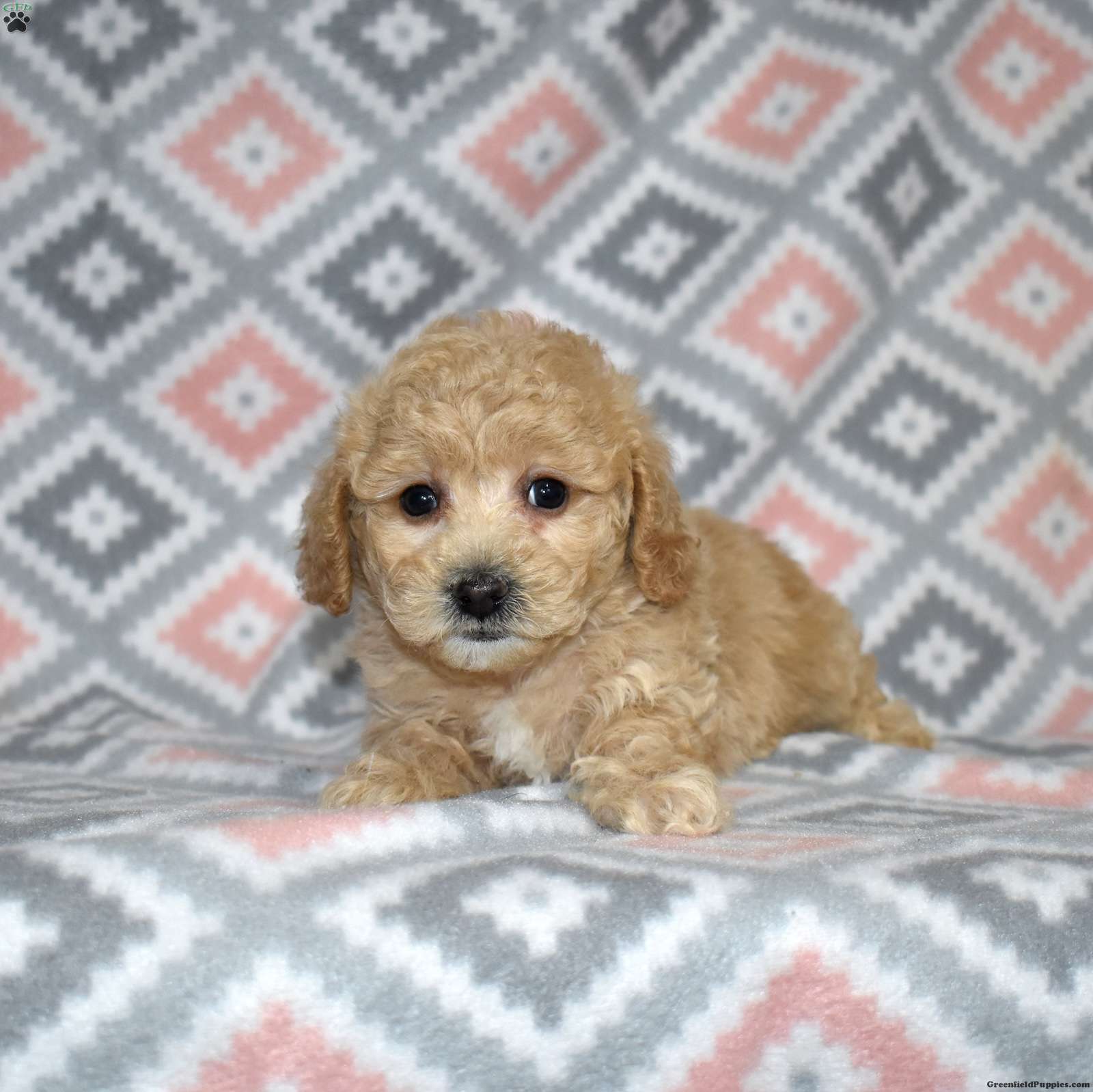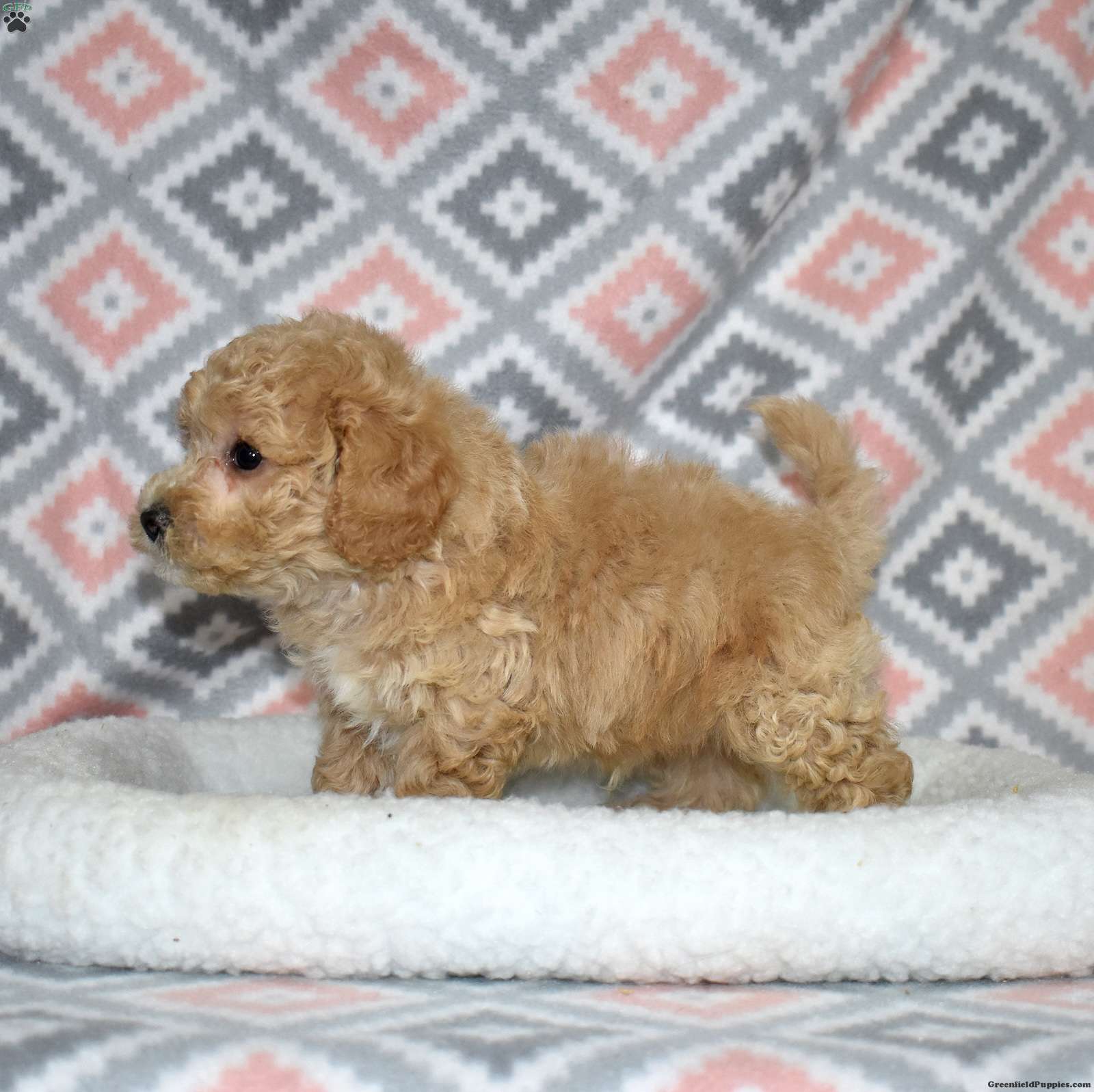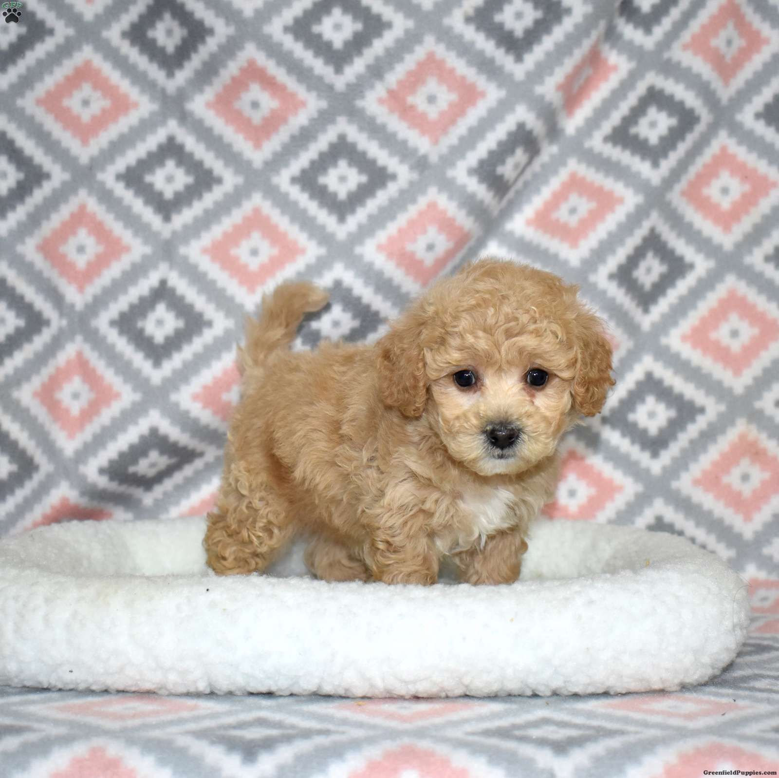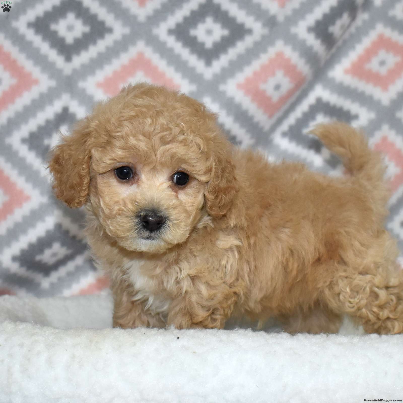 Pogo is a playful Bich Poo puppy who lives up to his fun name. With his golden coat and charming white markings, he’s as adorable as he is entertaining. Pogo’s silly, bouncy personality brings constant joy and laughter to everyone he meets.