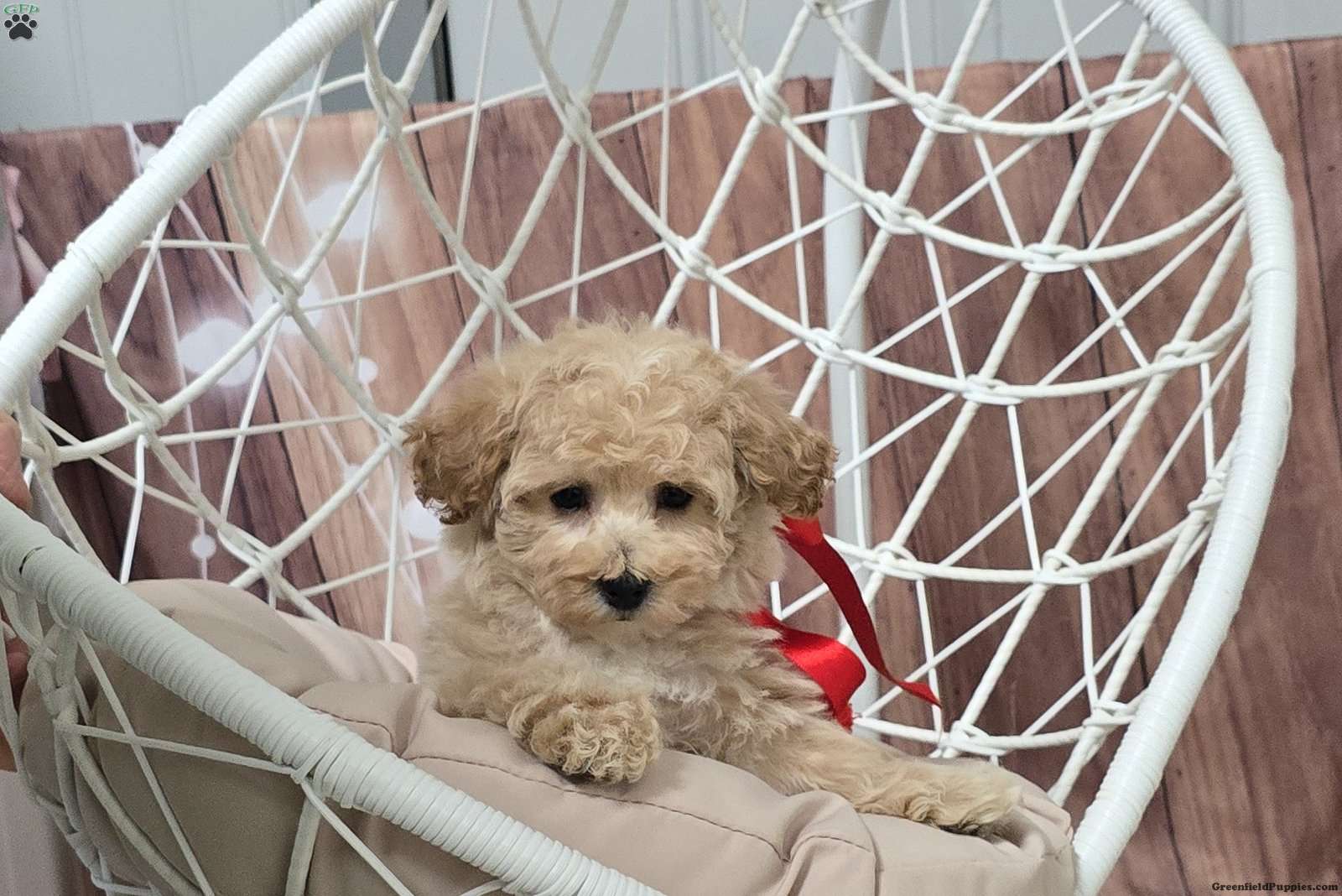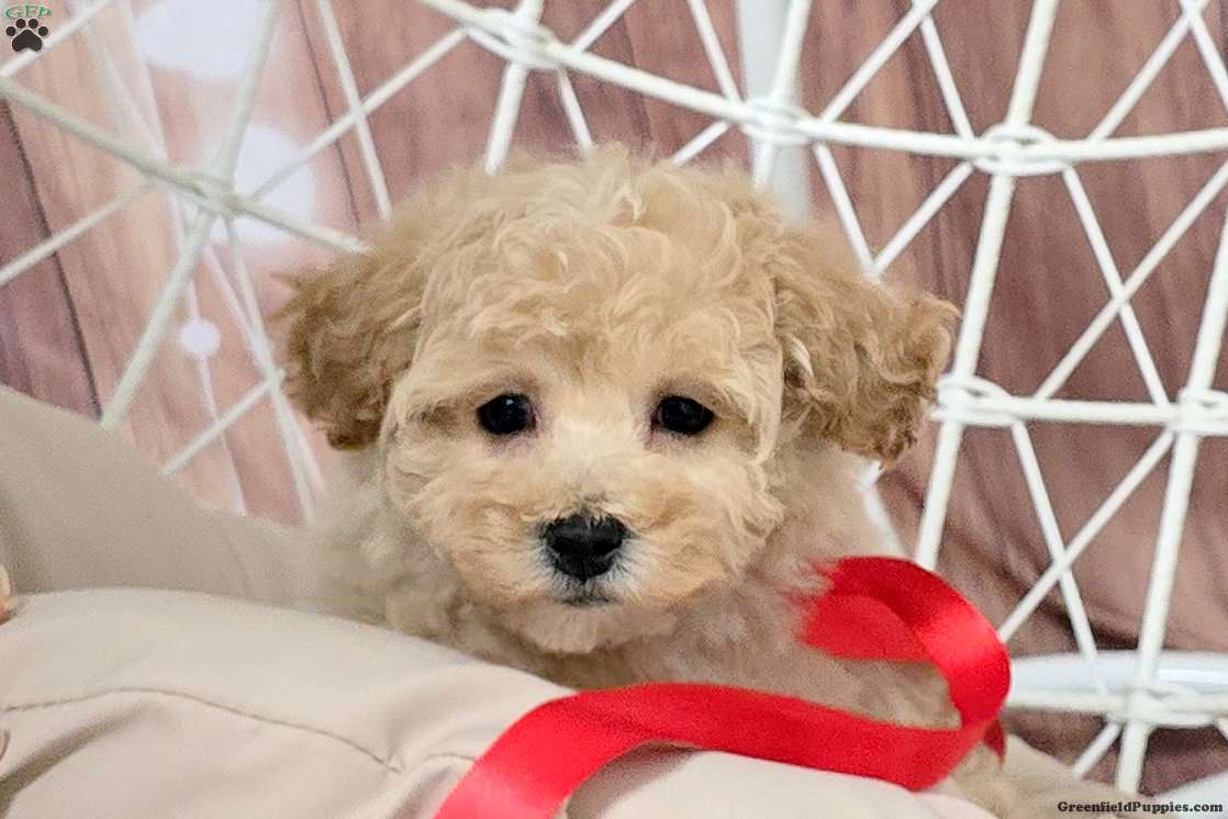 Meet Shimmer, a soft and sweet Bich-Poo puppy who loves to cuddle! This cute girl is well socialized and ready to be adored by you! Vet checked and up to date on shots and de-wormer, Shimmer comes home with a 30 day health guarantee and an extended genetic health guarantee, both provided by the breeder.