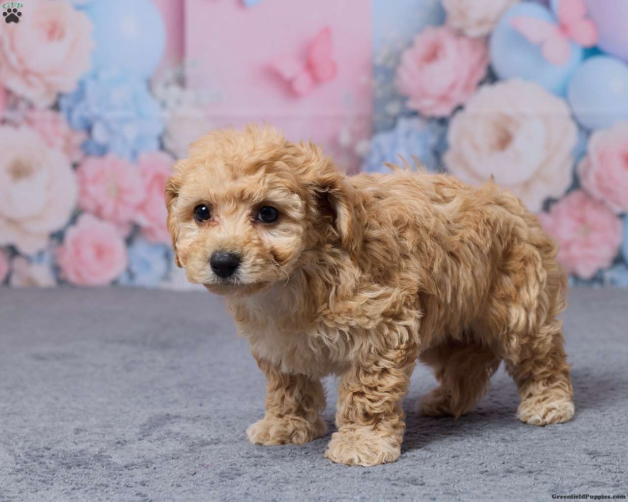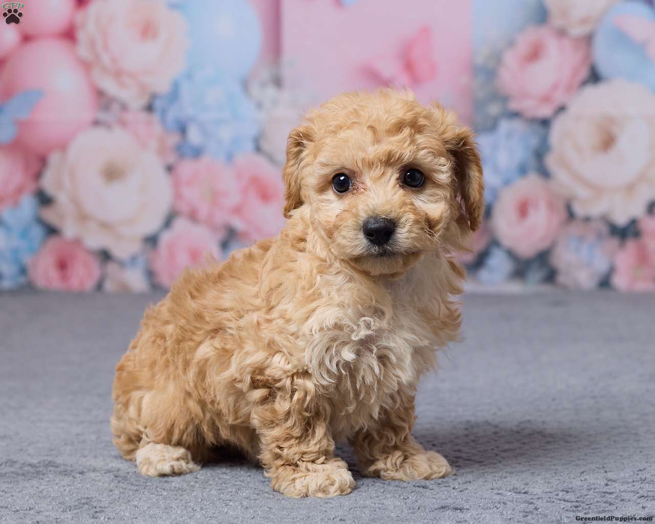 Meet sweet little Tootsie! A cute little Bichpoo puppy that’s well socialized and will be sure to capture your heart with her playful bouncy ways, snuggles, & puppy kisses!