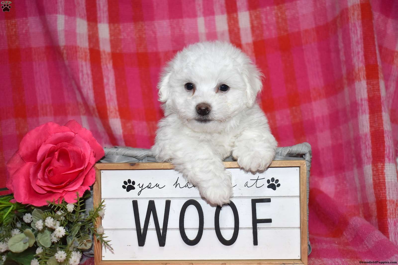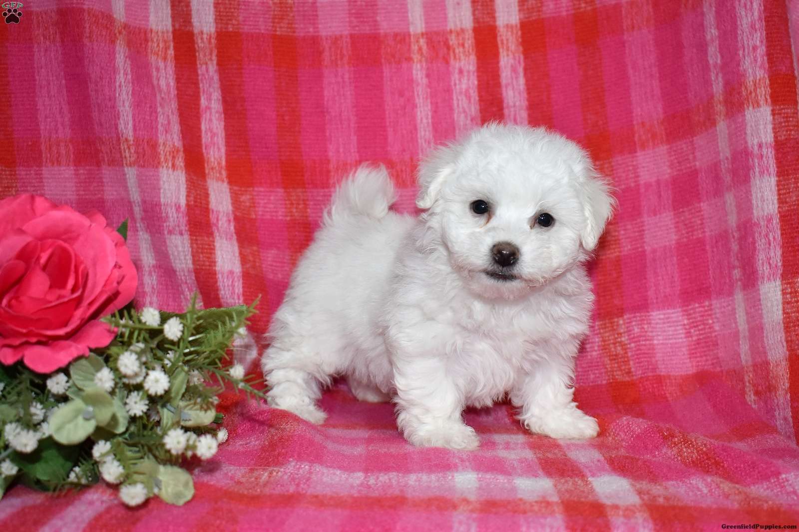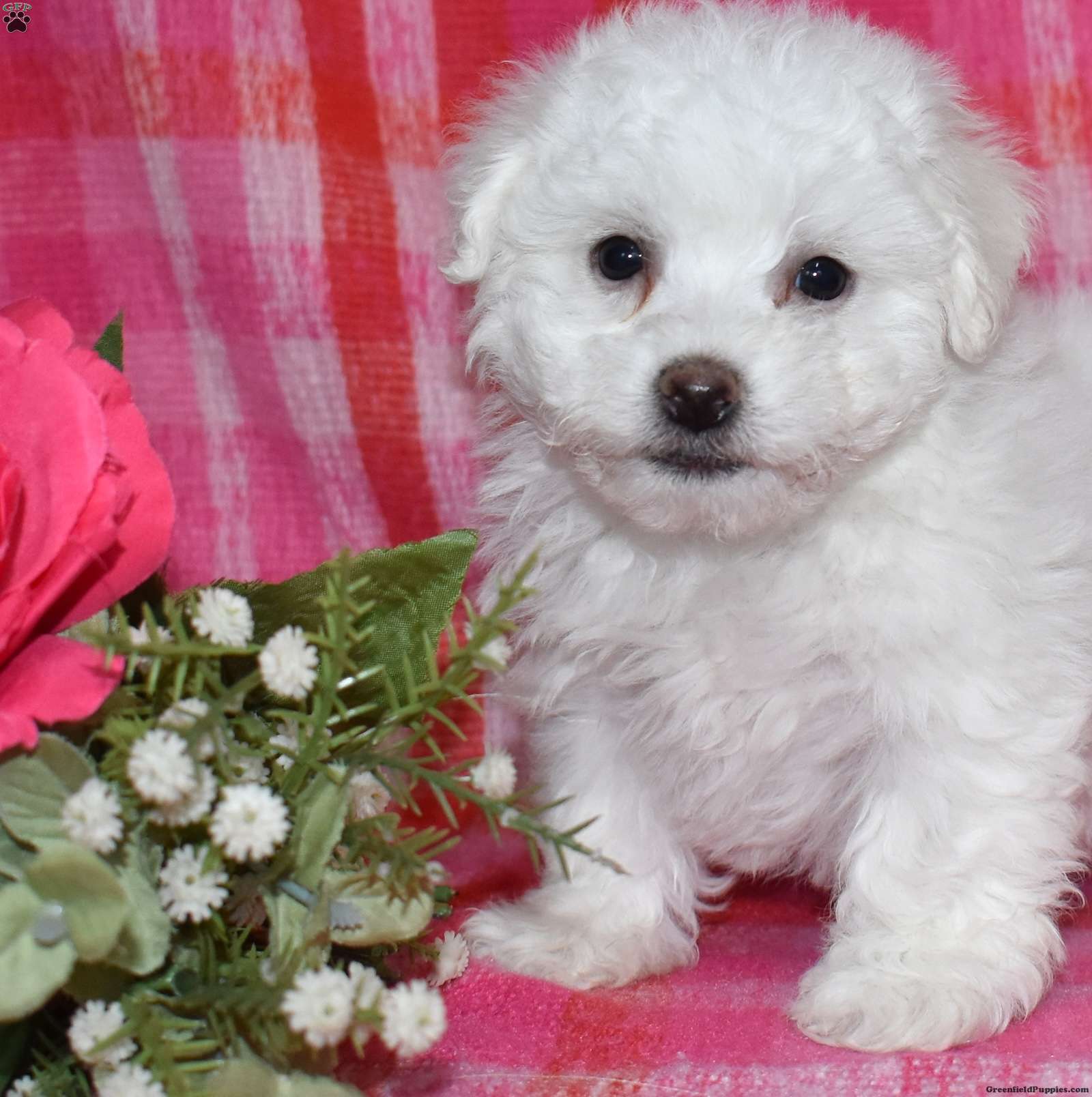 Winston is a precious Bichon Frise puppy with a gentle soul and a heart full of love. Expected to mature at just 7–9 pounds, Winston will remain delightfully tiny while providing an enormous amount of joy. His soft, cloud-like coat and sweet personality make him irresistible.