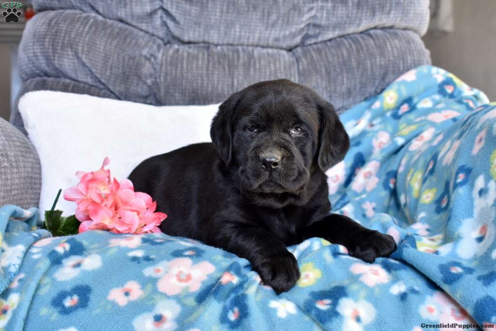 Baylee is a cuddly Black Labrador Retriever puppy who loves to play and can be registered with the AKC. This beautiful girl comes home with a health guarantee provided by the breeder, plus has been seen by a vet and is up to date on shots and de-wormer. Baylee is socialized, family raised with children, and ready to meet you!