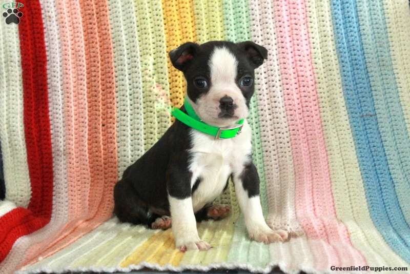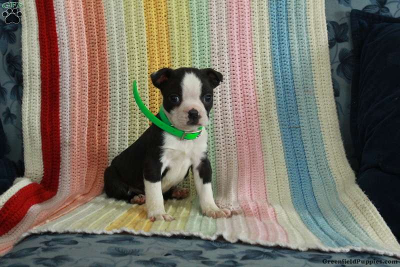 Devan is a cute and cuddly Boston Terrier puppy who is sweet as can be! This adorable boy is socialized and ready to meet you! Devan comes home with a health guarantee provided by the breeders, plus has been seen by a vet and is up to date on shots and de-wormer.