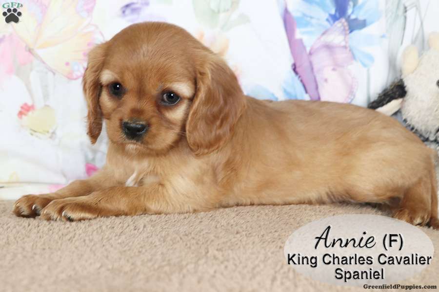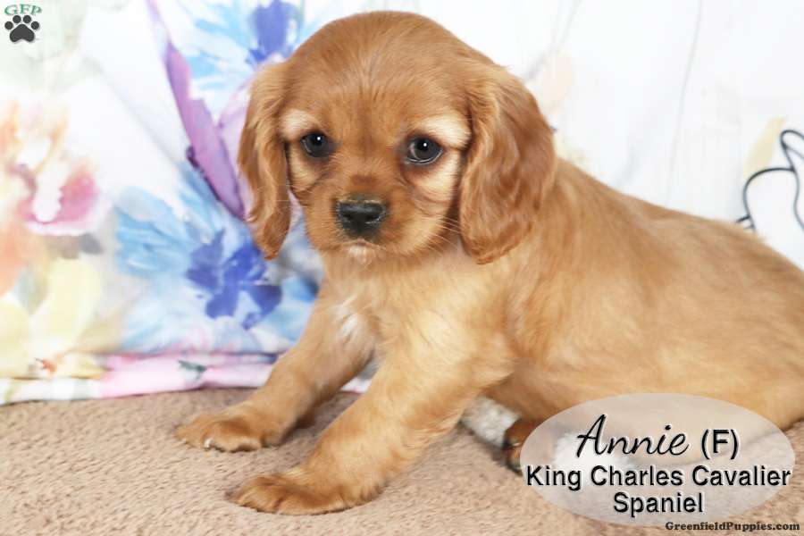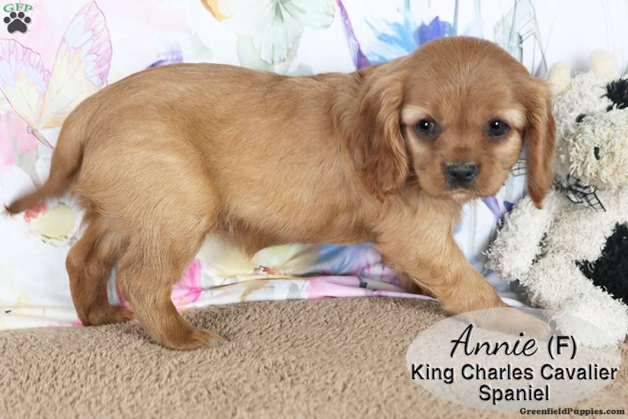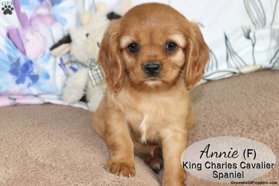 Annie is a sweet ruby female Cavalier King Charles Spaniel puppy. She is playful and lovable, enjoying time with our children. She also enjoys cuddles and is well socialized. This little one is looking for her forever home and would make a great addition to your family.