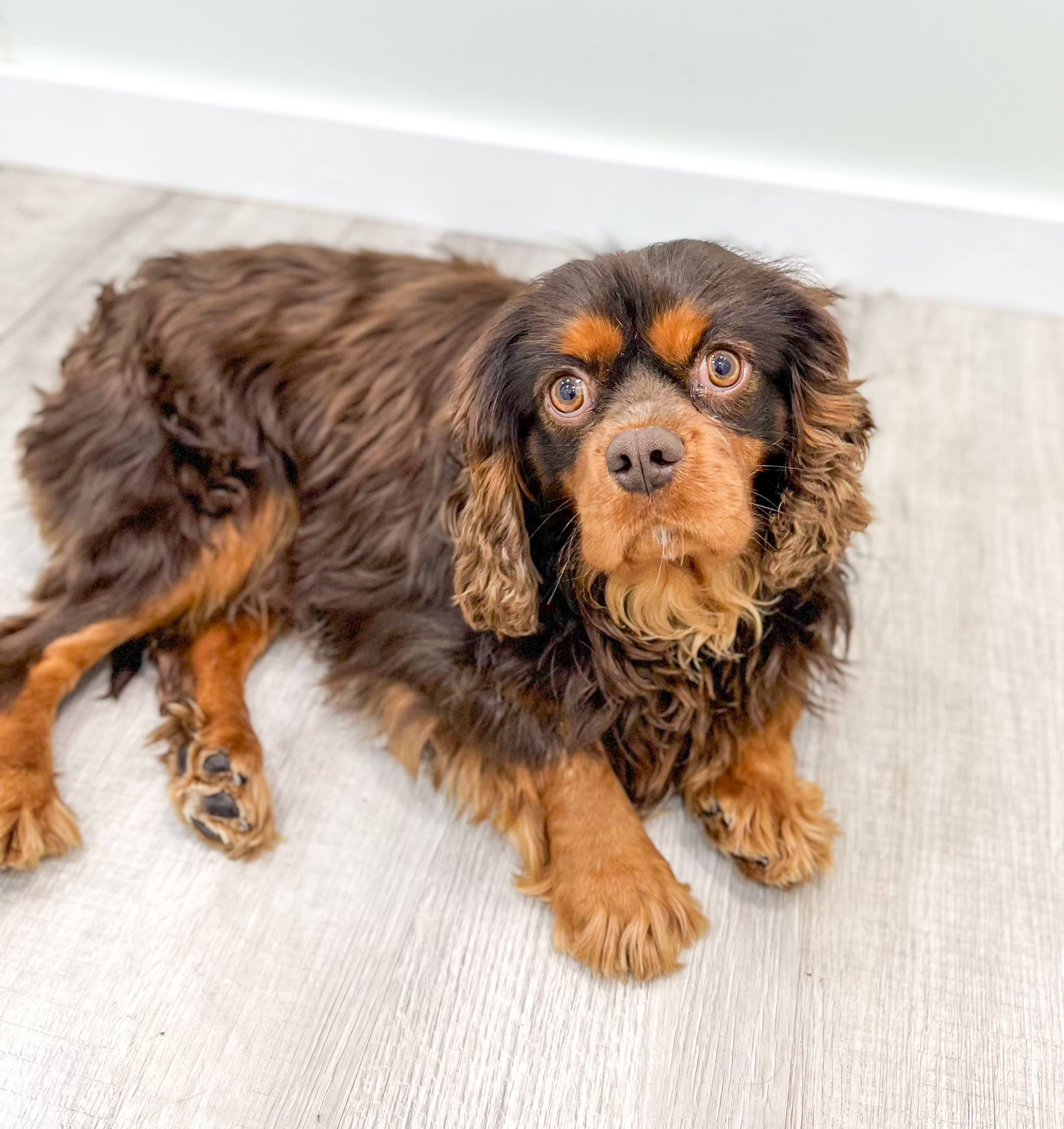 Meet Mudslide! This sweet and adorable chocolate Cavalier King Charles Spaniel is looking for a forever family!