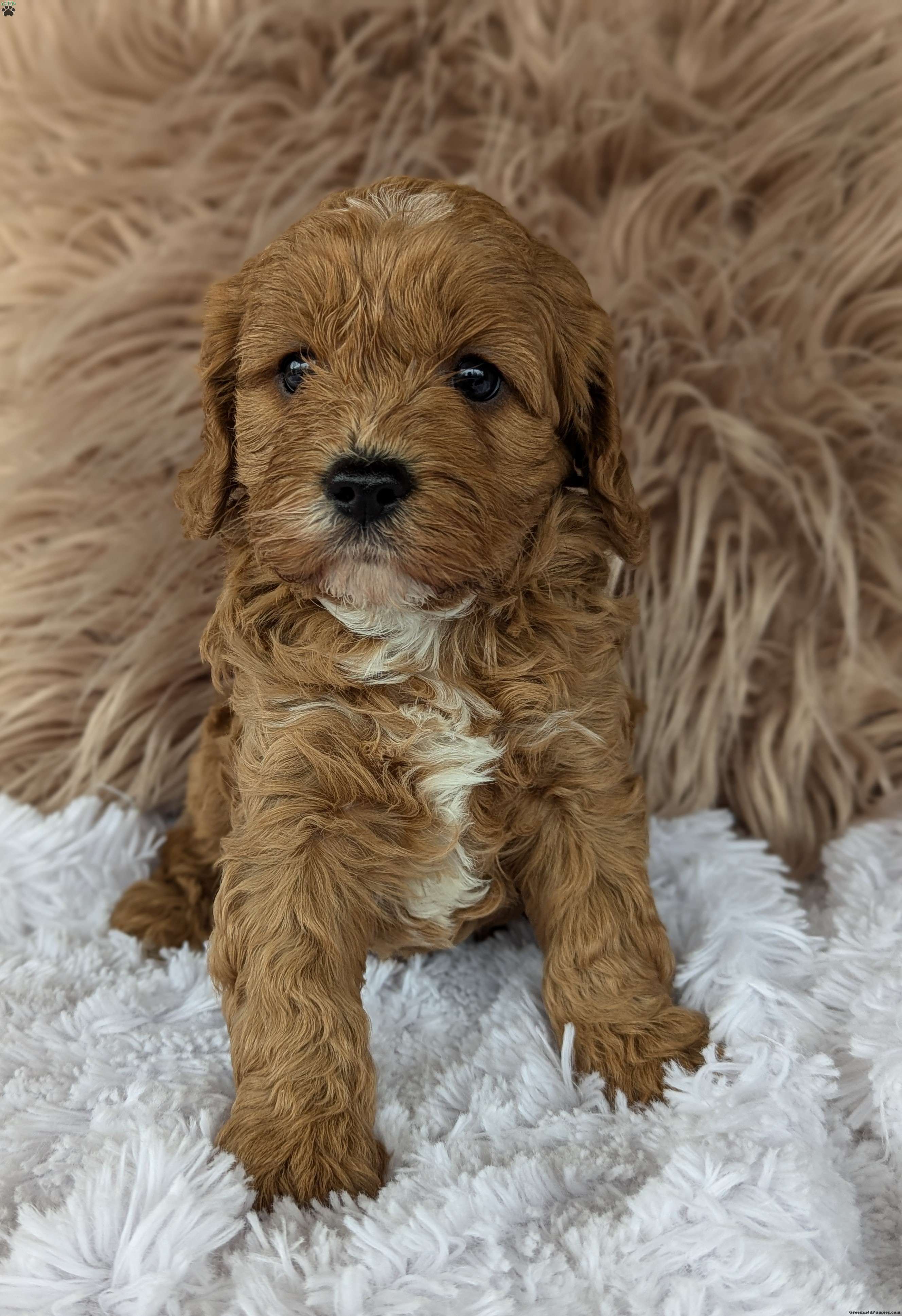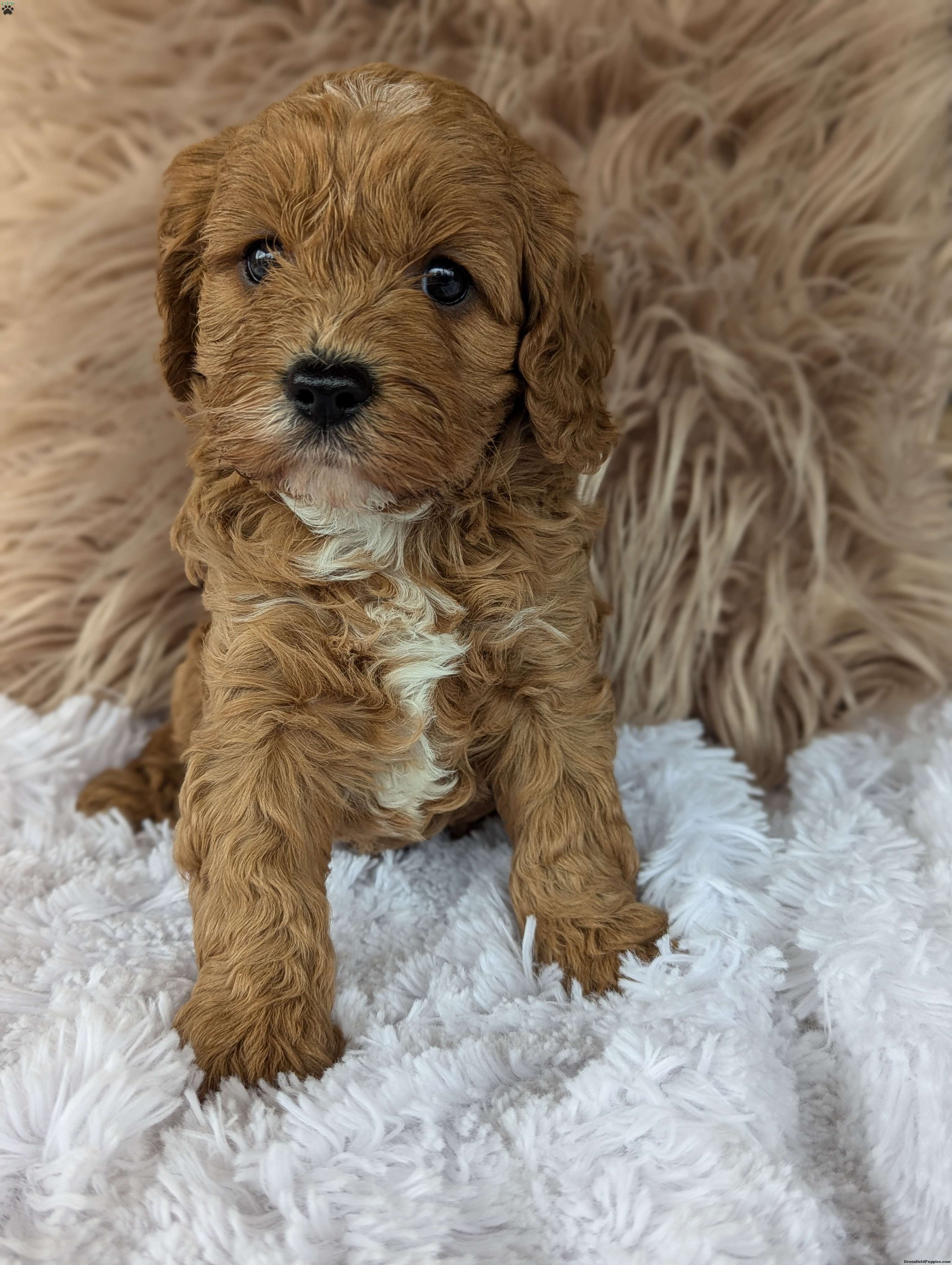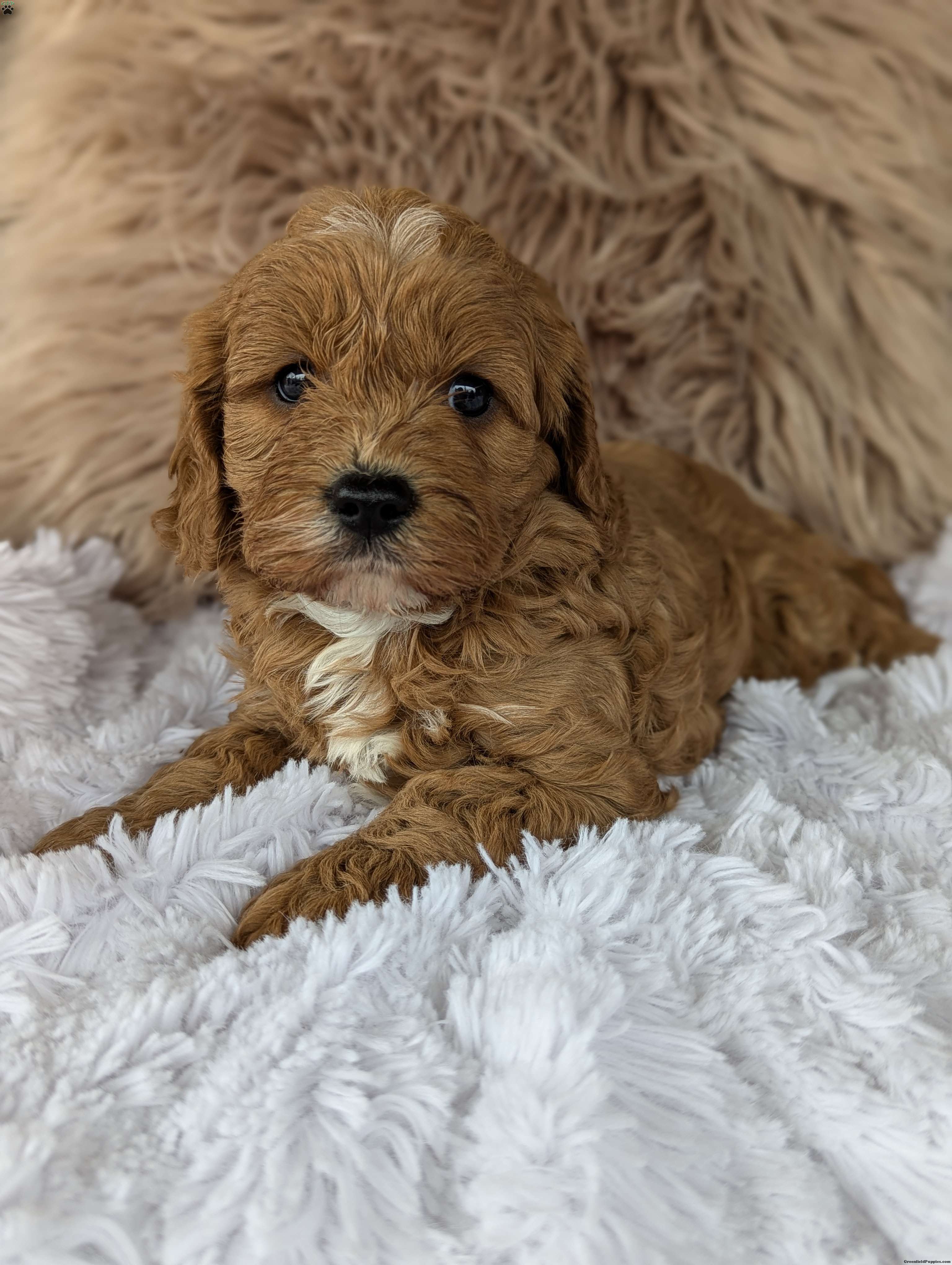 Hi meet Champ! I am a happy healthy puppy looking for someone to give me lots of puppy kisses and play with me !! I love to be held !! My parents are friendly and love attention, momma Luna is a miniature poodle weighing around 14 pounds daddy Lincoln is a cavalier . Any questions feel free to call Rebecca and she would love to chat with you!!