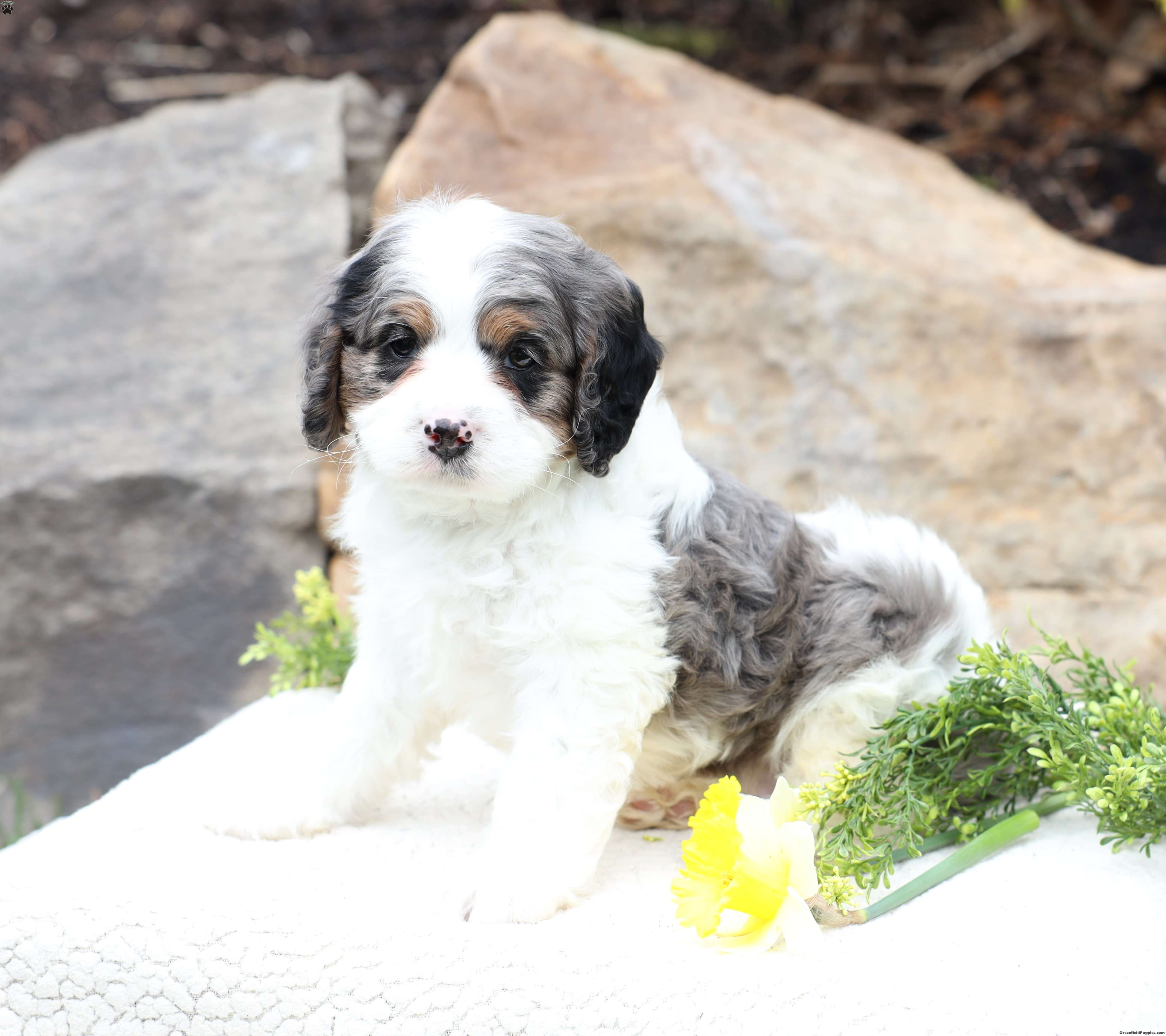 Check out this adorable Cavapoo puppy! This sweet boy is well socialized and sure to be a great addition to any family. He is vet checked, up to date on shots and dewormer, plus comes with a health guarantee. To learn more about Clover and how to claim him as your own, please call today!