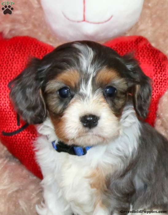 Donnie is a beautiful Cavapoo puppy who is socialized and sweet as can be! This cutie is ready to be adored by you! Donnie will come home with a 30 day health guarantee as well as an extended genetic health guarantee, both provided by the breeder. This precious pup has also been seen by a vet and is up to date on shots and de-wormer.