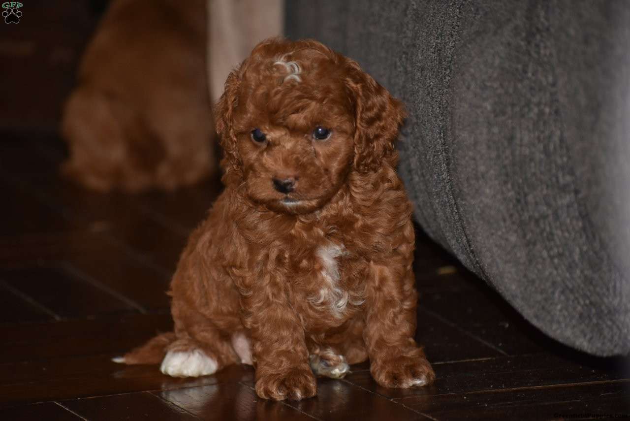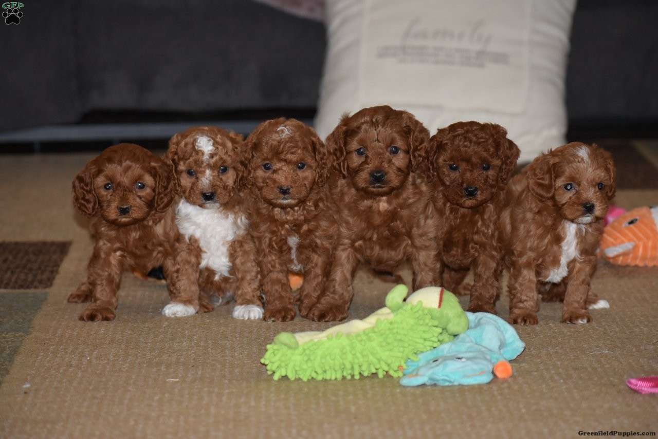 Meet our precious litter of F1B Cavapoo puppies!! These adorable red pups were born on January 27, 2026. They love playing with our children and they love attention! Its so much fun to watch them run and play in the grass! They are all very well socialized! Dad Kenny is a handsome 2 year old Mini Red Poodle. Kenny is purebred, and is registered with the AKC. Dad Kenny loves playtime outside with the girls and enjoys squeaky toys. Mom Marmalade is a first generation Cavapoo who was raised on our farm. Her father is our 8 pound Mini Red poodle named Thomas and her mother is Jewel, a 13 pound Blenheim Cavalier King Charles Spaniel. Both parents have been very healthy all their lives and are quite friendly dogs. We expect these pups will be 10-15 pounds as adults. Our puppies eat Nutri-Source Puppy food, a high quality puppy food that can be bough on Amazon. Please look up Pond View Puppies for information about puppy purchase, puppy tips, and our sales agreement & 2 Year Genetic health guarantee. These puppies are fully vaccinated and dewormed. They come with a health certificate, vaccination records, a small bag of Nutri-Source Puppy food, and a blanket with mom and littermate’s scent on it. Please call us with any questions about this litter, if we don’t answer, please leave a message and we’ll call you right back. Visits to meet the puppies are by appointment only.
