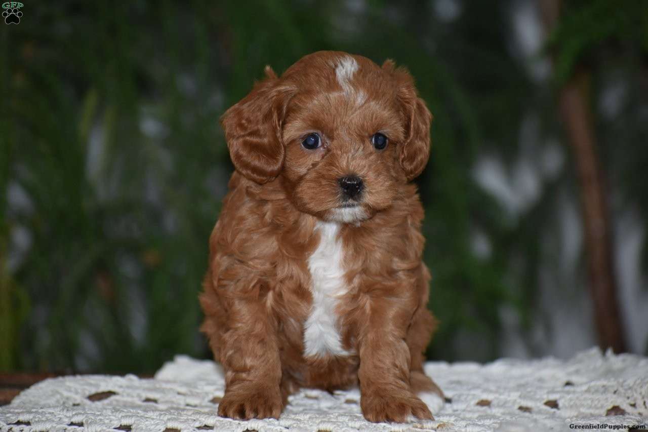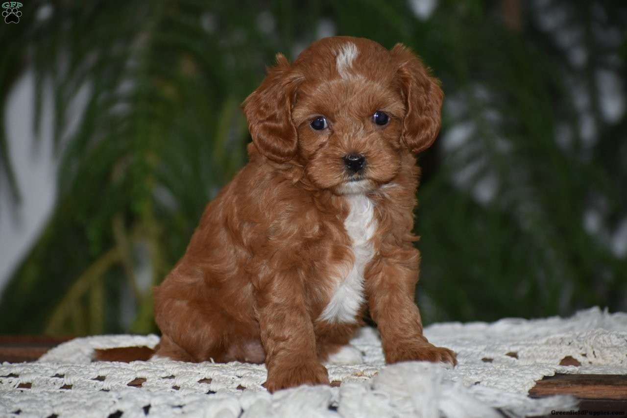 Meet our precious litter of F1B Cavapoo puppies!! These adorable red pups were born on January 27, 2026. They love playing with our children and they love attention! Its so much fun to watch them run and play in the grass! They are all very well socialized! Dad Kenny is a handsome 2 year old Mini Red Poodle. Kenny is purebred, and is registered with the AKC. Dad Kenny loves playtime outside with the girls and enjoys squeaky toys. Mom Marmalade is a first generation Cavapoo who was raised on our farm. Her father is our 8 pound Mini Red poodle named Thomas and her mother is Jewel, a 13 pound Blenheim Cavalier King Charles Spaniel. Both parents have been very healthy all their lives and are quite friendly dogs. We expect these pups will be 10-15 pounds as adults. Our puppies eat Nutri-Source Puppy food, a high quality puppy food that can be bough on Amazon. Please look up Pond View Puppies for information about puppy purchase, puppy tips, and our sales agreement & 2 Year Genetic health guarantee. These puppies are fully vaccinated and dewormed. They come with a health certificate, vaccination records, a small bag of Nutri-Source Puppy food, and a blanket with mom and littermate’s scent on it. Please call us with any questions about this litter, if we don’t answer, please leave a message and we’ll call you right back. Visits to meet the puppies are by appointment only.