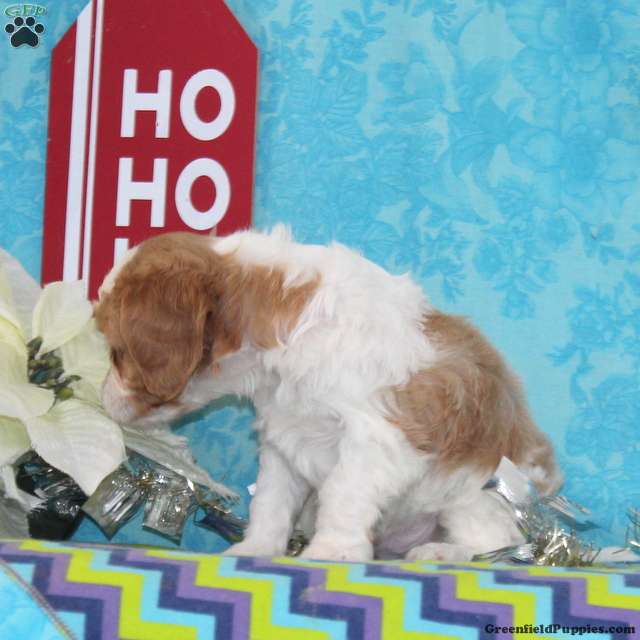 Cavapoos we find are just an awesome mix. Mix the cavaliers sweet, calm, gentle nature (they are so devoted) with the sharp, action packed, smart personality of a poodle—turns out a winner! These cavapoos are F1b, which always brings more of a variation in the litter. Jessie, our cavapoos is very sweet and gentle , and is very calm. Kaleb, our daddy cavalier is always happy, and ready for some playtime. They are up to date on their vaccinations and dewormings, and have been vet checked. Feel free to call with questions, or to set up a time to come visit them. Thanks,