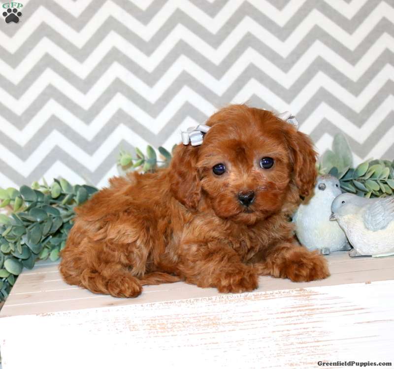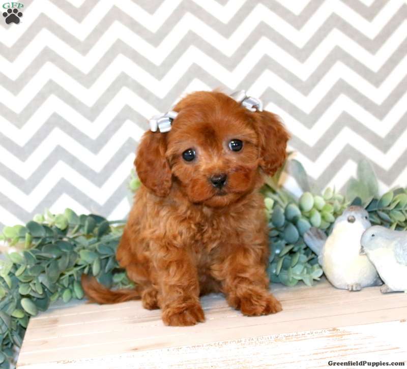 Poppy is a perfectly adorable Cavapoo puppy who loves to play! This sweet girl is socialized and ready to make your acquaintance! Poppy has been seen by a vet and is up to date on shots and de-wormer. She also comes home with a 30 day health guarantee and an extended genetic health guarantee, both provided by the breeder.