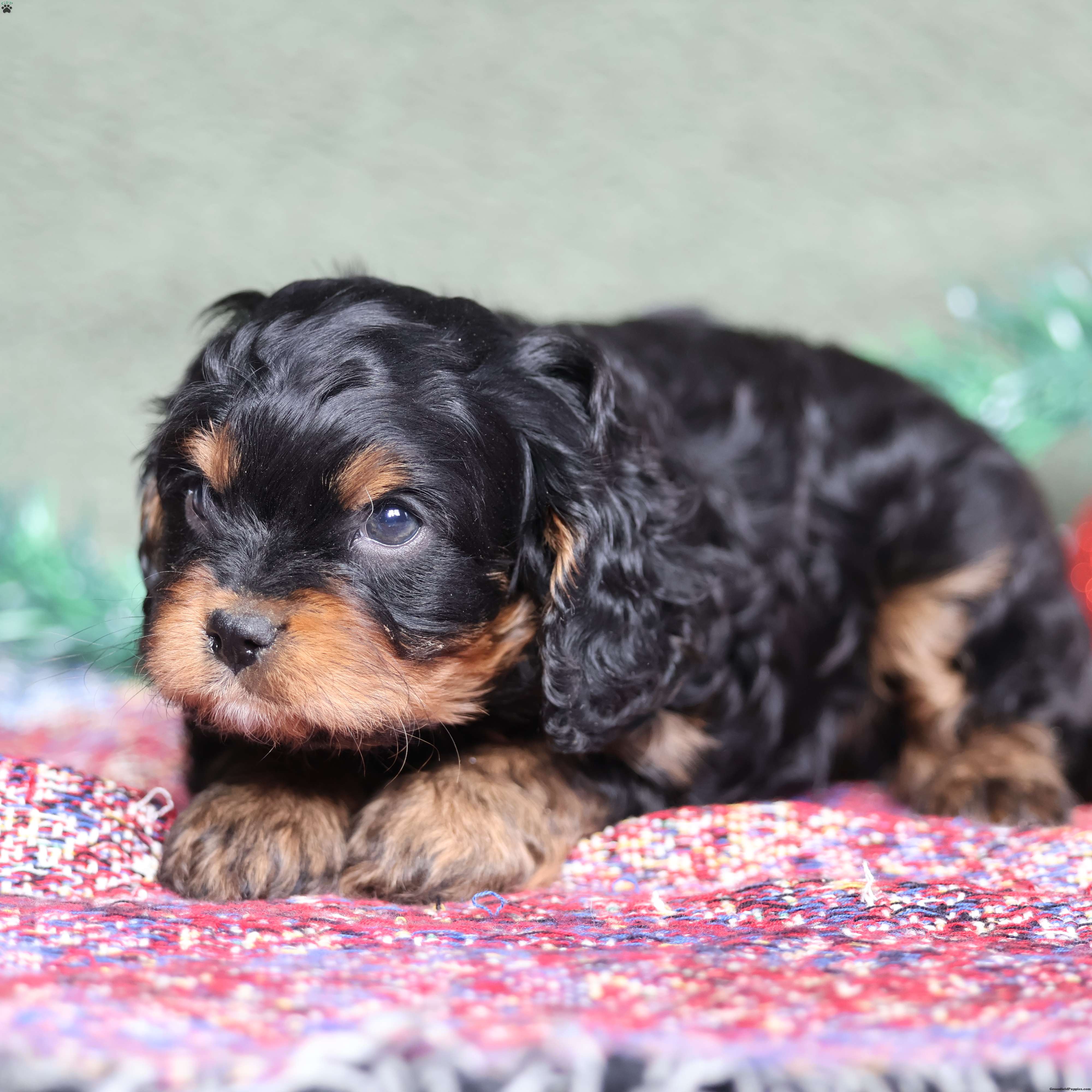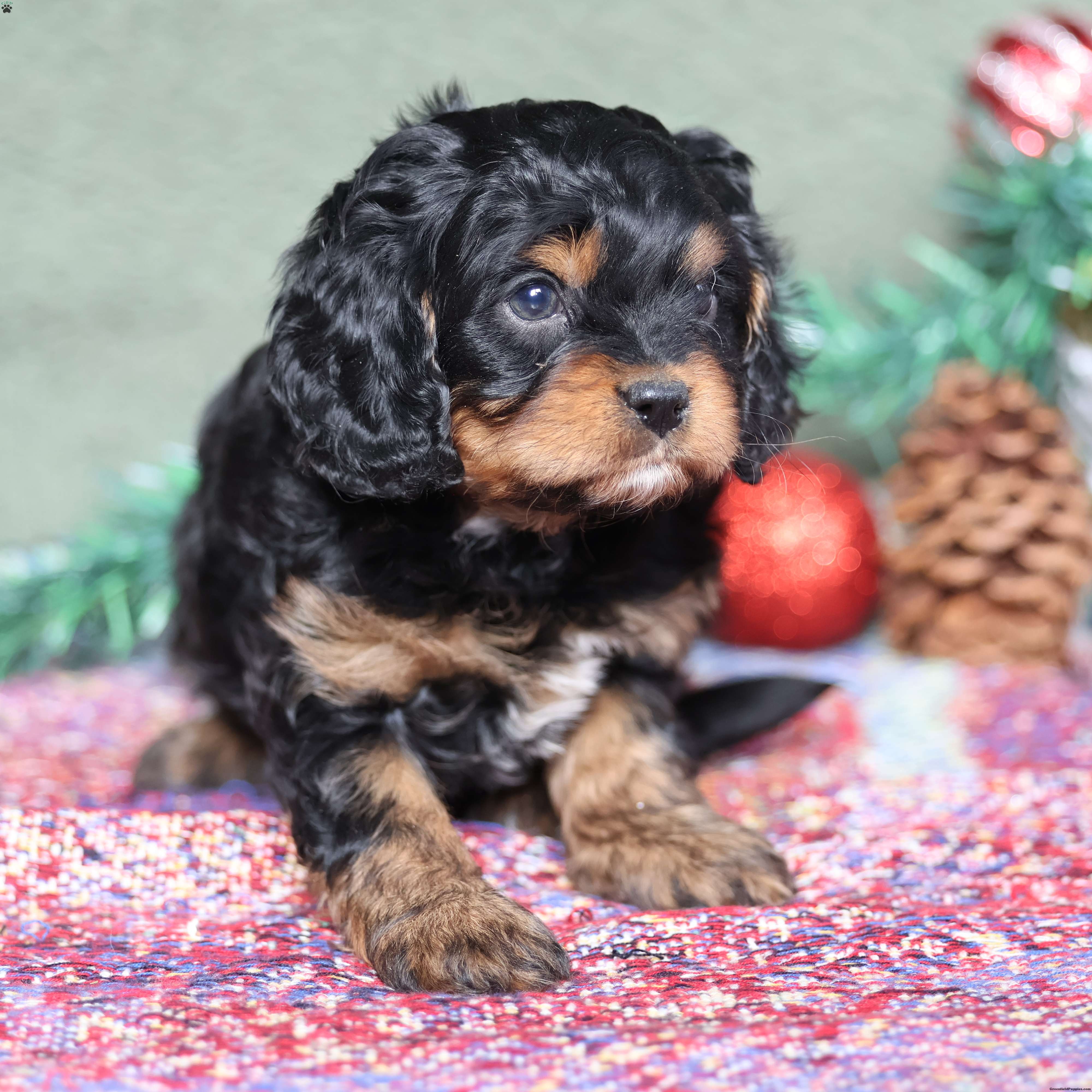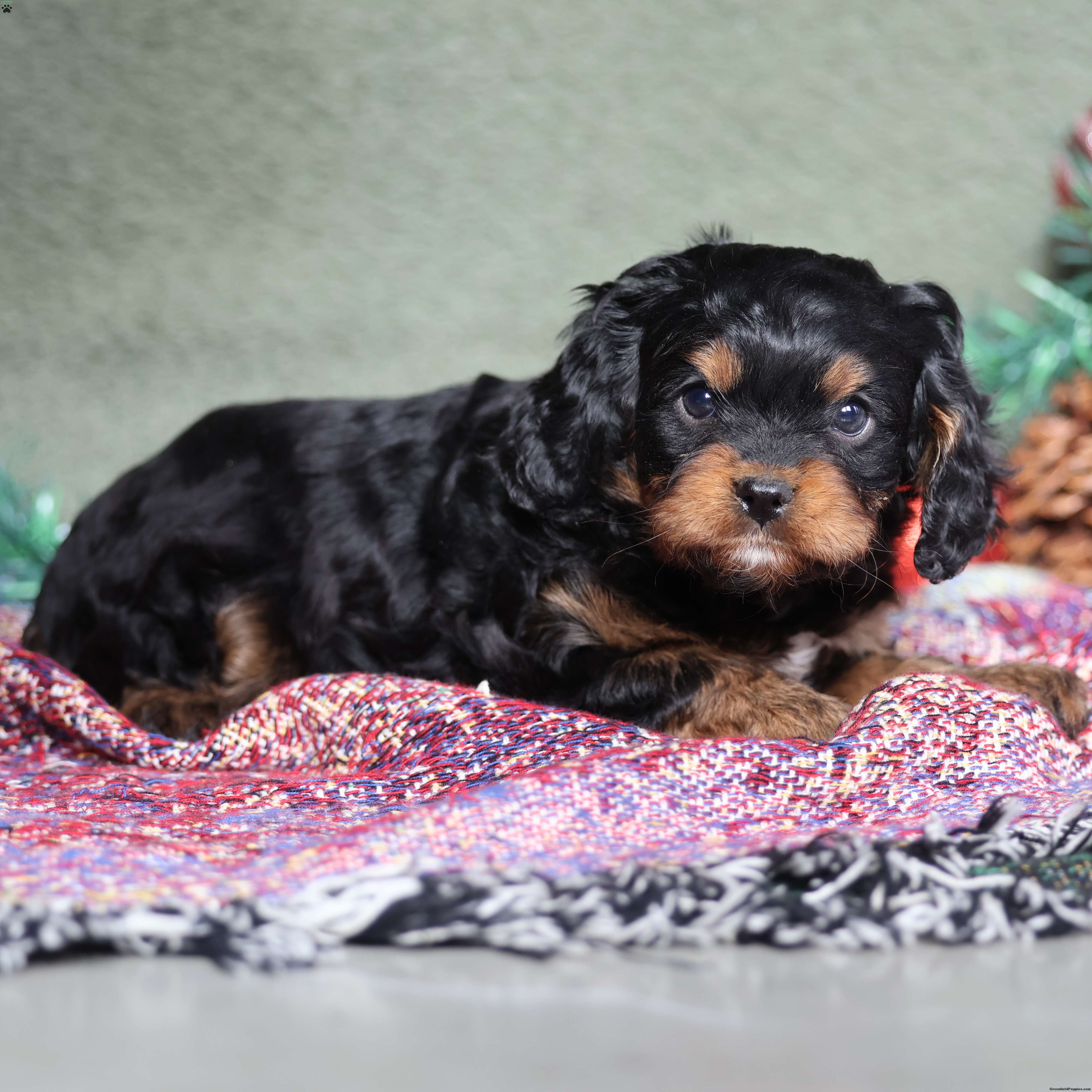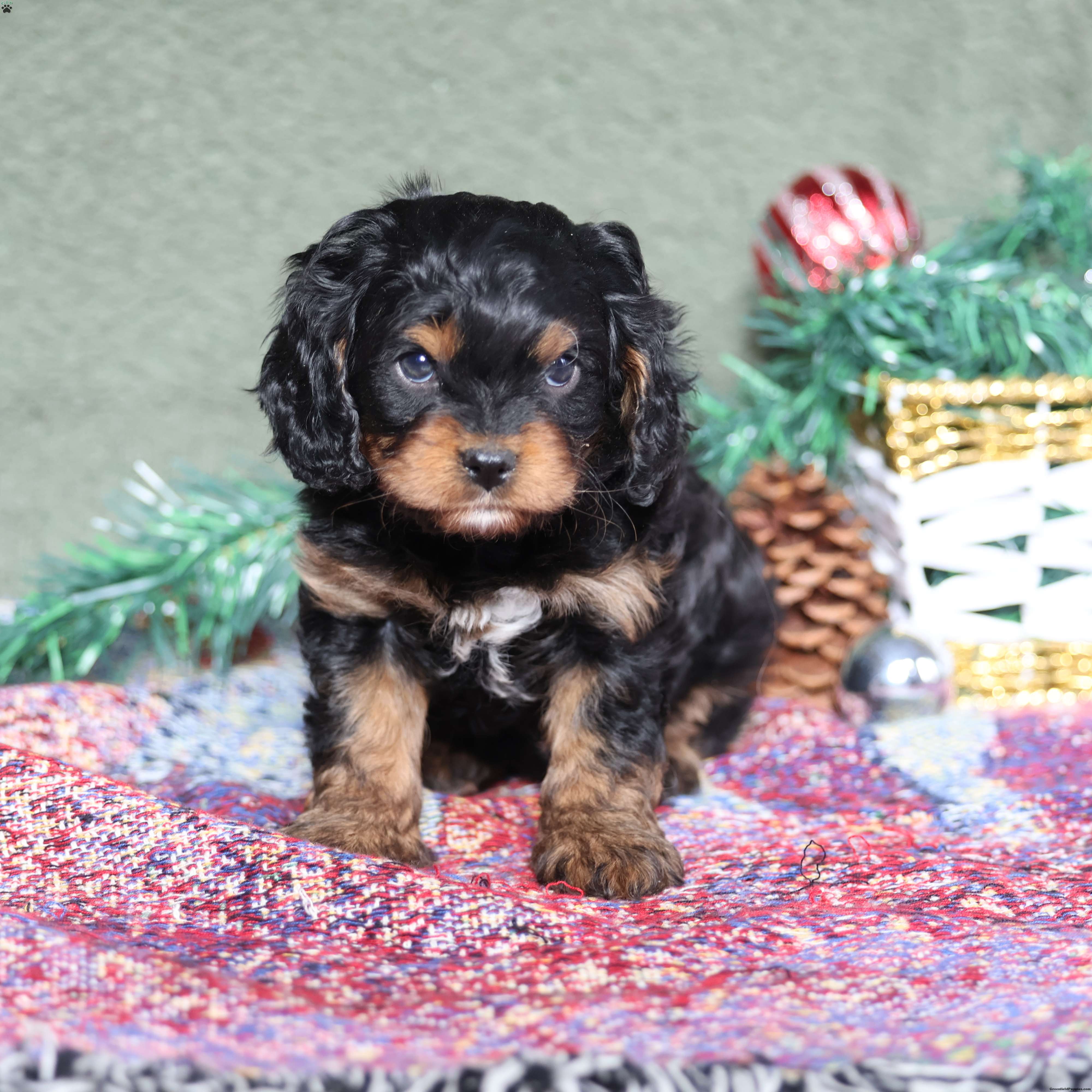 Sire: Handsome Chocolate Cavalier (14 lbs) Dam: Elegant Black Tri Poodle (12 lbs) Health Specs: All puppies are fully vetted, microchipped, up-to-date on vaccinations, and on a regular deworming schedule.