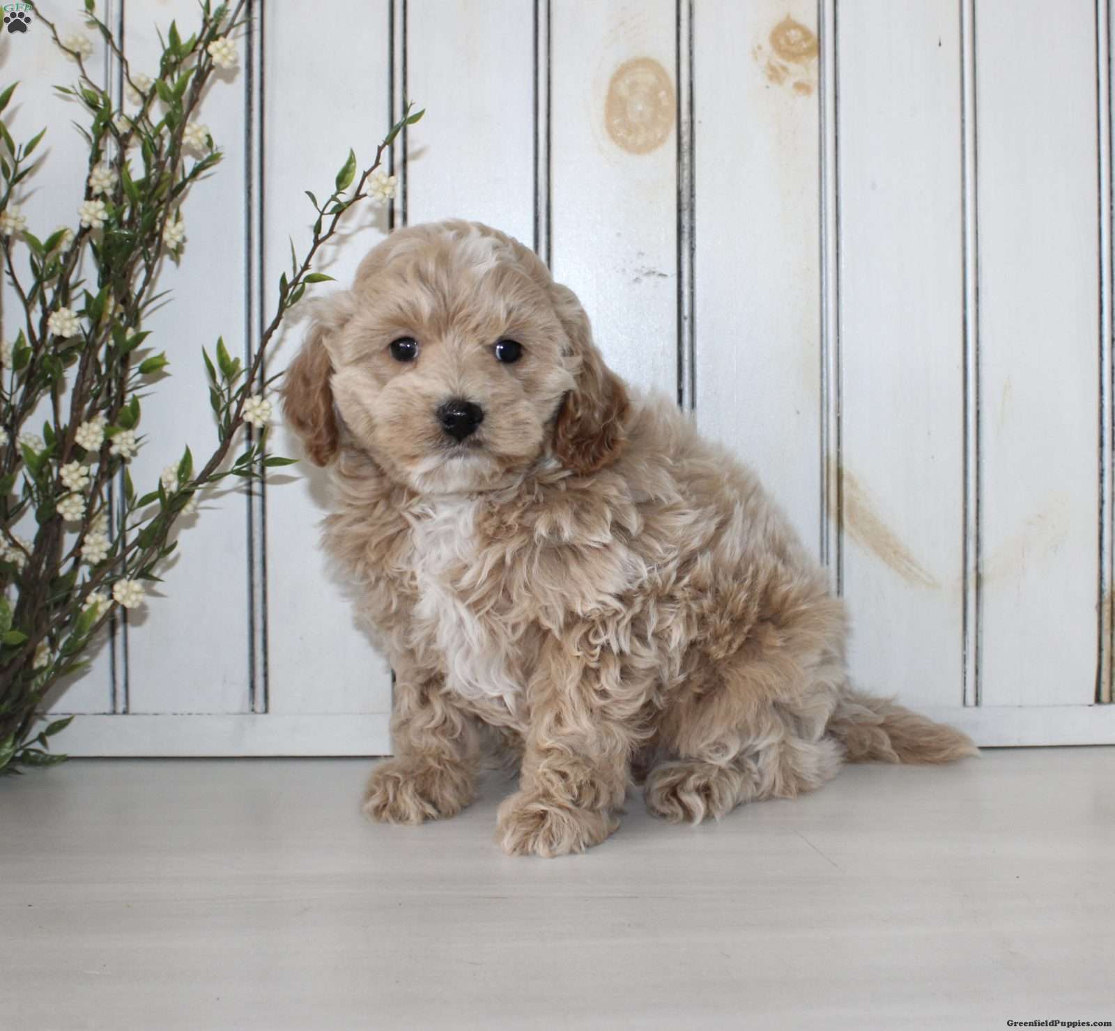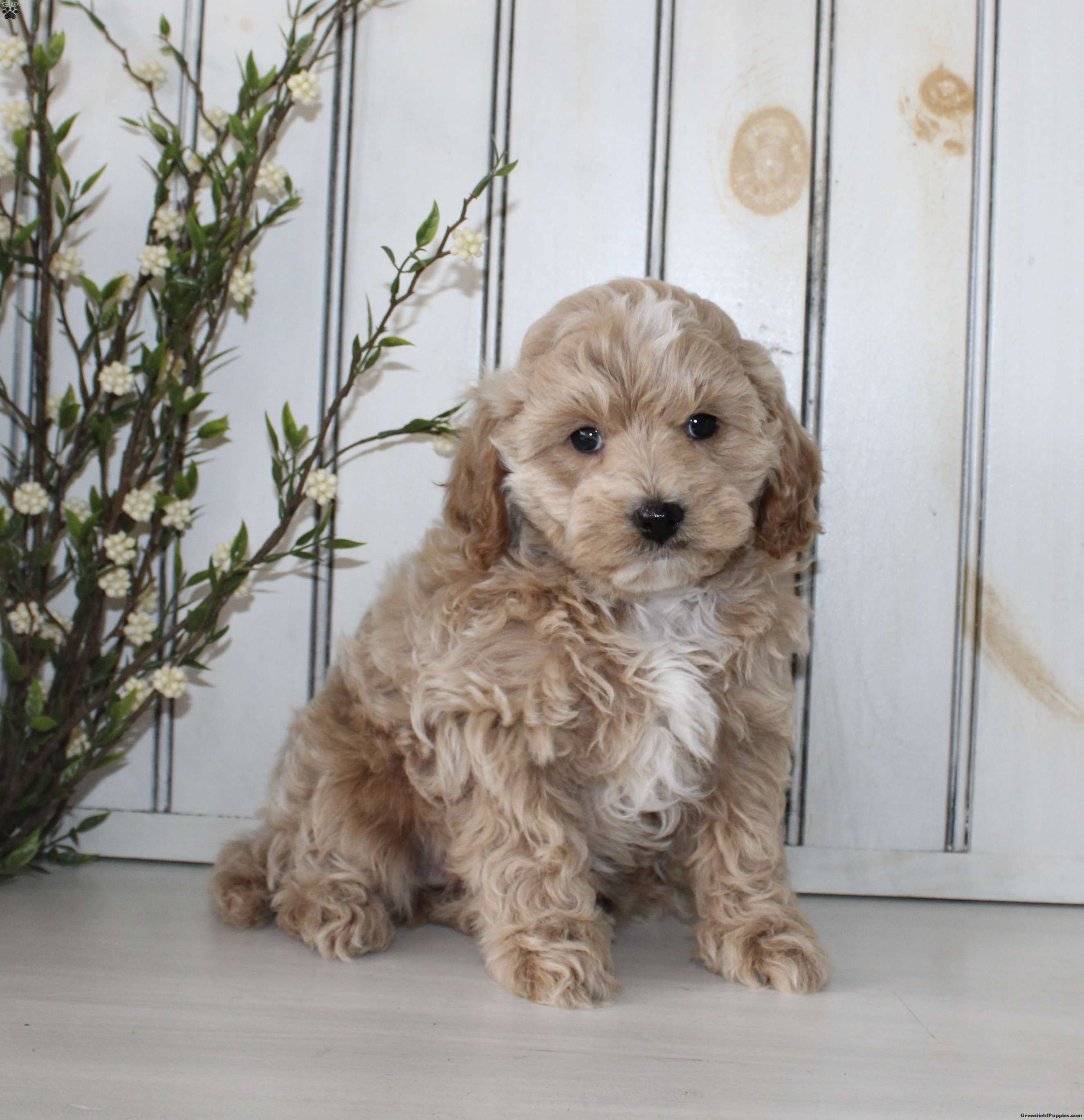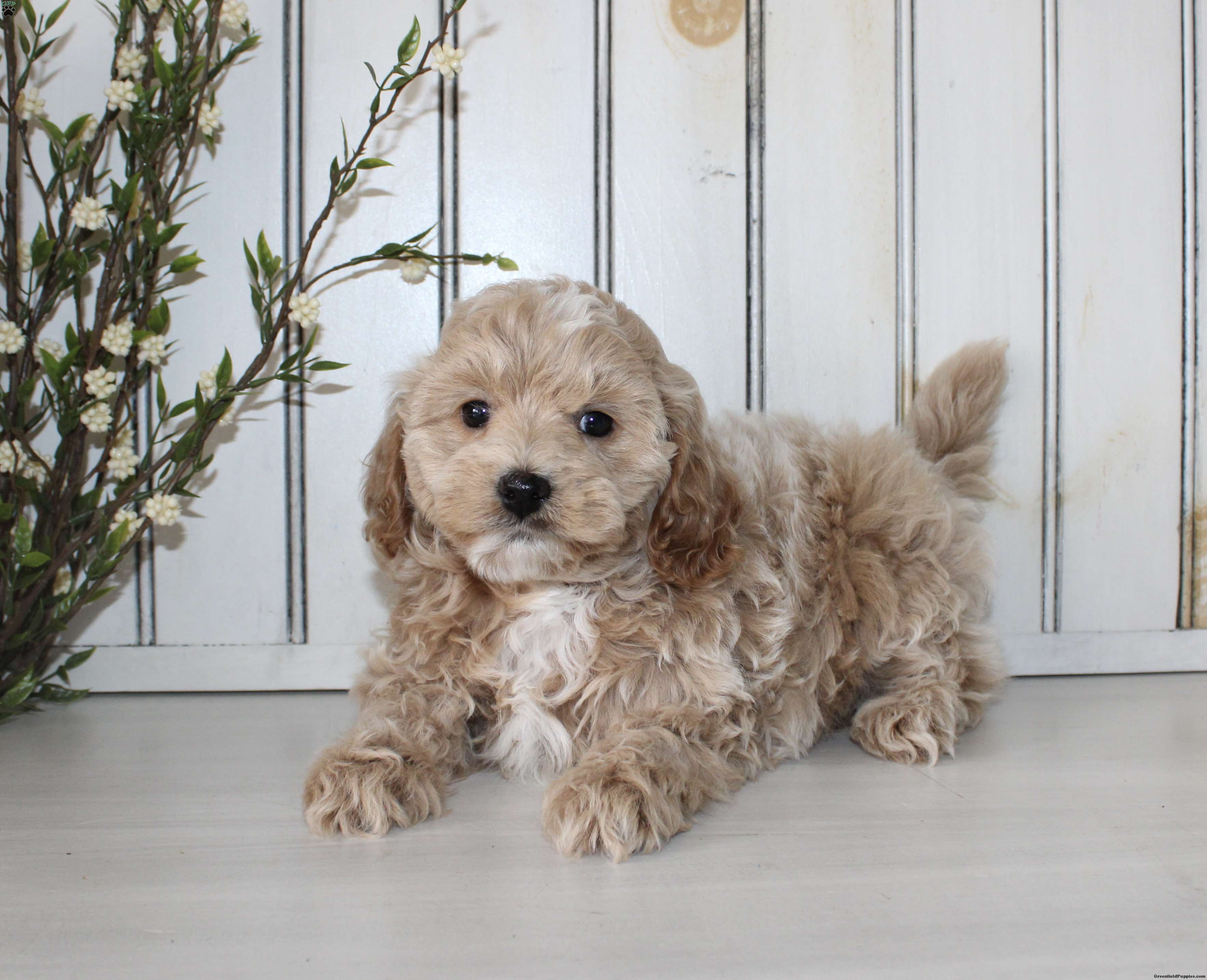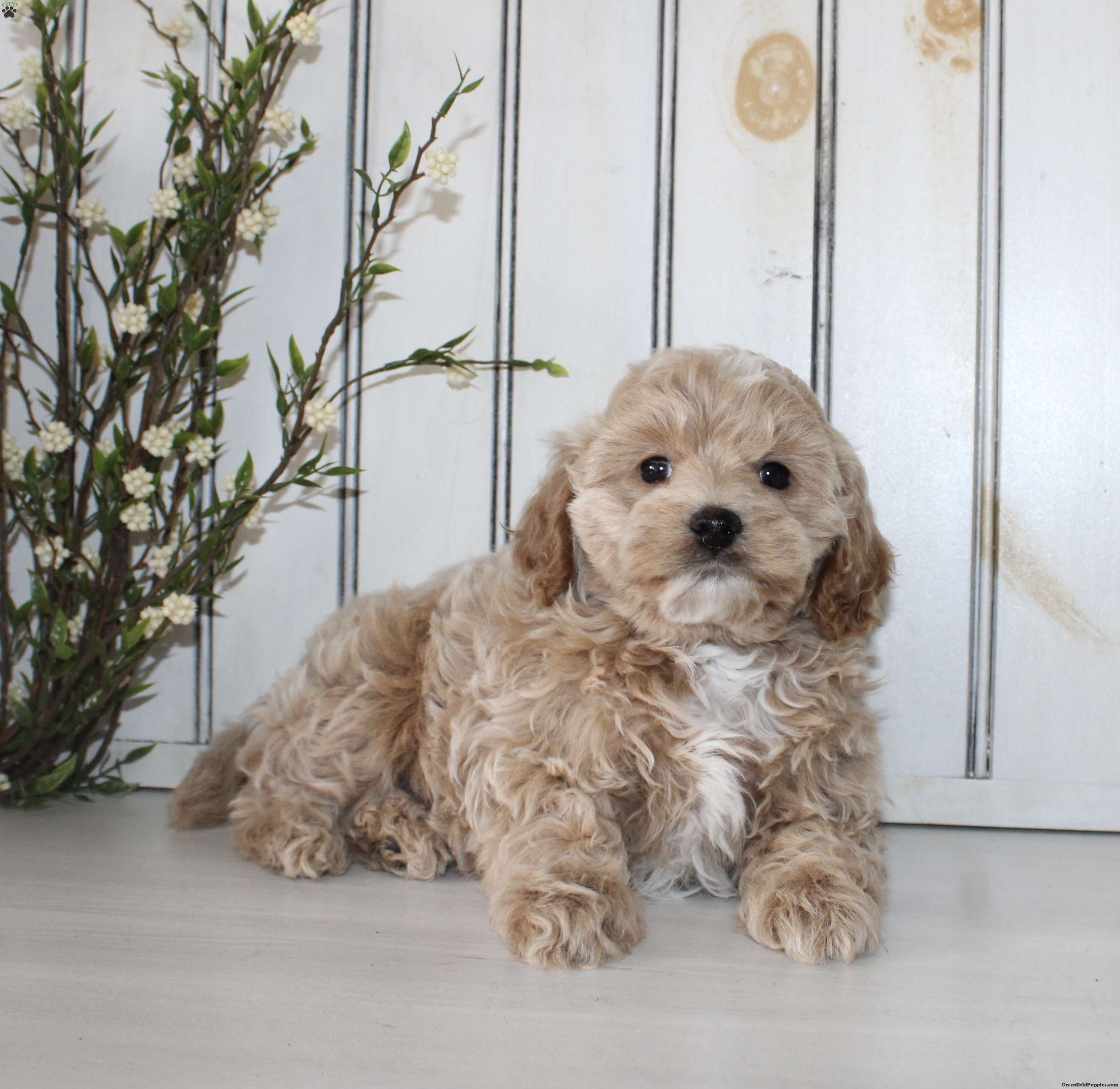 Say hello to this adorable Cavapoo puppy! The mother Lily is a Cavapoo, and the father is a Mini Poodle. Each puppy comes up to date on shots and dewormer, and is also vet checked. They also each come with a 30-day health guarantee! To learn more about our puppies, call us today!
