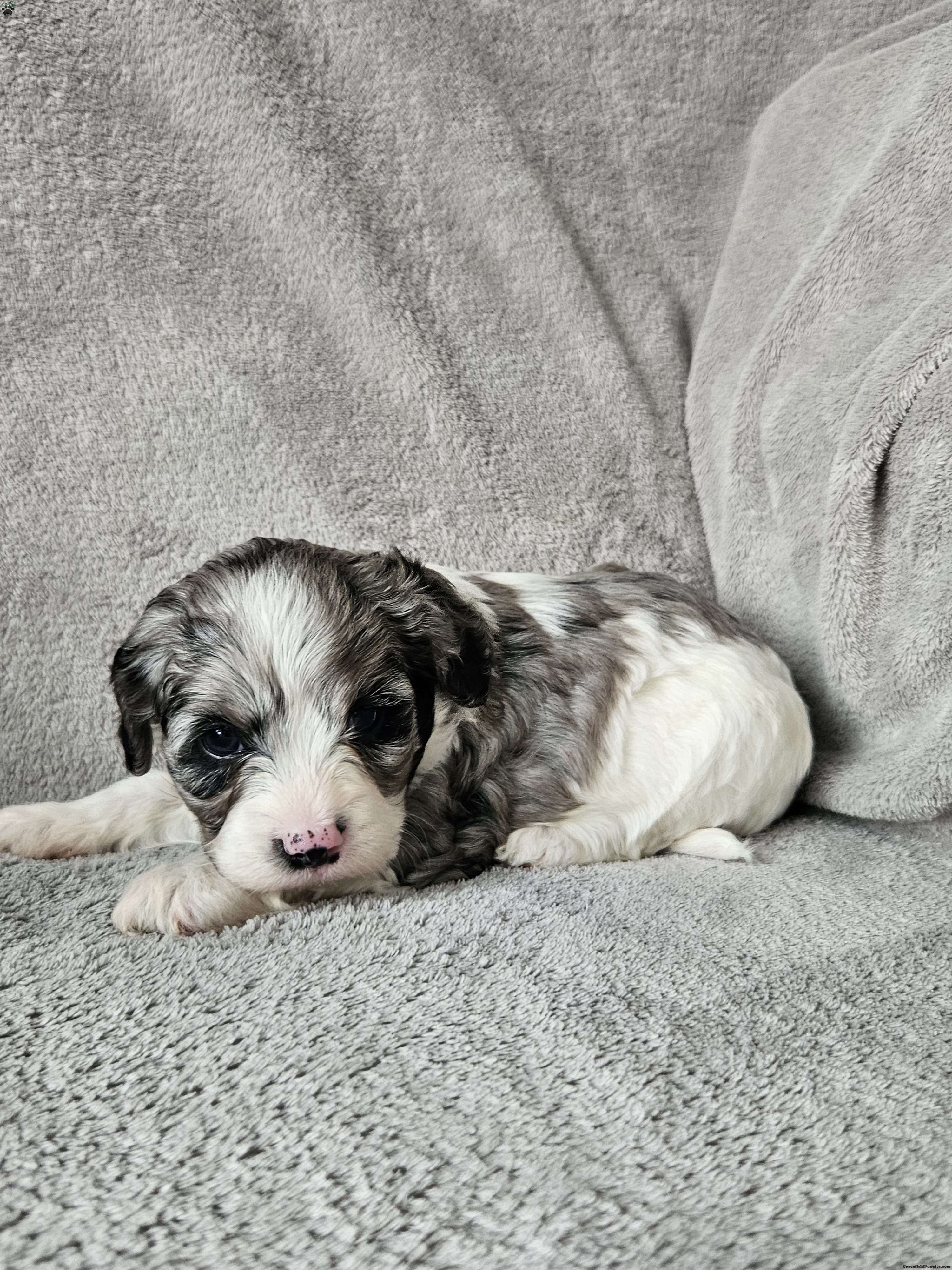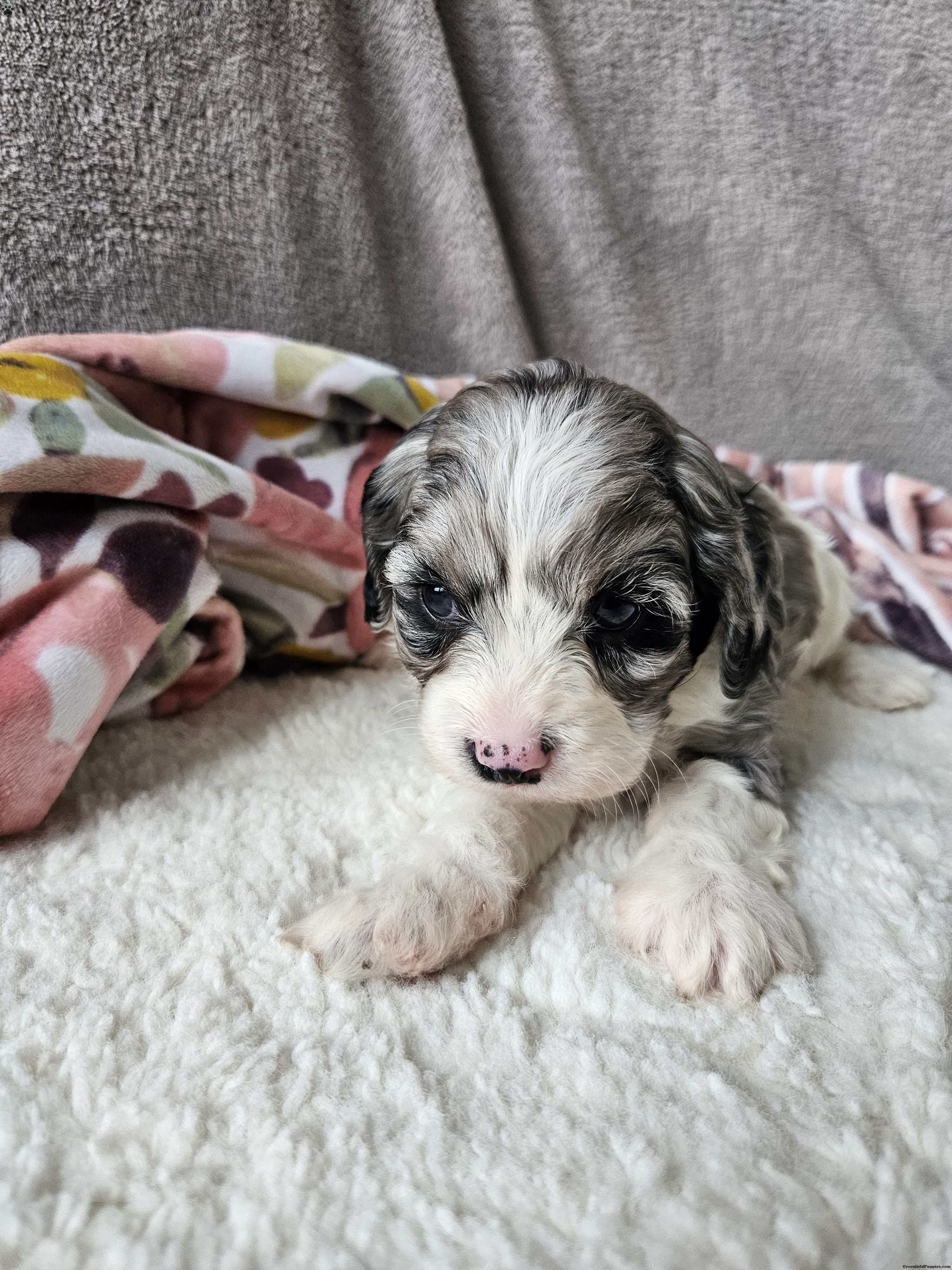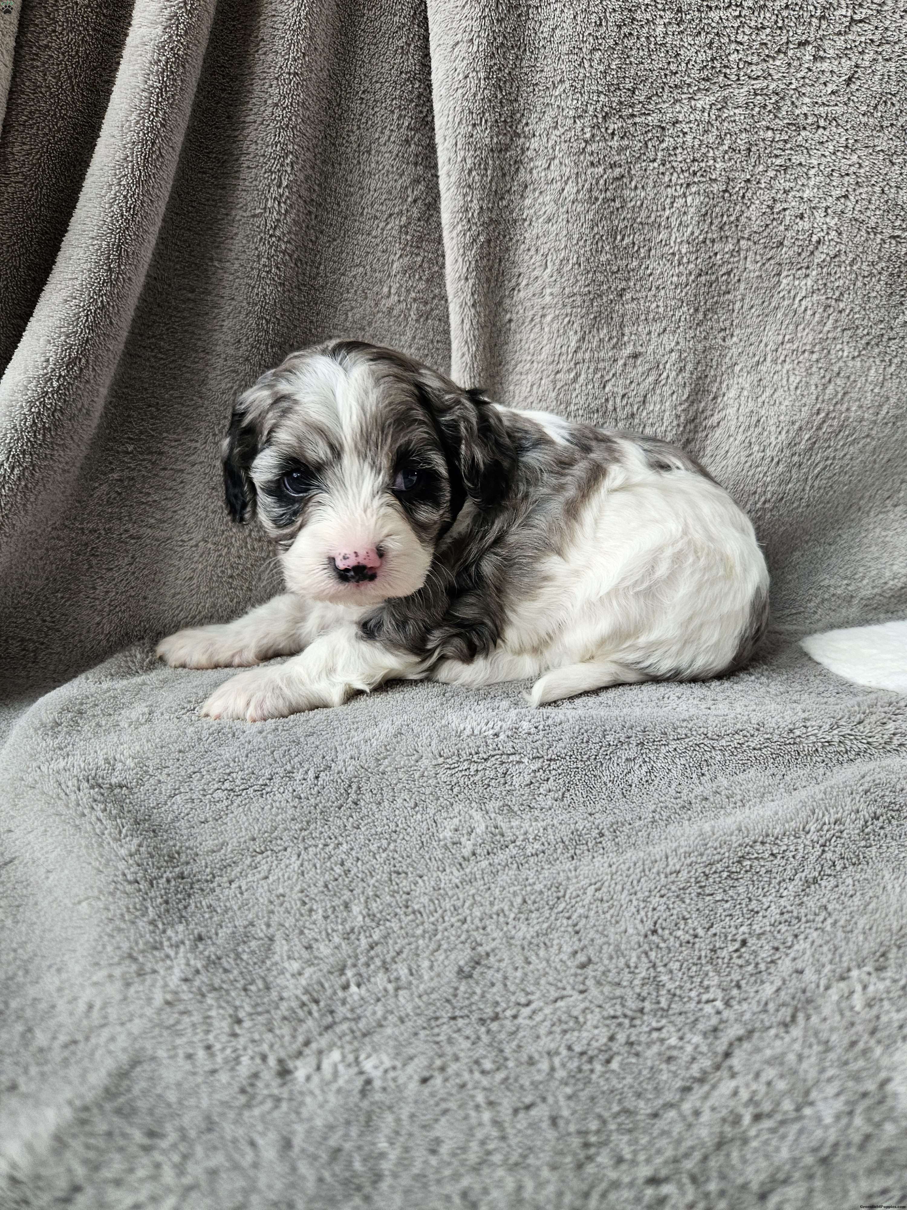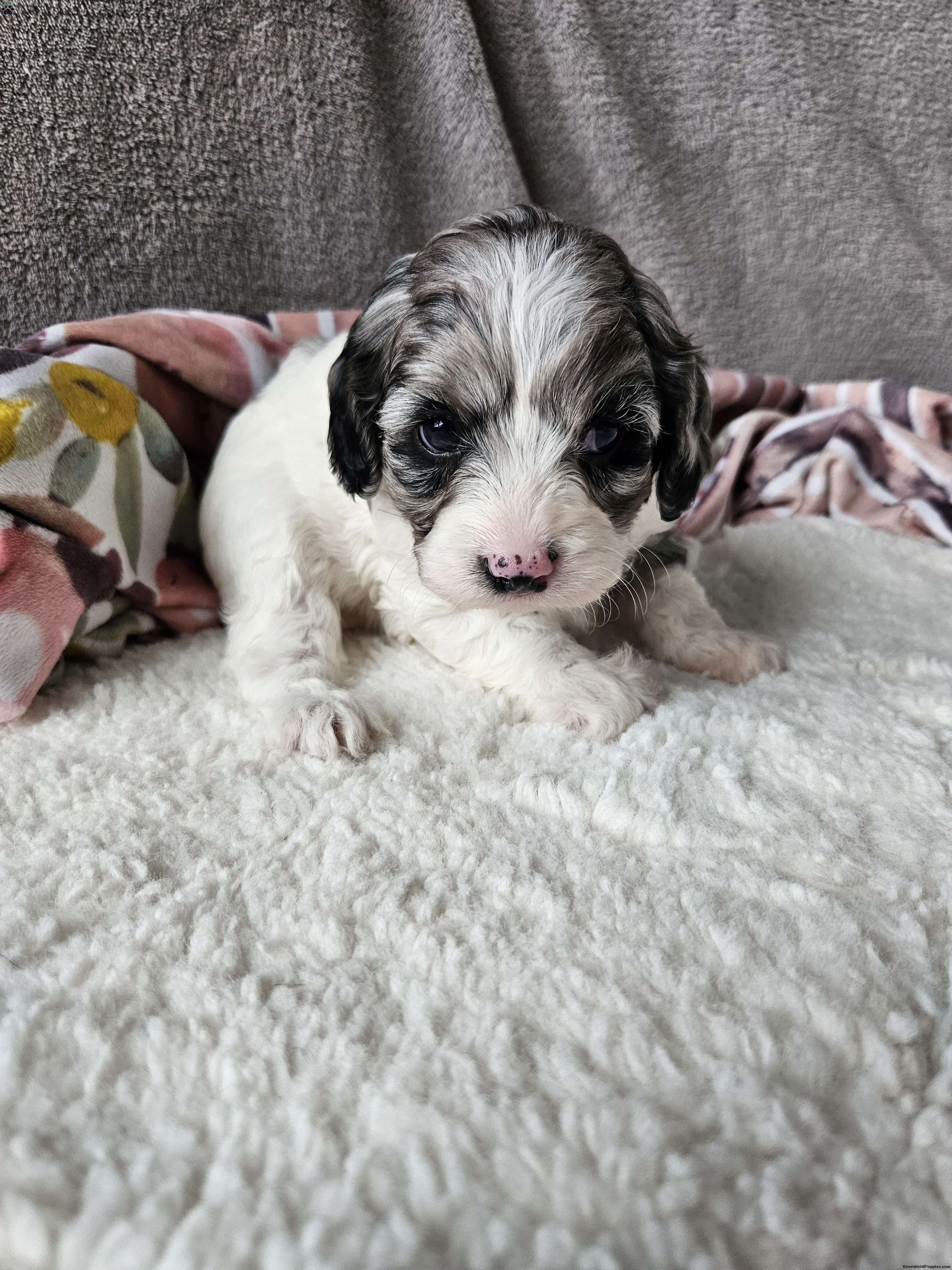 Russell is a quiet personality.  He loves has the sweetness of his father Alfie a cavalier and a bit of shyness from his mother Princess a mini poodle! Russell has little to no shedding. Russell  was born in our garage and we have spent alot of time enjoying him! He does great around children!