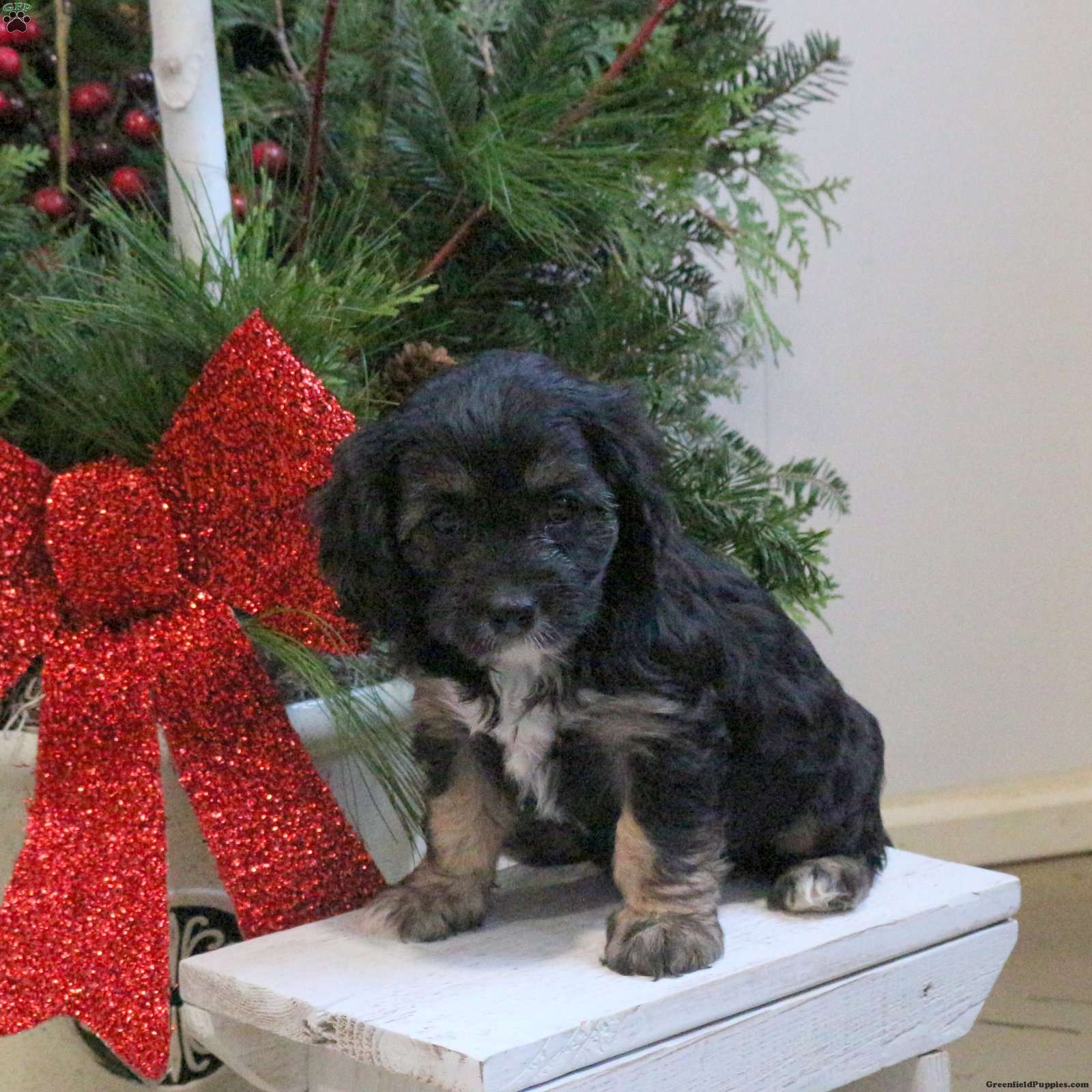 Here is Sparrow, a spirited and lovable Cavapoo puppy available to a forever family. This cutie comes home with a 30 day health guarantee provided by the breeder. Sparrow has also been seen by a vet and is up to date on shots and de-wormer. This bouncy pup is well socialized, family raised with children, and ready to be the sweetest sidekick!