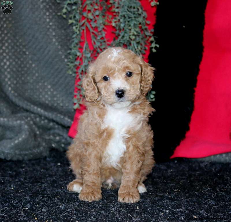 John is a precious F1B Cockapoo puppy who loves to play! This cutie-pie is well socialized, family raised with children, and ready to be the best addition to his forever family! Vet checked and up to date on shots and de-wormer, John comes home with a 30 day health guarantee as well as an extended genetic health guarantee, both provided by the breeder. This beautiful pup will be so happy to meet you!