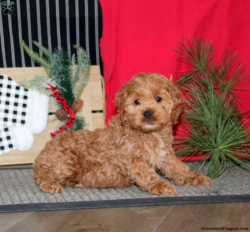 Rilynn is a socialized and sweet Cockapoo puppy who loves to play! This cutie is family raised with children and ready to be your devoted sidekick! Vet checked and up to date on shots and de-wormer, Rilynn comes home with a 30 day health guarantee plus an extended genetic health guarantee, both provided by the breeders. This happy puppy is waiting to meet you!