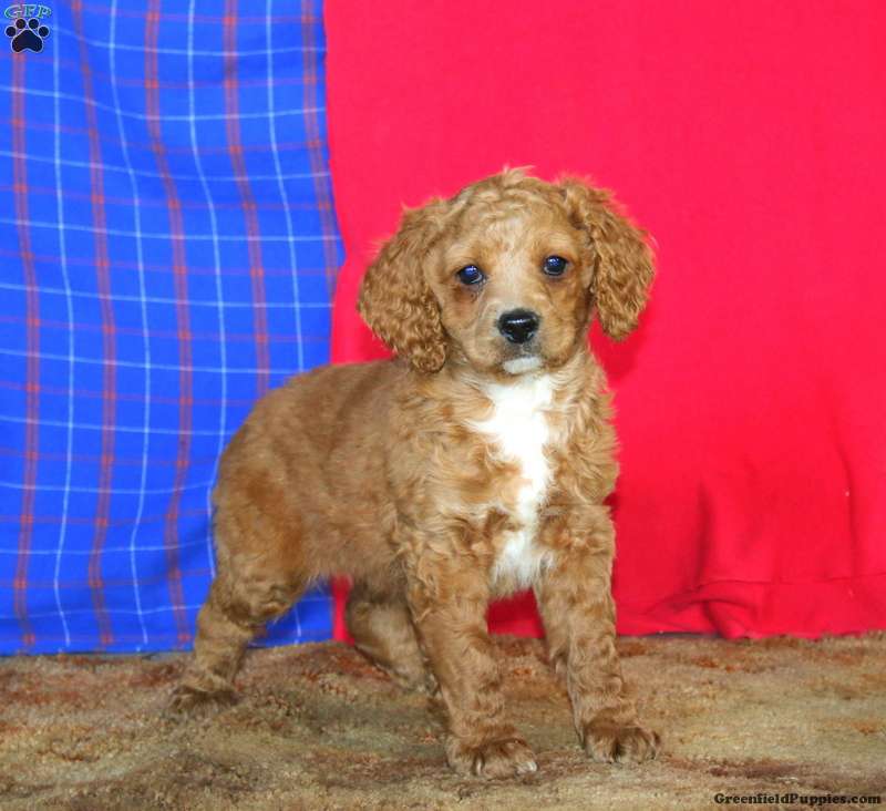 Ruby is a happy little Cockapoo puppy who is cute as can be! This playful girl is socialized and ready to meet you! Ruby has been seen by a vet and is up to date on shots and de-wormer. She also comes home with a 30 day health guarantee and an extended genetic health guarantee, both provided by the breeders.