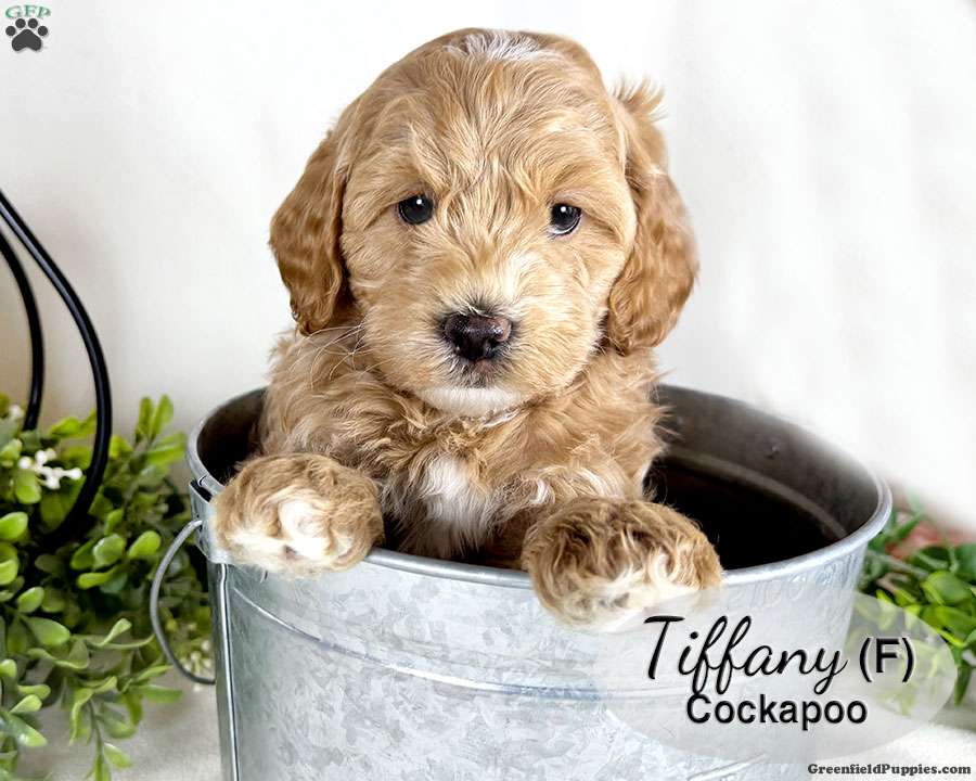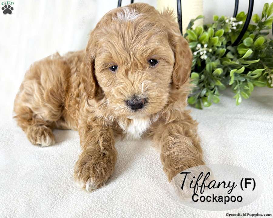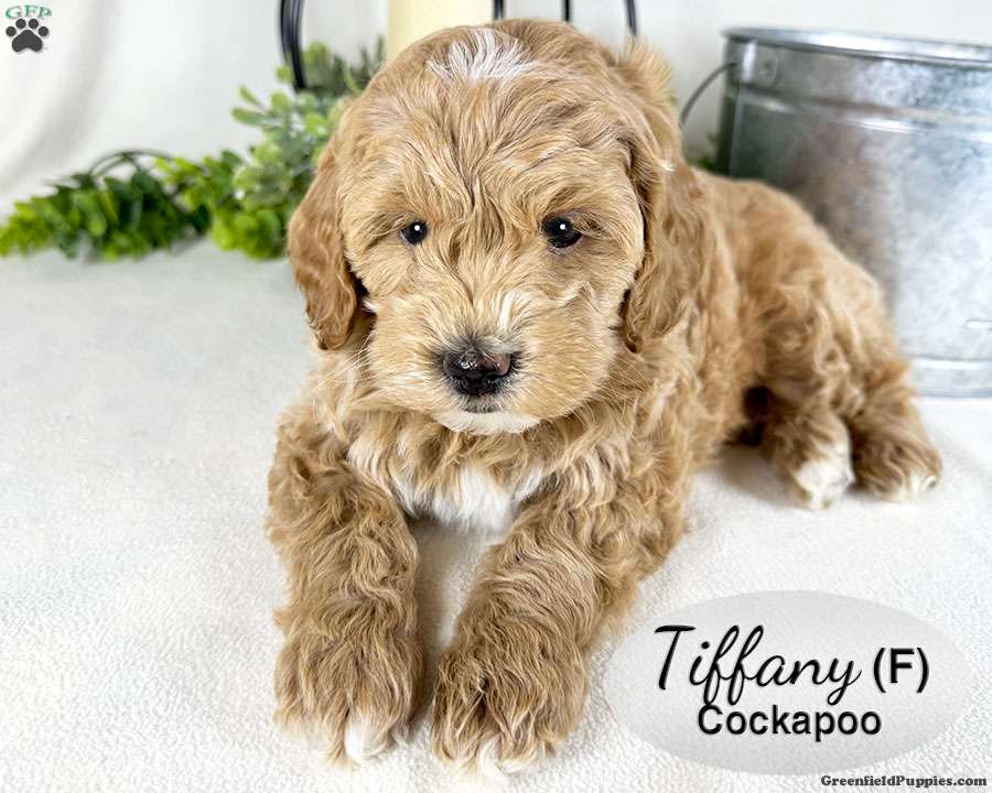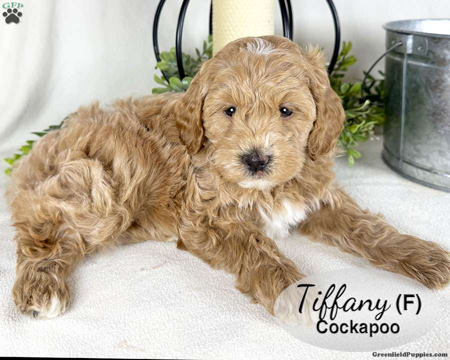 Tiffany is a sweet red female Cockapoo puppy, with several white spots on her head, chin, chest and paws. She is well socialized, playing with our children daily. This sweet girl laid back and chill, enjoying lots of hugs and cuddles.