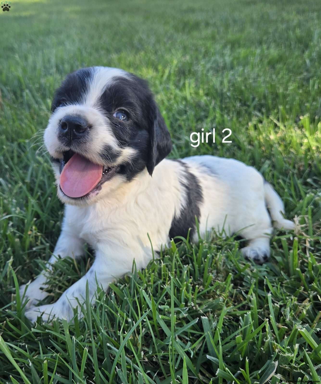 This adorable little girl is a Sprocker Spaniel. The mother is a purebred AKC Springer Spaniel and the father is purebred AKC Cocker Spaniel. We purposely and have pursued this breed and have been delighted with the results. The Sprockers are exceptionally good hunting dogs. Very easy to train and love people and children. Very easy going.