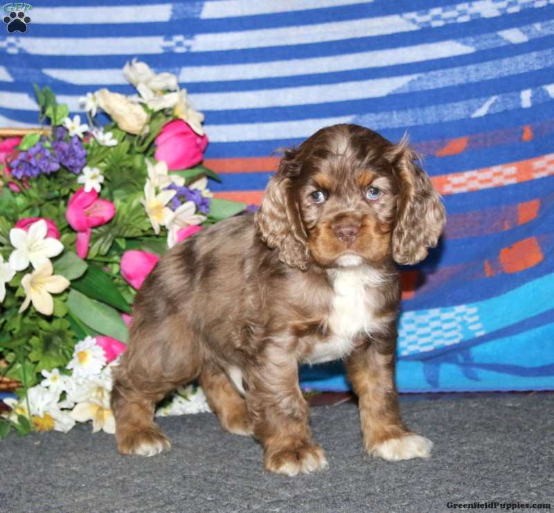 Here is Arnie, a beautiful Cocker Spaniel puppy who is socialized and ready to meet his forever family! This friendly boy can be registered with the ACA and comes home with a 30 day health guarantee and an extended genetic health guarantee, both provided by the breeders. Arnie has been seen by a vet and is up to date on shots and de-wormer. This cutie will be a lovable sidekick!
