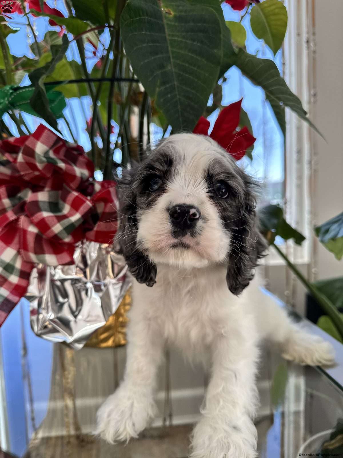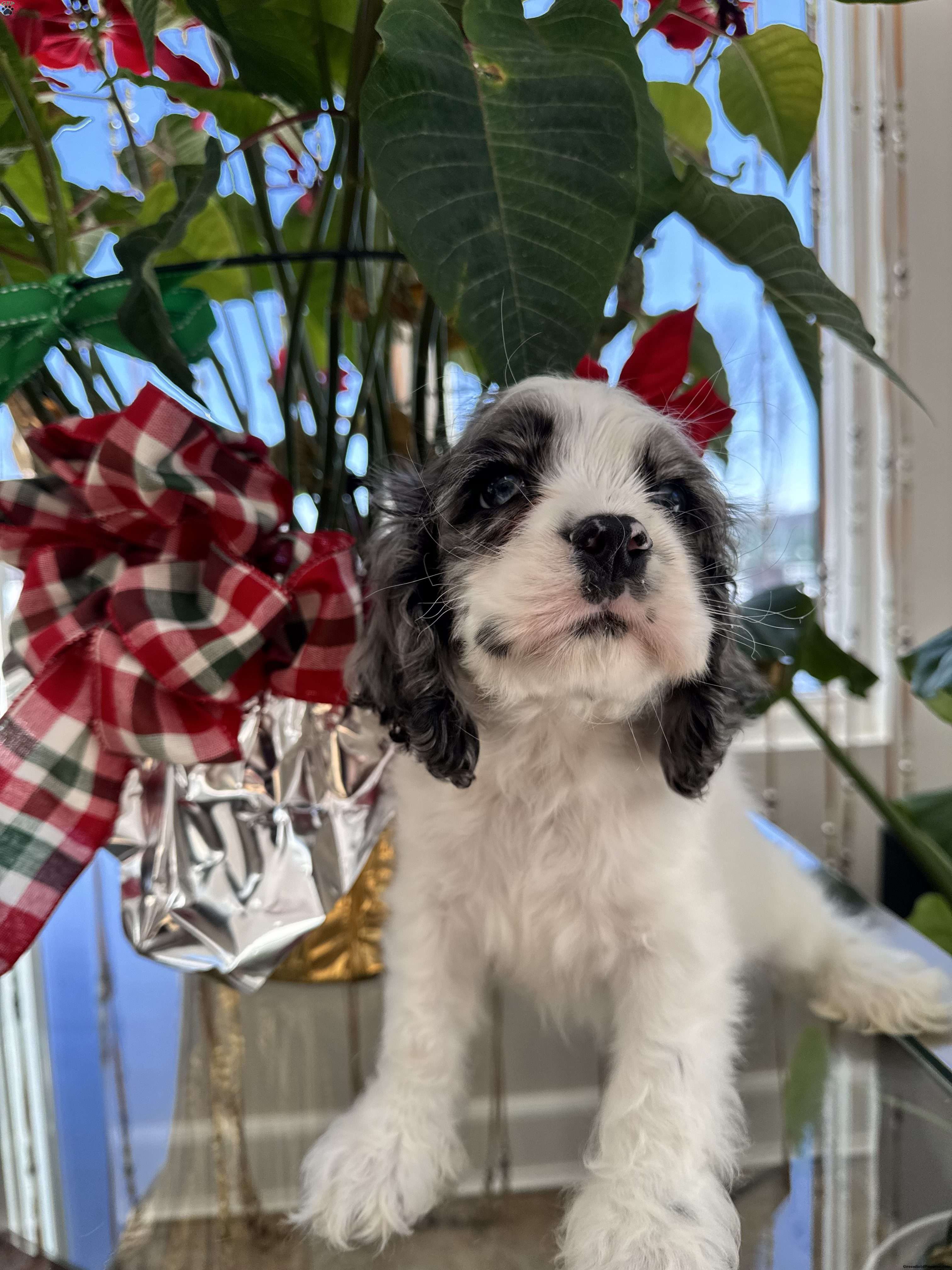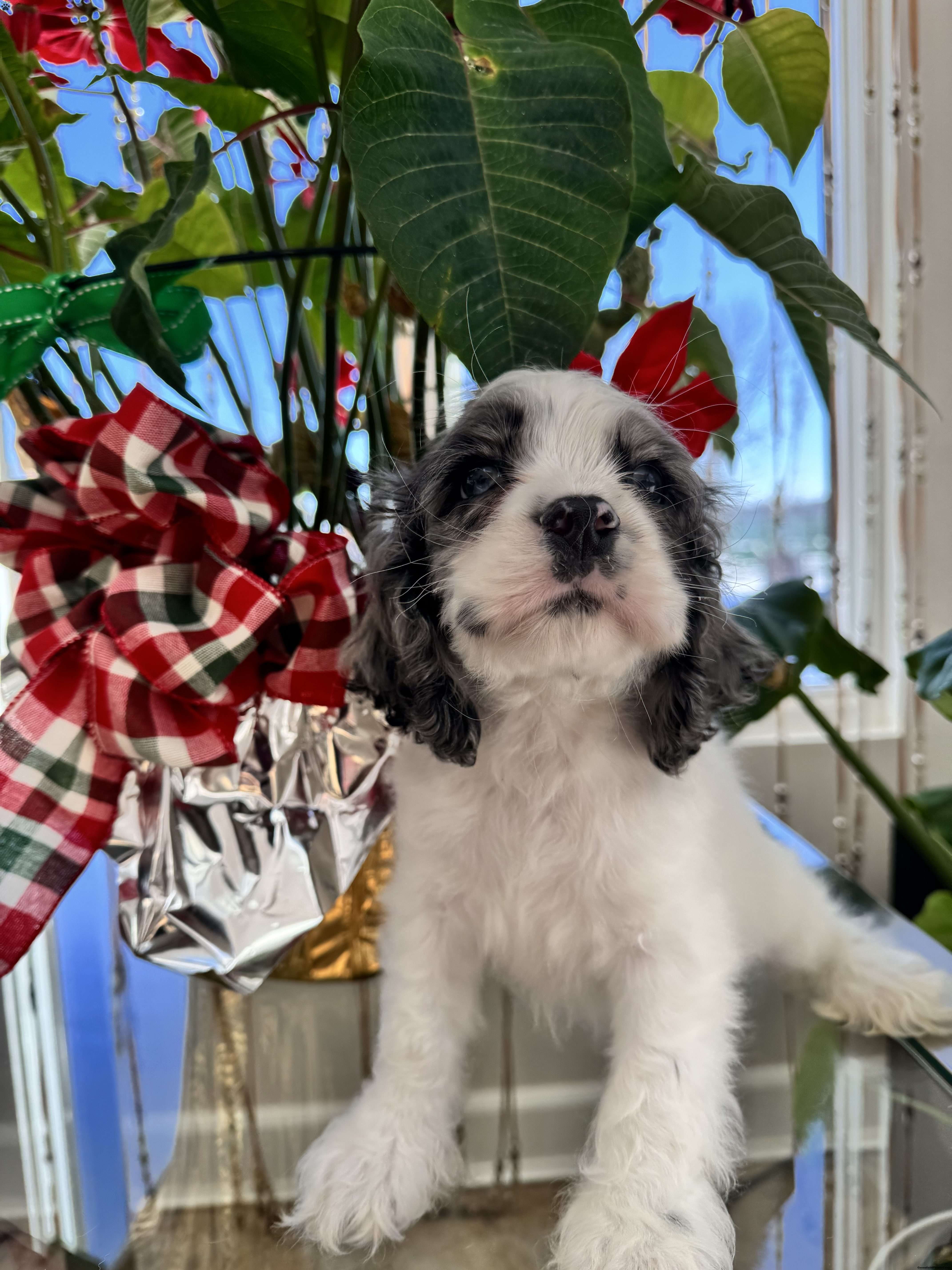 This cocker spaniel puppy is a stunning combination of blue, silver, and grey hues. His coat features a beautiful blend of soft, silvery fur that shimmers in the light, accented by darker blue and grey patches that create a striking contrast. With large, soulful eyes and floppy ears that frame his adorable face, he exudes charm and playfulness. His playful spirit is matched by a gentle demeanor, making him an affectionate companion. Always eager for attention and ready to explore, this little pup is sure to steal hearts wherever he goes.