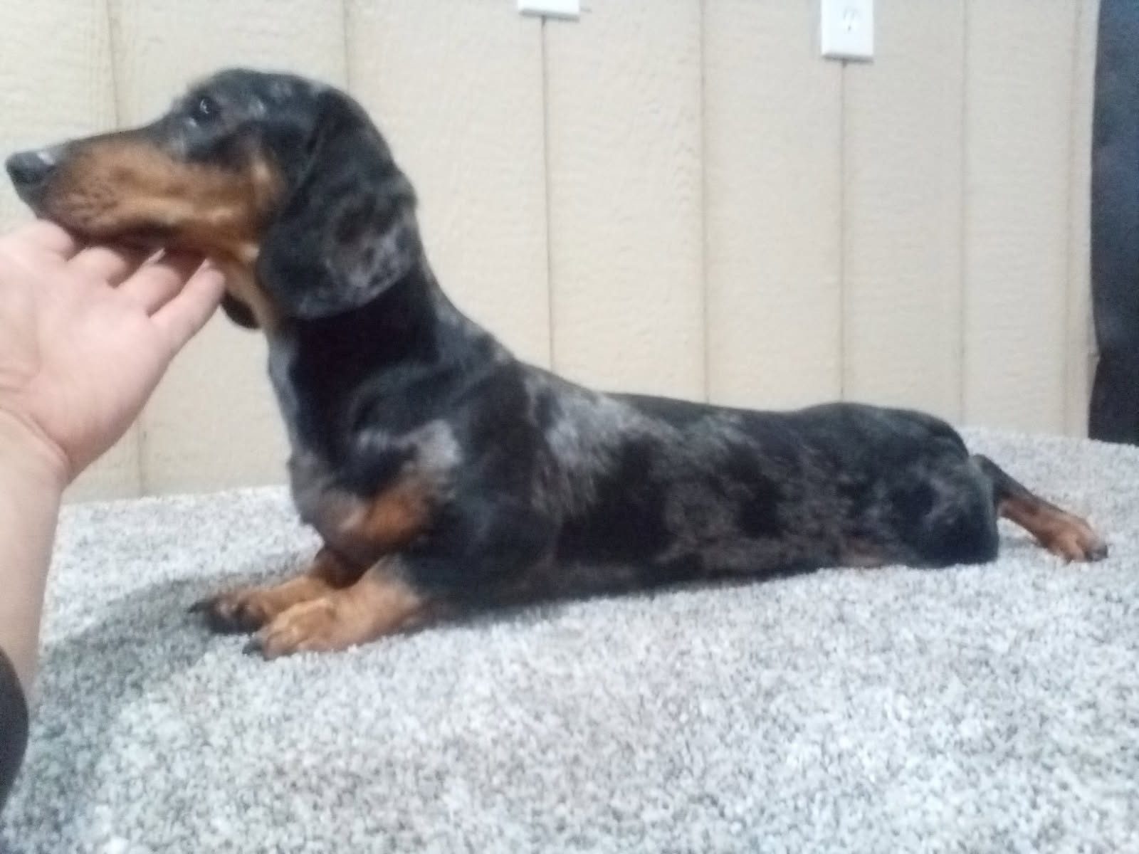 Meet Alex, our irresistibly adorable AKC Miniature Dachshund! With his shiny coat, floppy ears, and those tender, expressive eyes, he’s the perfect mix of sweetness, personality, and playful energy. Whether he’s trotting at your feet, chasing his favorite toy, or curling into your lap for a cozy nap, Alex fills every moment with joy. He’s a true little shadow—loyal, loving, and always eager to be right by your side. Mini Dachshunds are known for their big hearts, bold spirit, and lifelong devotion, and Alex is no exception!
